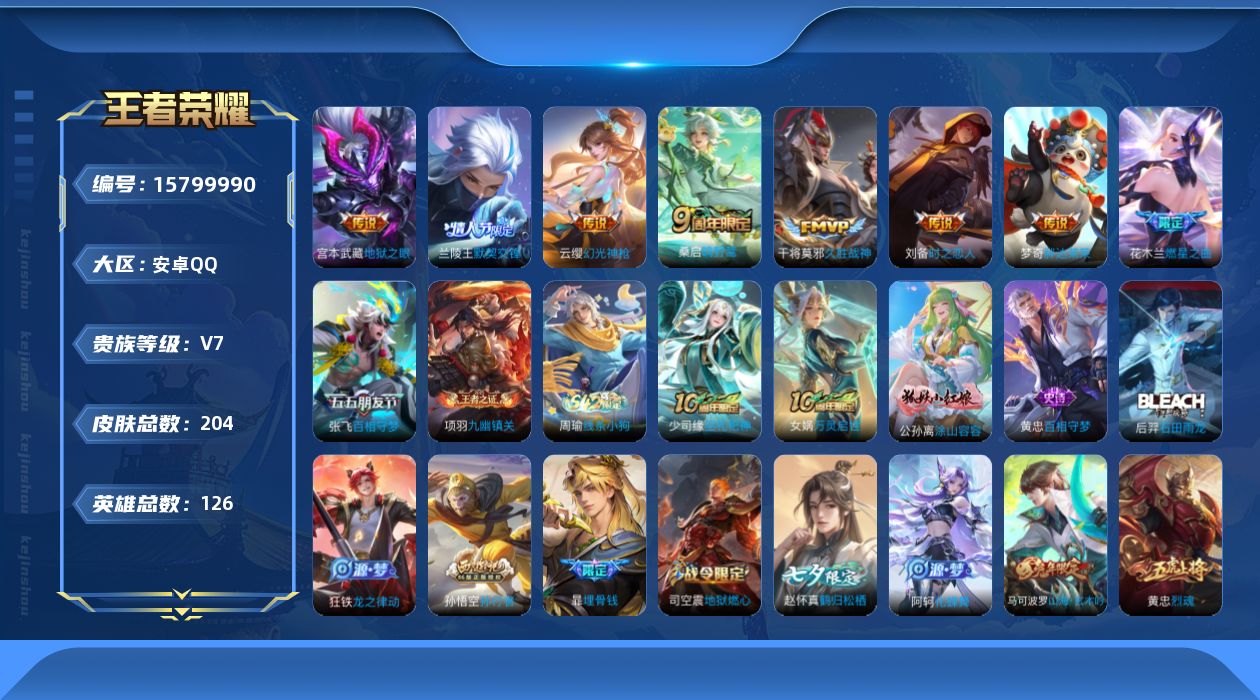 [15799990]V7 10传说 126英雄 204皮肤 可修改实名