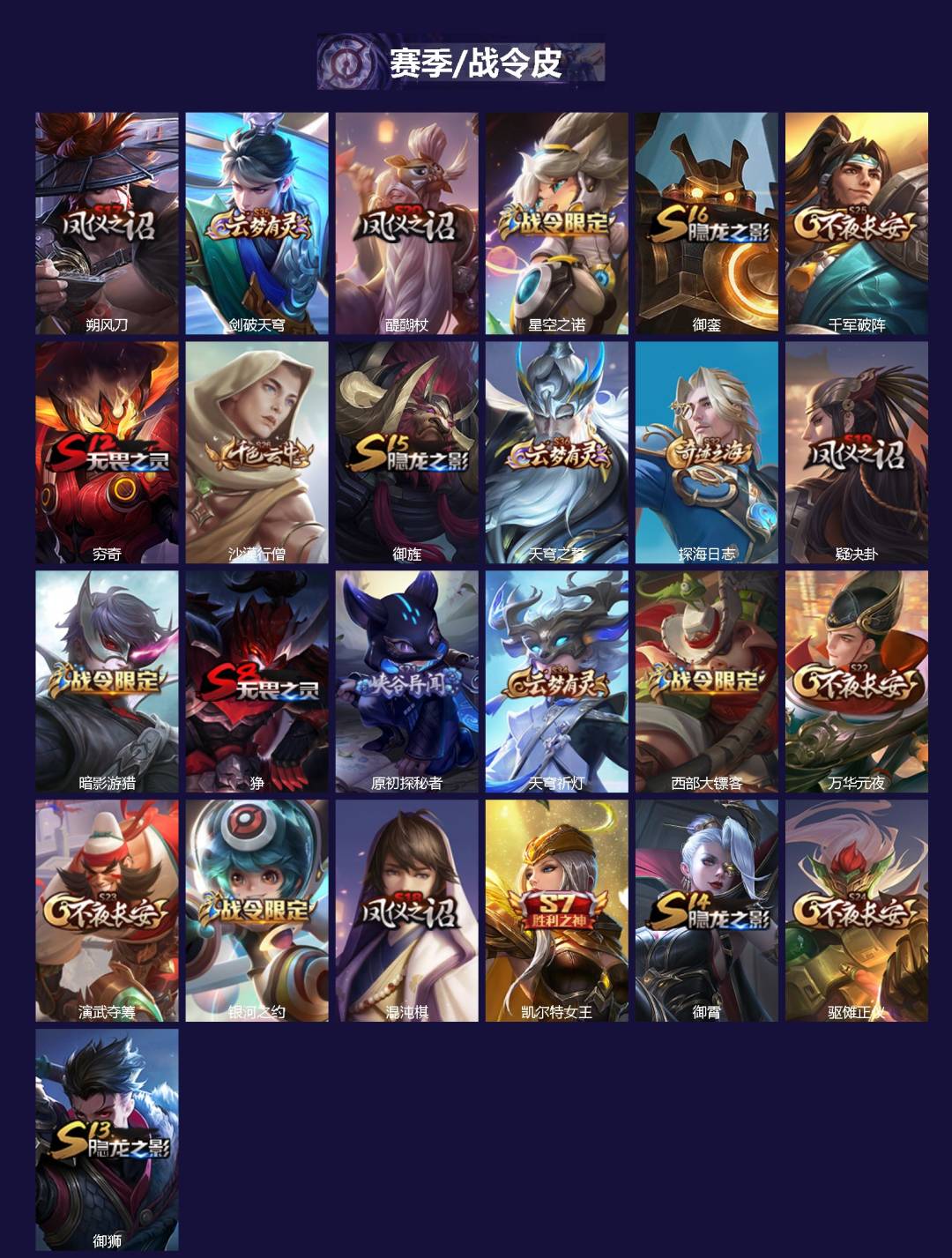 【赛季/战令皮】探海日志(s32),剑破天穹(s35),天穹祈灯(s34),天穹之誓(s36),凯尔特女王(s7