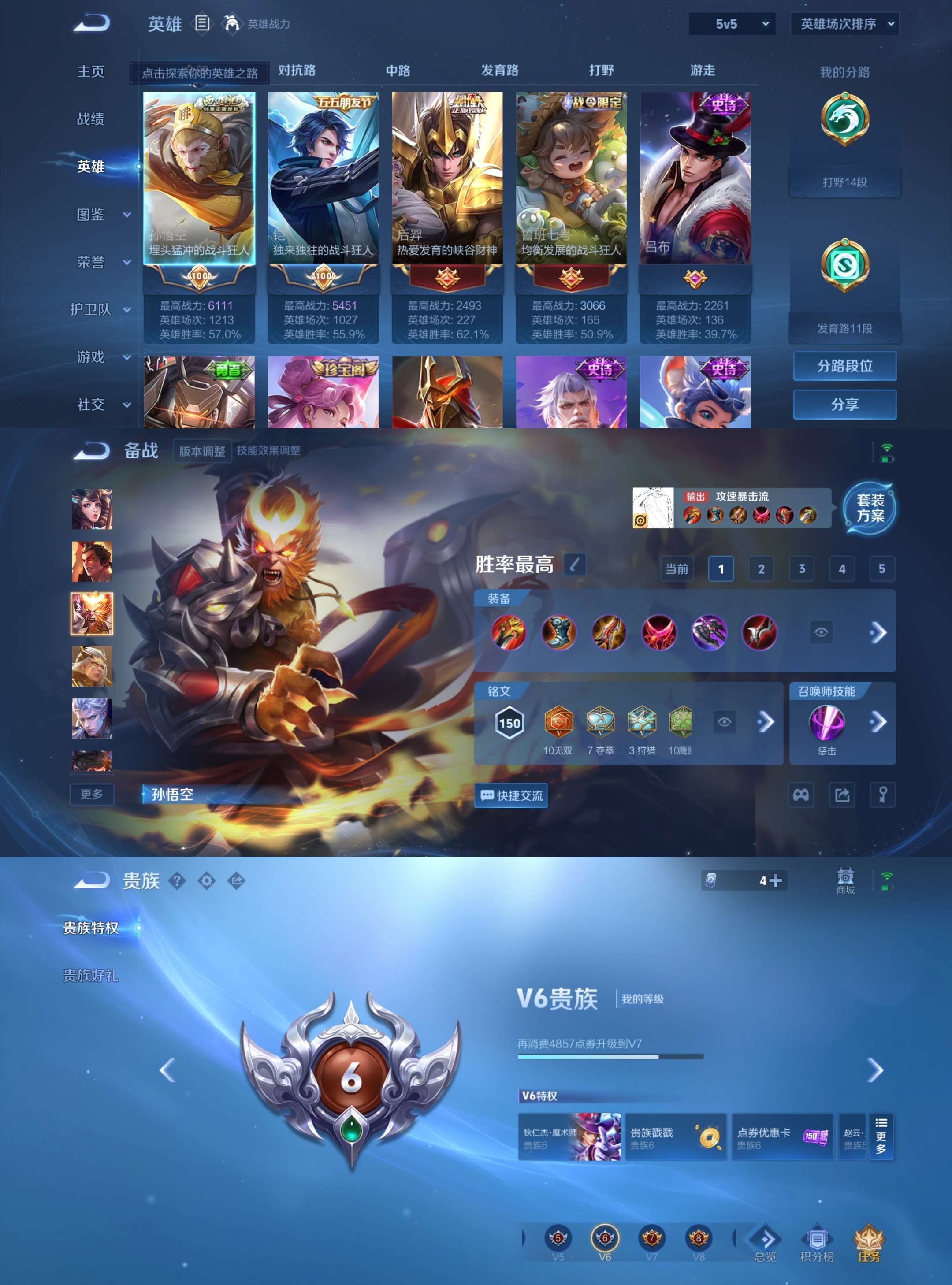 JJ3734:安卓Q可二次【V6 1典藏3传说2星传说-全息碎影 时之思念 未来机甲 黄金射手座 神树通天 鸣野蒿 孙行者-】荣耀王者-120英雄-186皮肤-37史诗