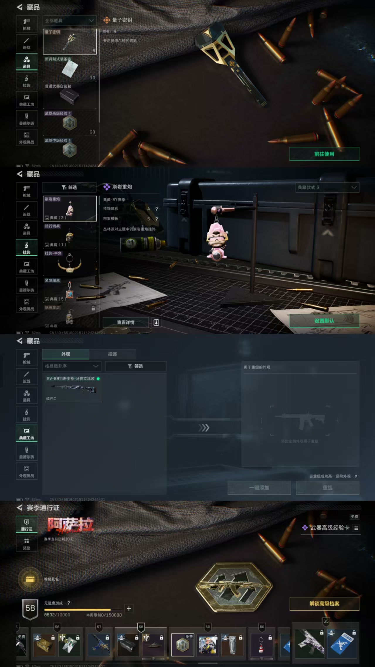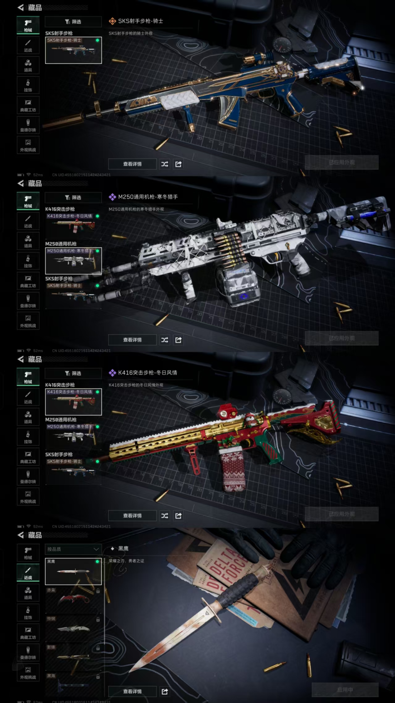 XXSJZ1843三端互通-总价值6.5M-哈夫币37.91-烽火地带等级41-烽火地带段位黄金【近战武器】黑鹰【枪皮】M4A1突击步枪-粉色涂装 AKM突击步枪-肃杀 QBZ95-1突击步枪-海浪 QBZ95-1突击步枪-2026 AKS-74U突击步枪-冰天雪地 K416突击步枪-几何迷彩 K416突击步枪-冬日风情 M16A4突击步枪-高雅黑 M7战斗步枪-黑巧甜心 SG552突击步枪-浅蓝涂装 SG552突击步枪-2026 SCAR-H战斗步枪-数码迷彩 PTR-32突击步枪-黄蜂 AS