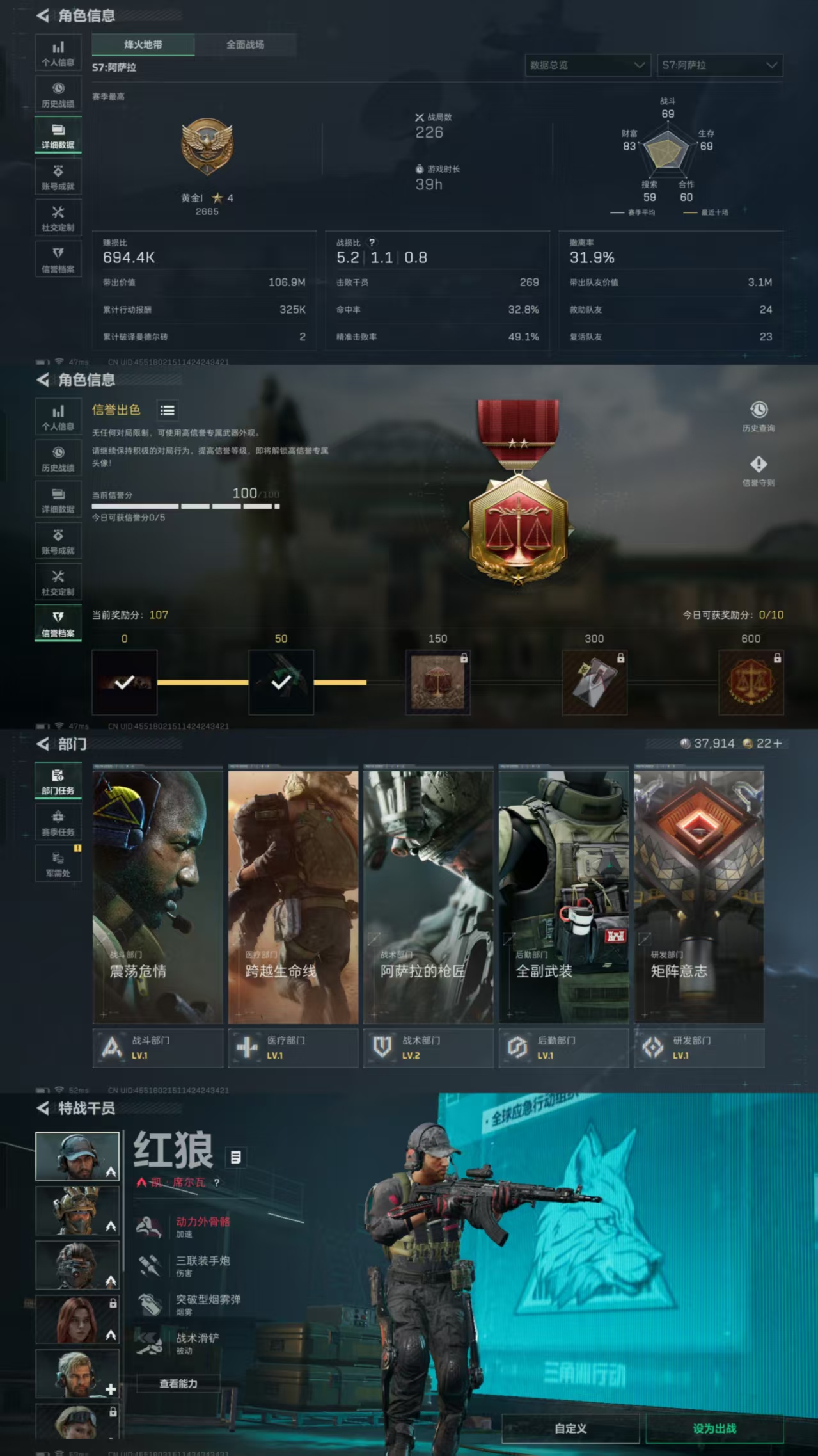 总价值6.5M-哈夫币37.91-烽火地带等级41-烽火地带段位黄金