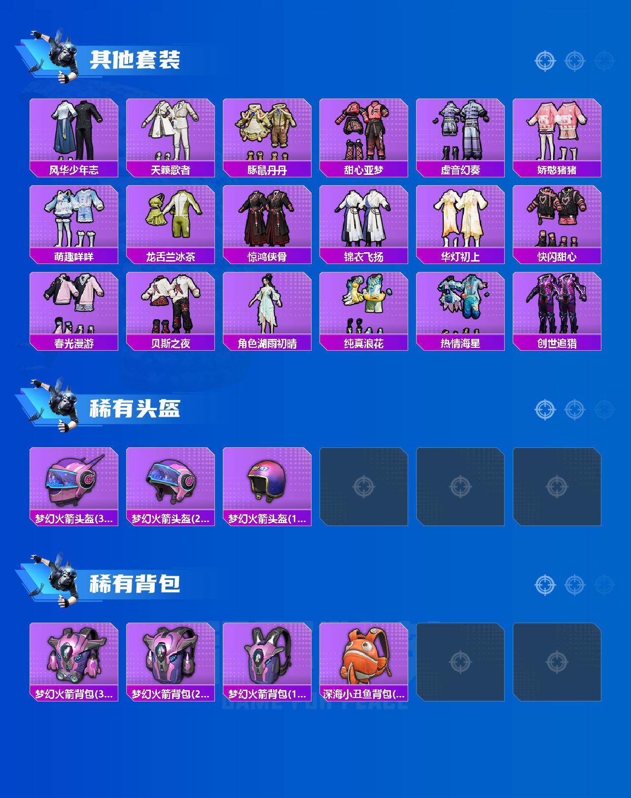 【热门品类】:粉装-梦幻火箭,套装-深海小丑鱼,套装-奇异狩猎者,套装-龟仙人