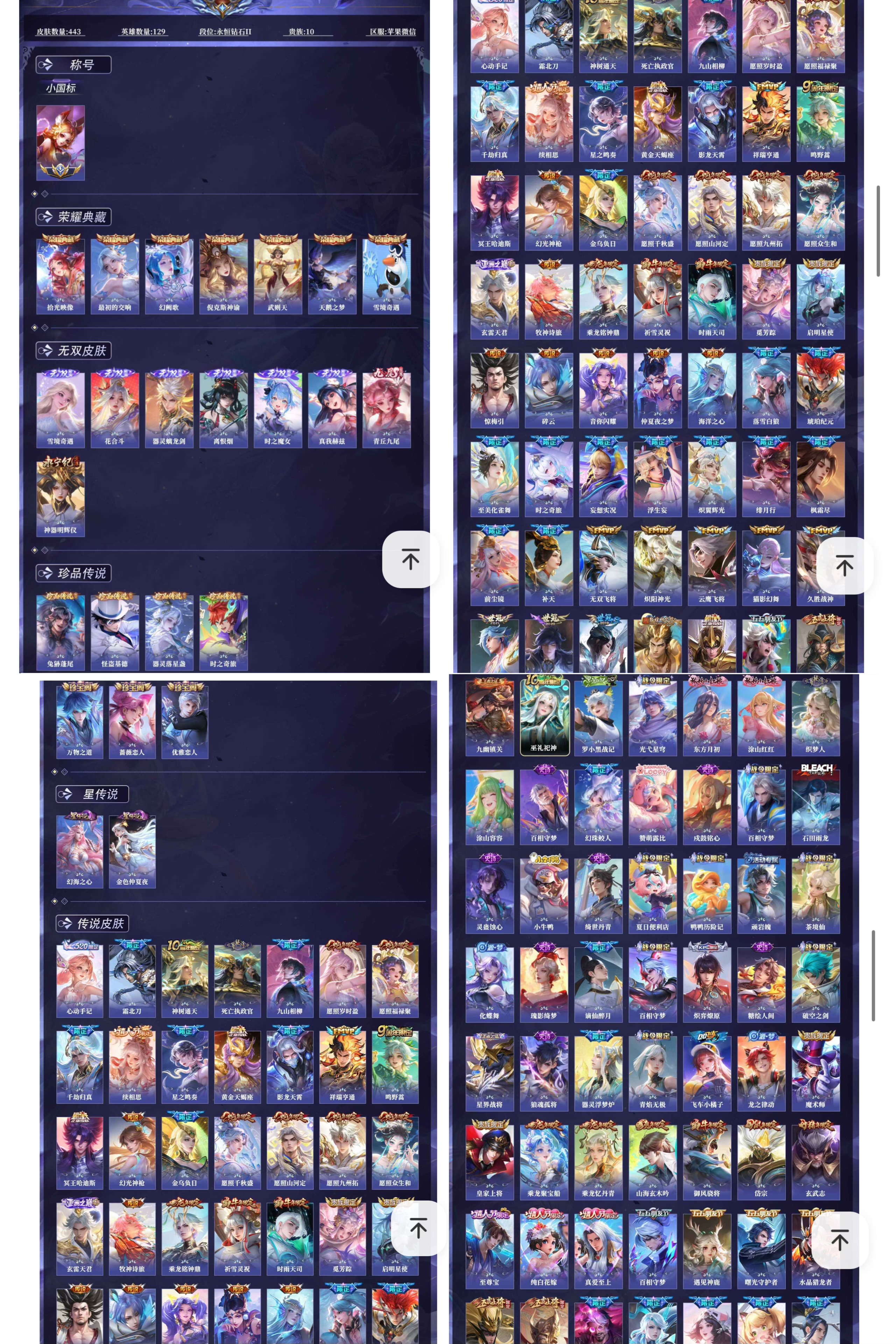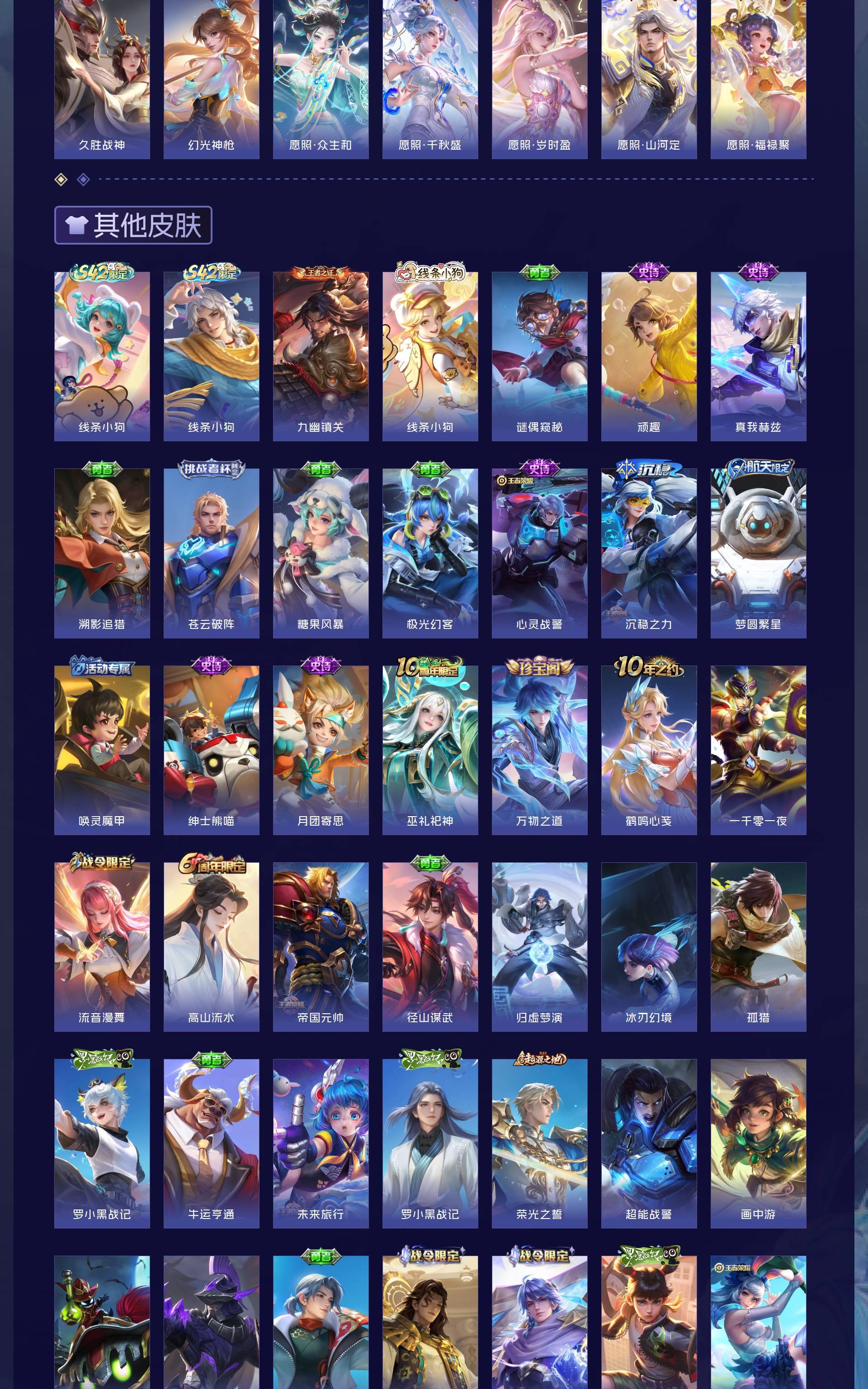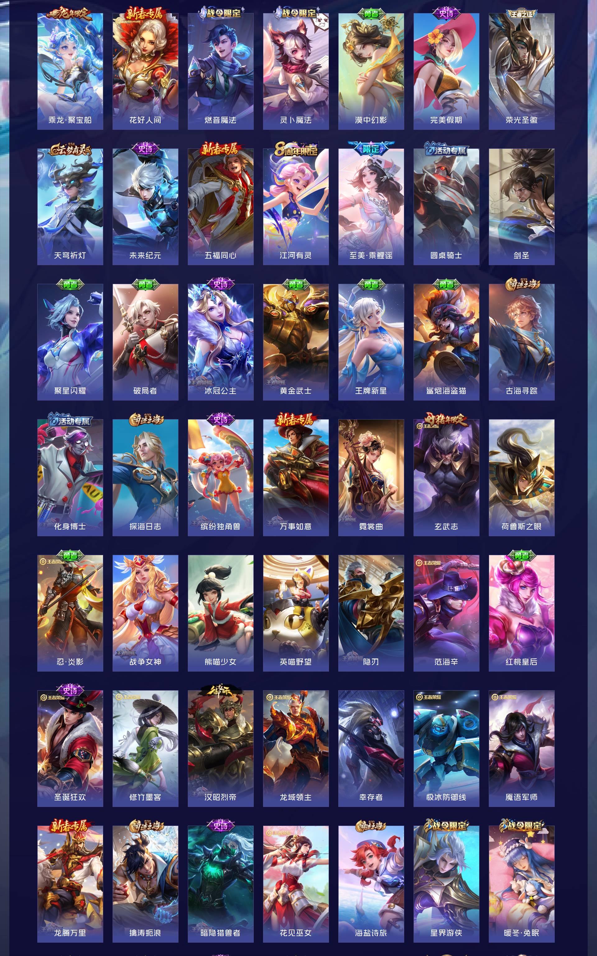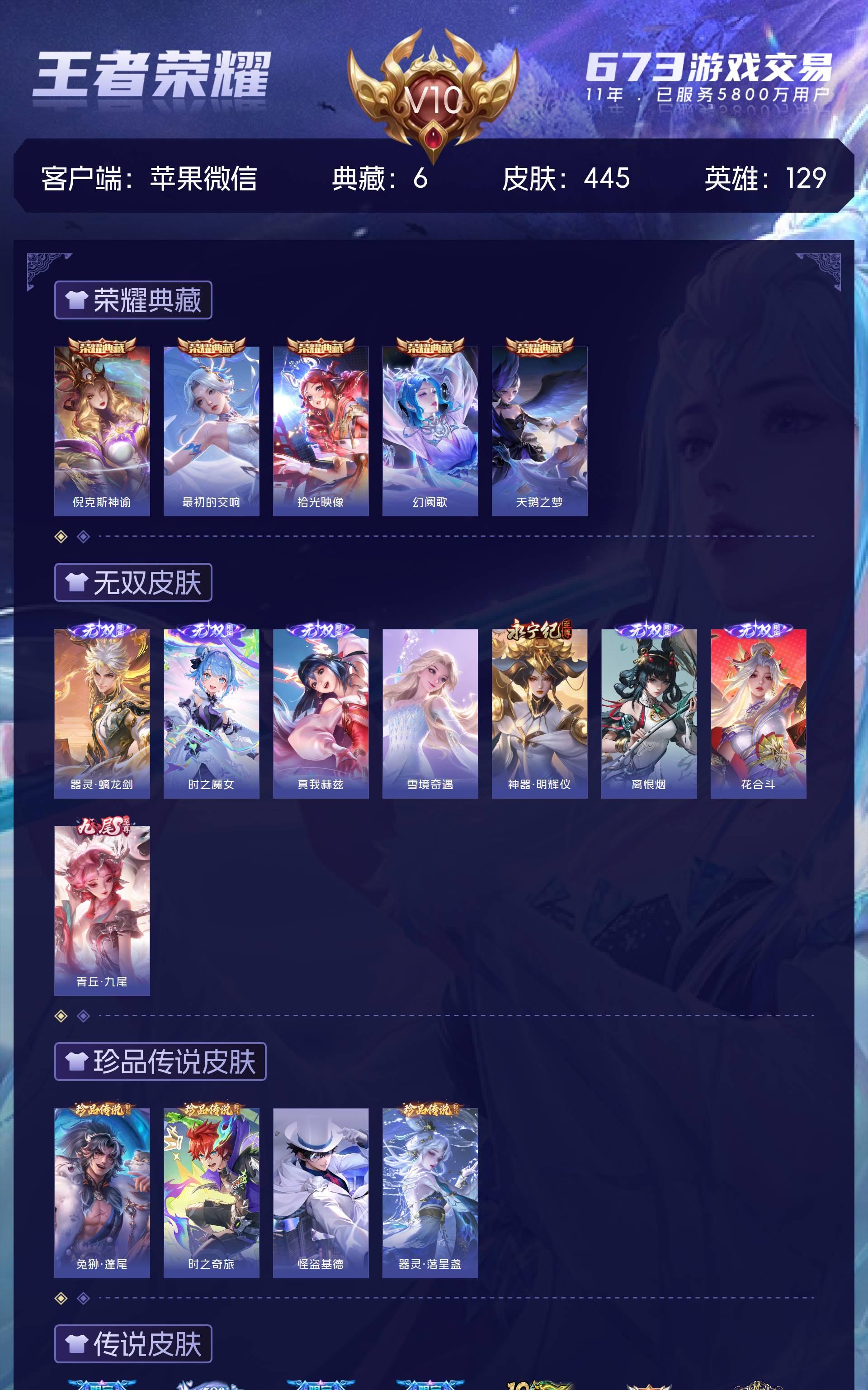 V10 皮肤445 英雄129 永恒钻石 荣耀典藏6 无双皮肤8 珍品传说4 星传说3 传说56 其他皮肤376