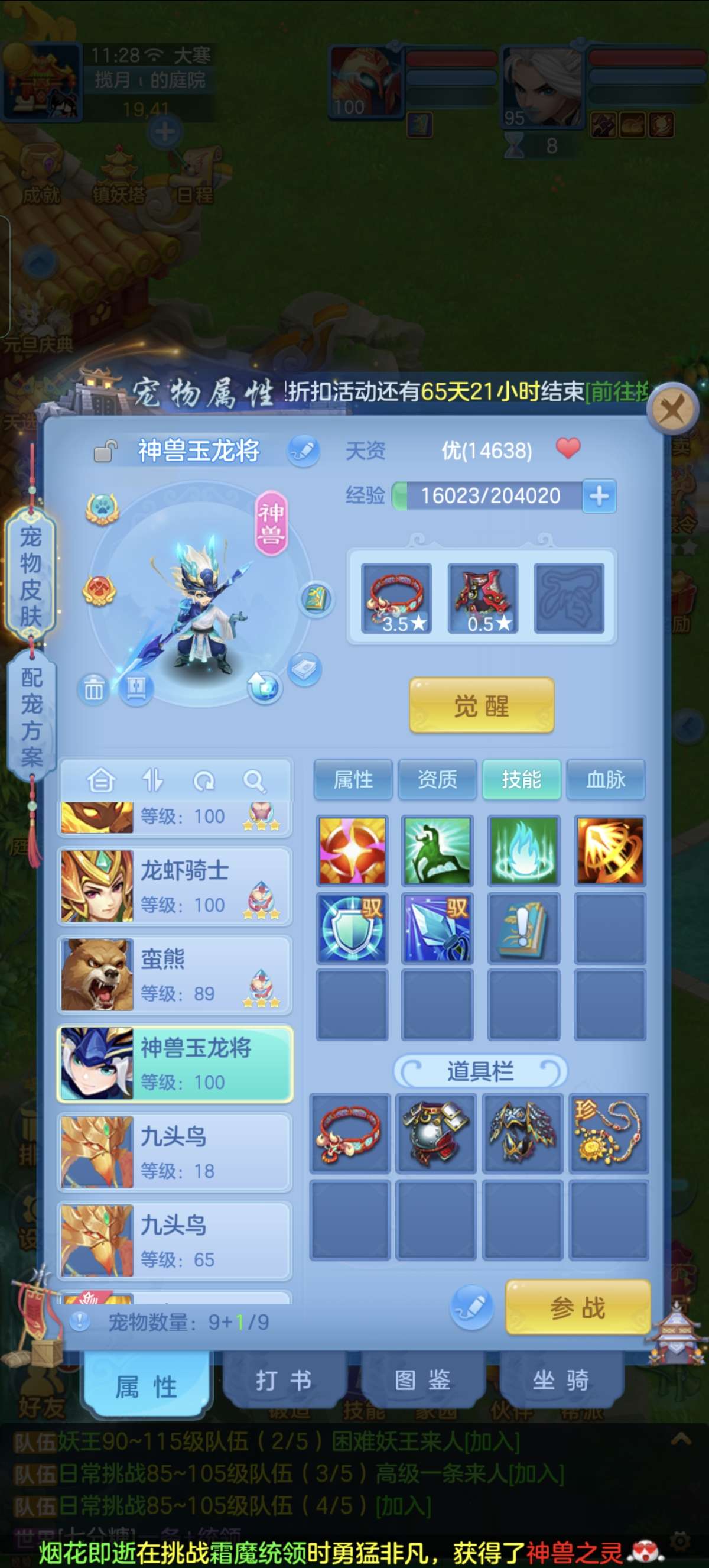 浪淘沙极品天策,装备齐全,多极品宠物,血脉齐全,玉龙将,内丹