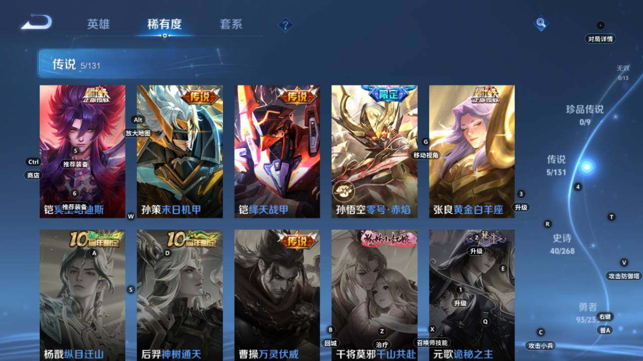 【传说皮肤】:铠冥王哈迪斯,孙策末日机甲,铠绛天战甲,孙悟空零号赤焰,张良黄金白羊座