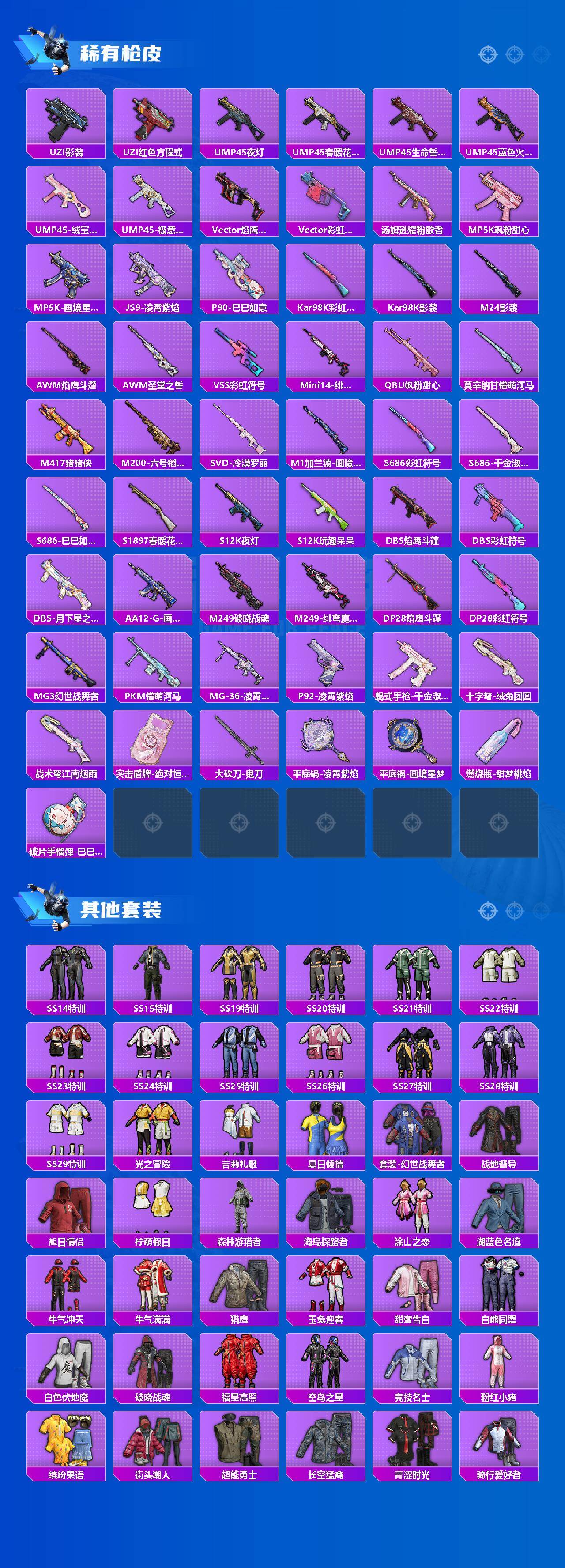 【A4024】苹果【小号 套装-派对舞王/角色-Mark.06/SCAR-L-锦绣绵绵(五级)/M416-电玩时刻(五级)/SPAS-12-音爆索尼克(七级)】 手Q-2粉装-9特效枪-0载具-1粉色飞行器-54364热力值-9王牌印记-120套装-197枪皮