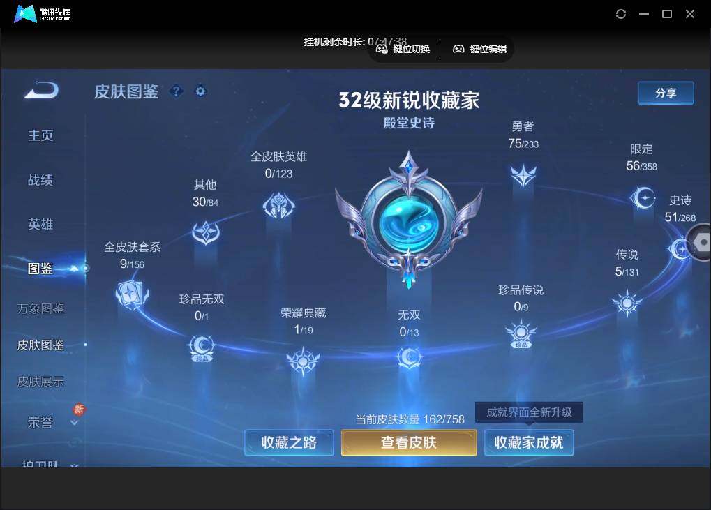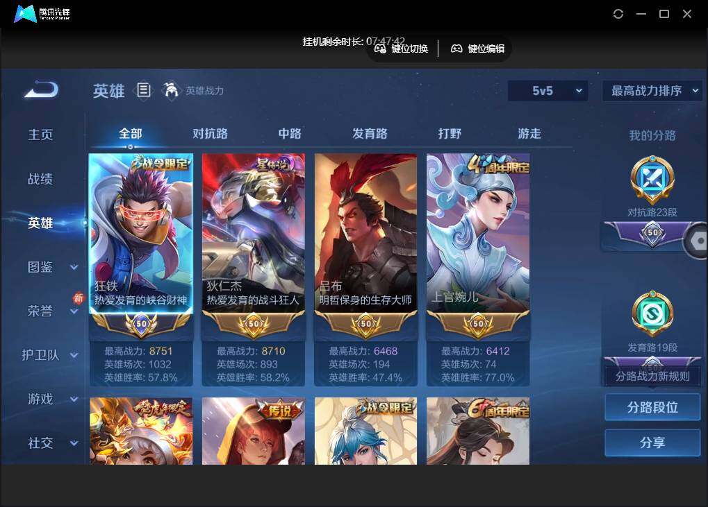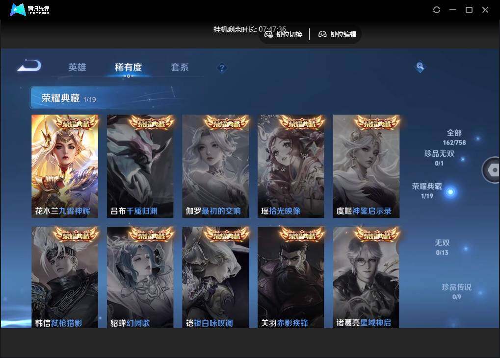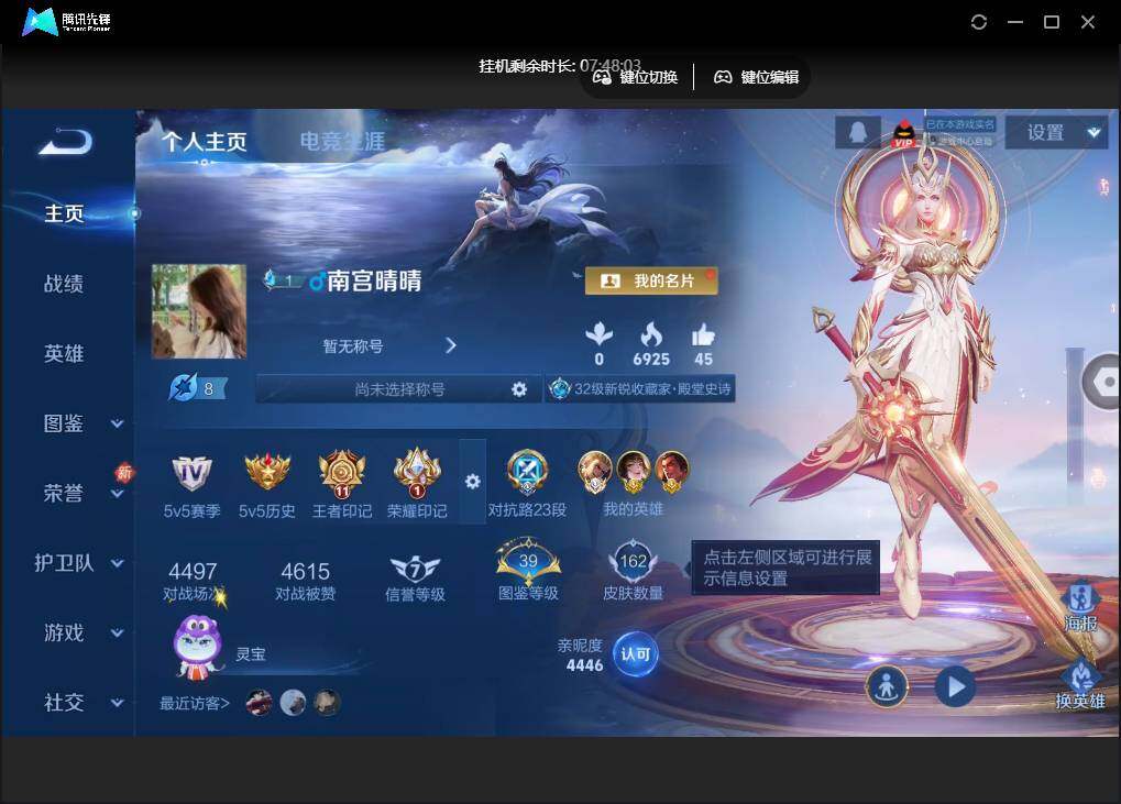 【W4967】【4.4k低场次-狂铁国标-7个省标】 【爆款臻稀皮肤:九霄神辉-寅虎瑞焰-齐天大圣】安卓q抢先服-有二次-贵6-125英雄-162皮肤-1典藏-1星元-5传说-56限定-1天幕-4按键-贵族积分1.7w