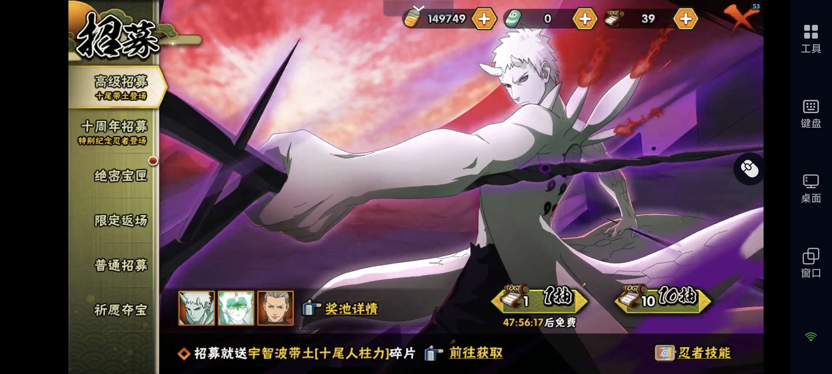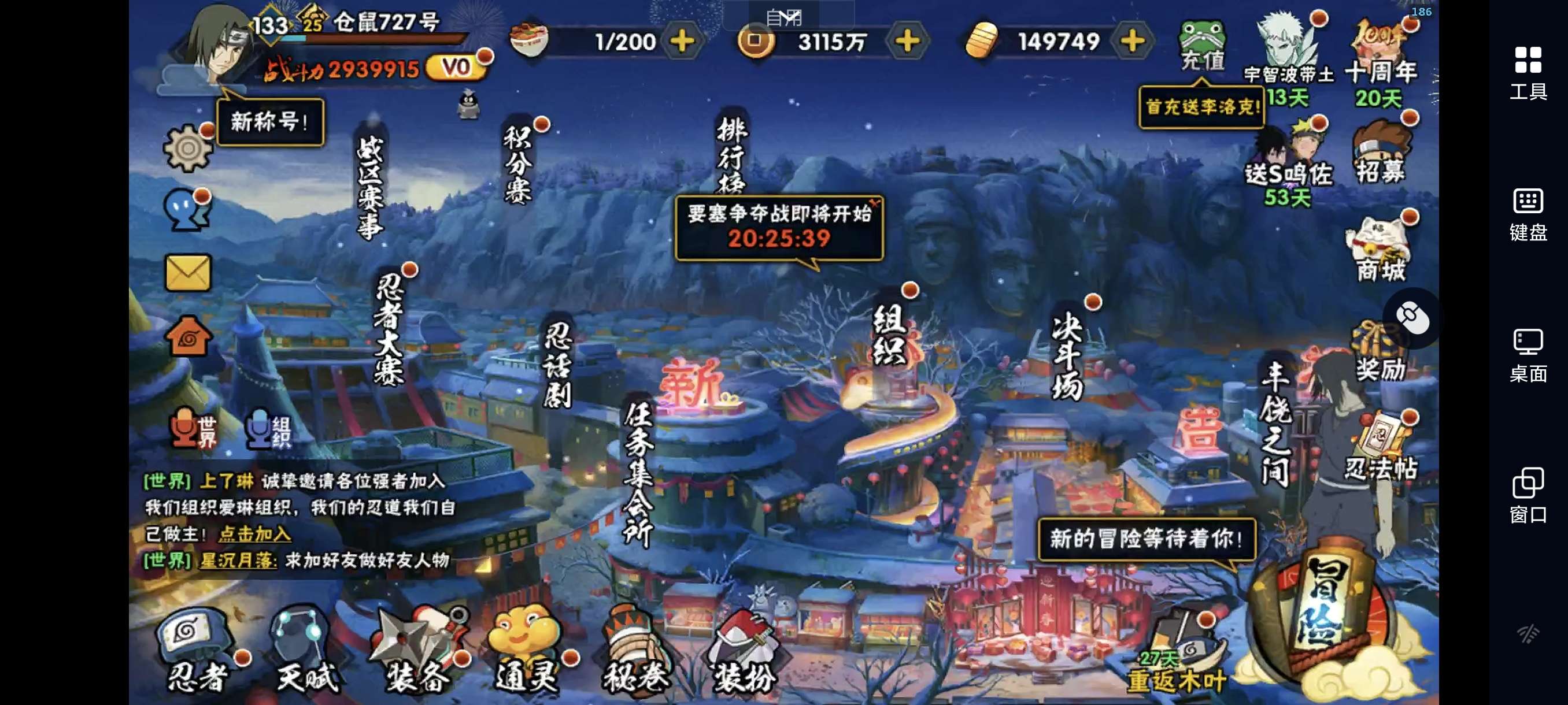 【安卓】仓鼠金币727号,149749金币,39张高招卷,2990限时点券,火影忍者手游QQ区,蜀面