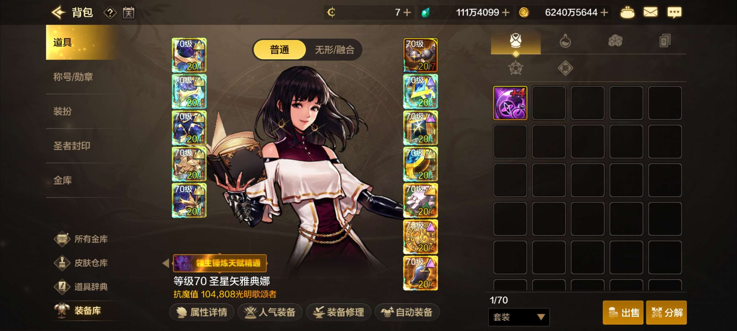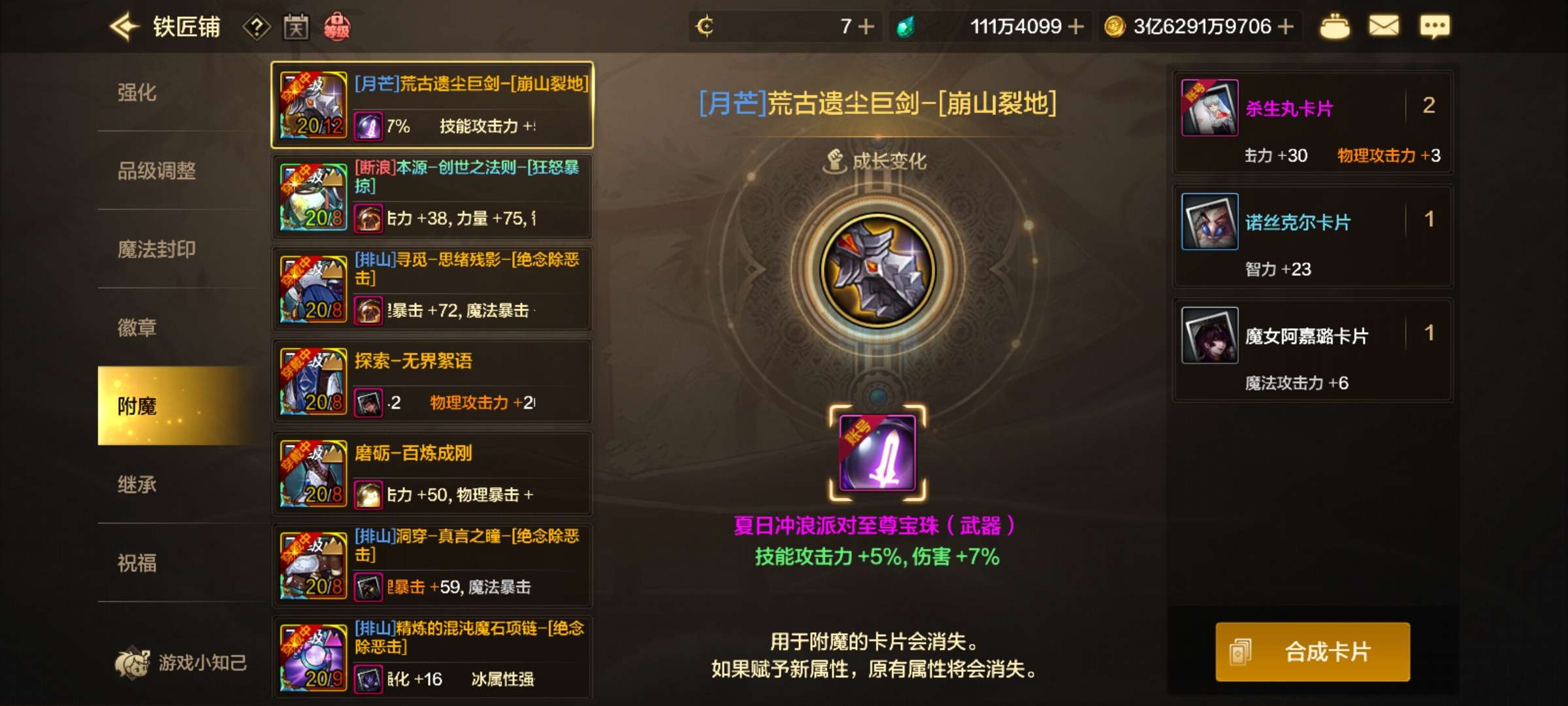 最终伤害20.47,属强8+6+6+6,号留110万泰拉,换附魔,下周罐子双起源抗魔122000以上