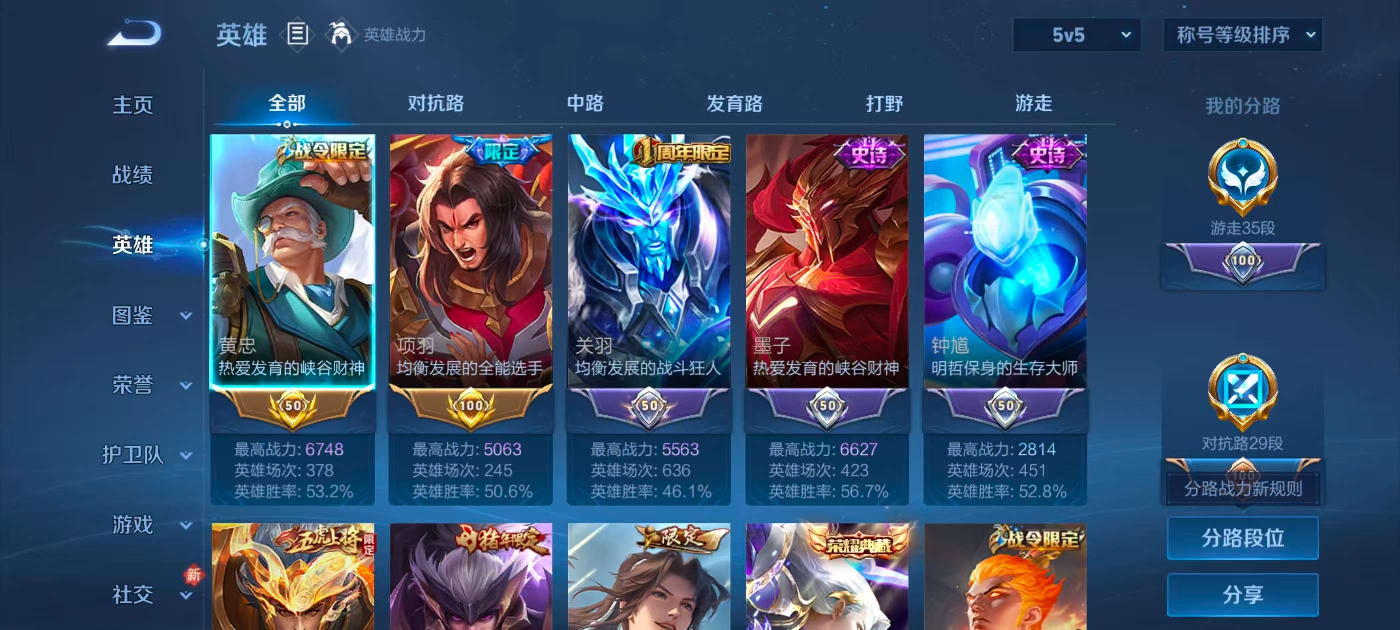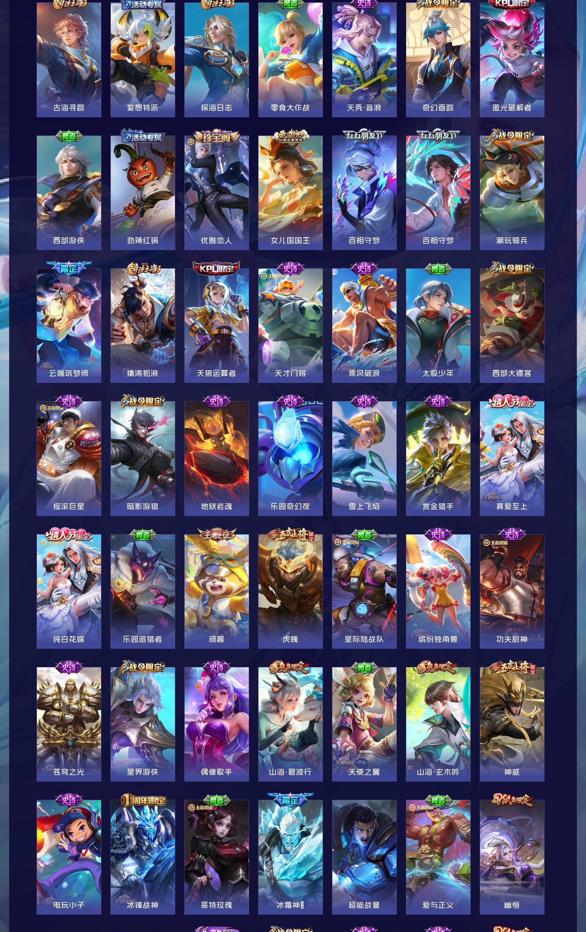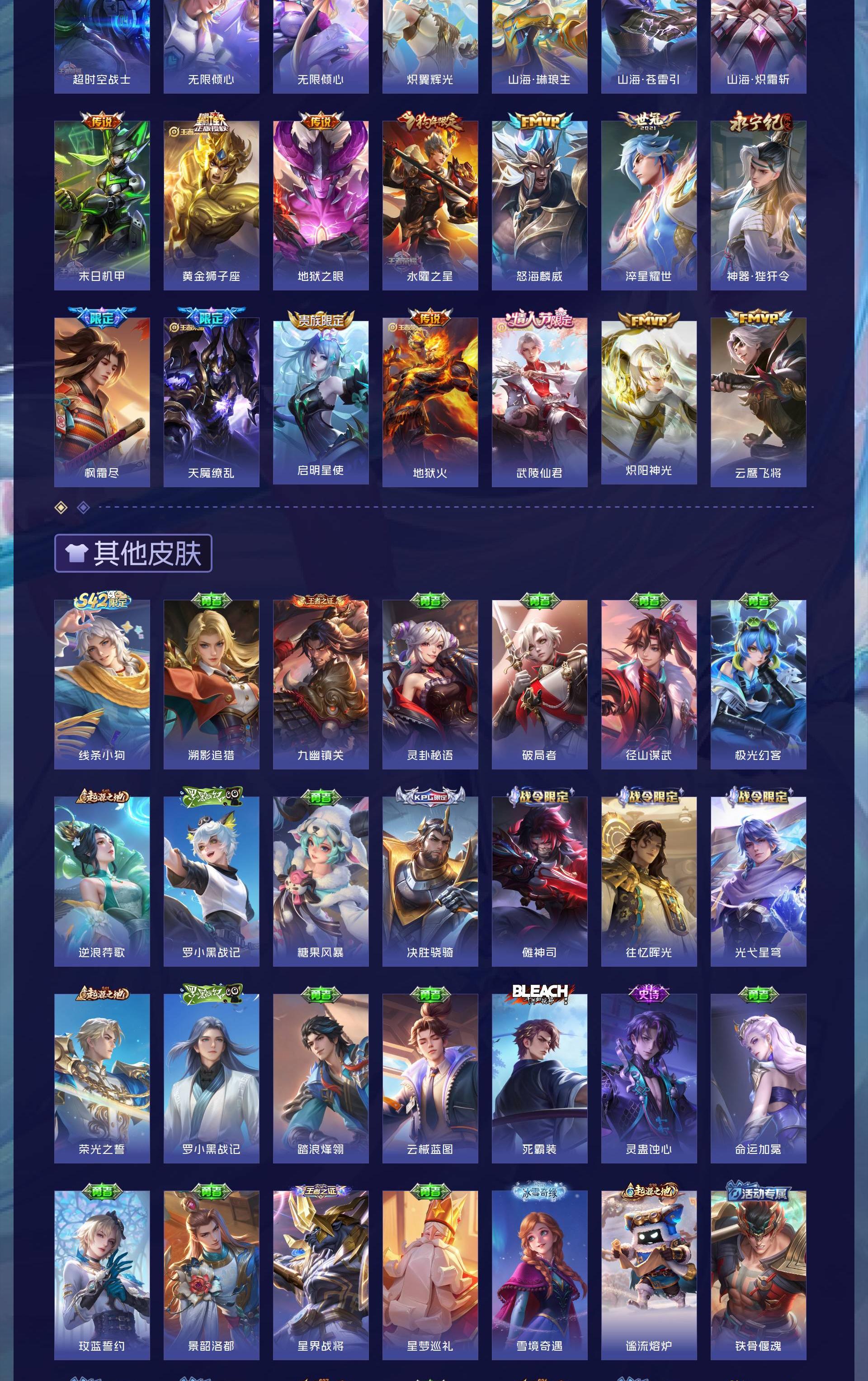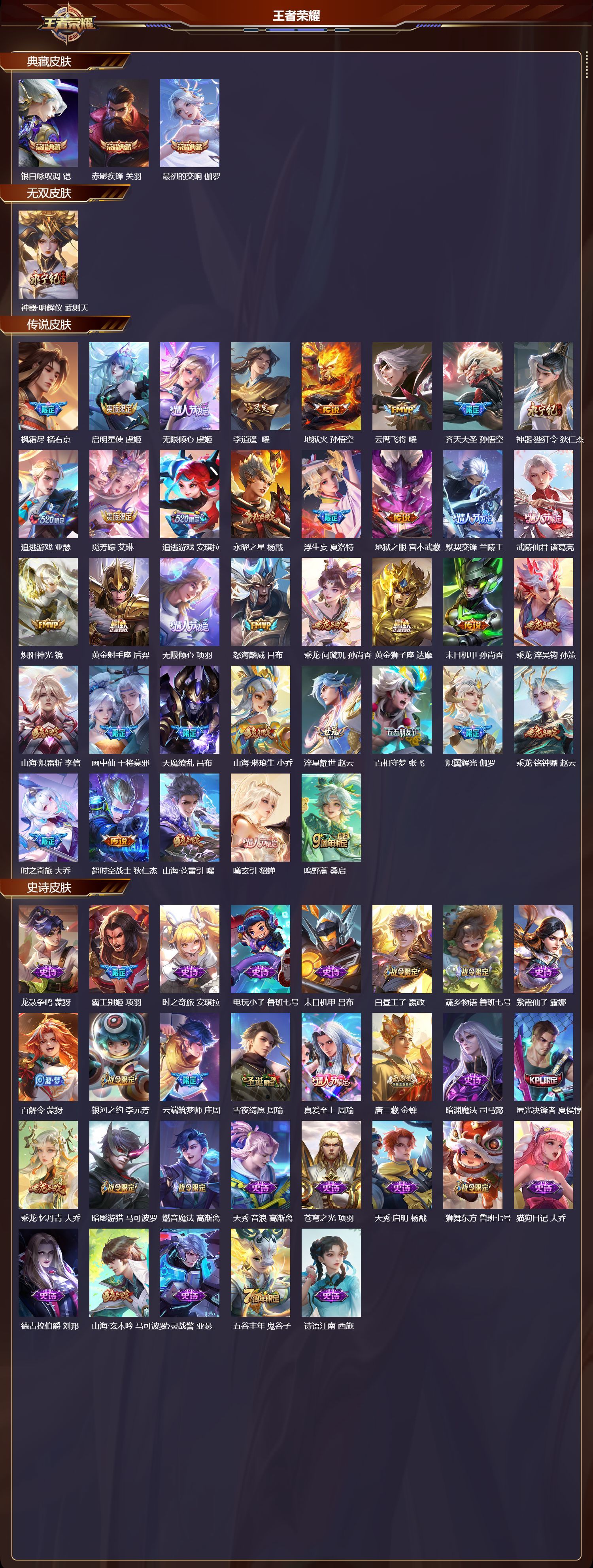 V10 皮肤442 英雄129 至尊星耀 荣耀典藏4 无双皮肤1 传说36 其他皮肤407