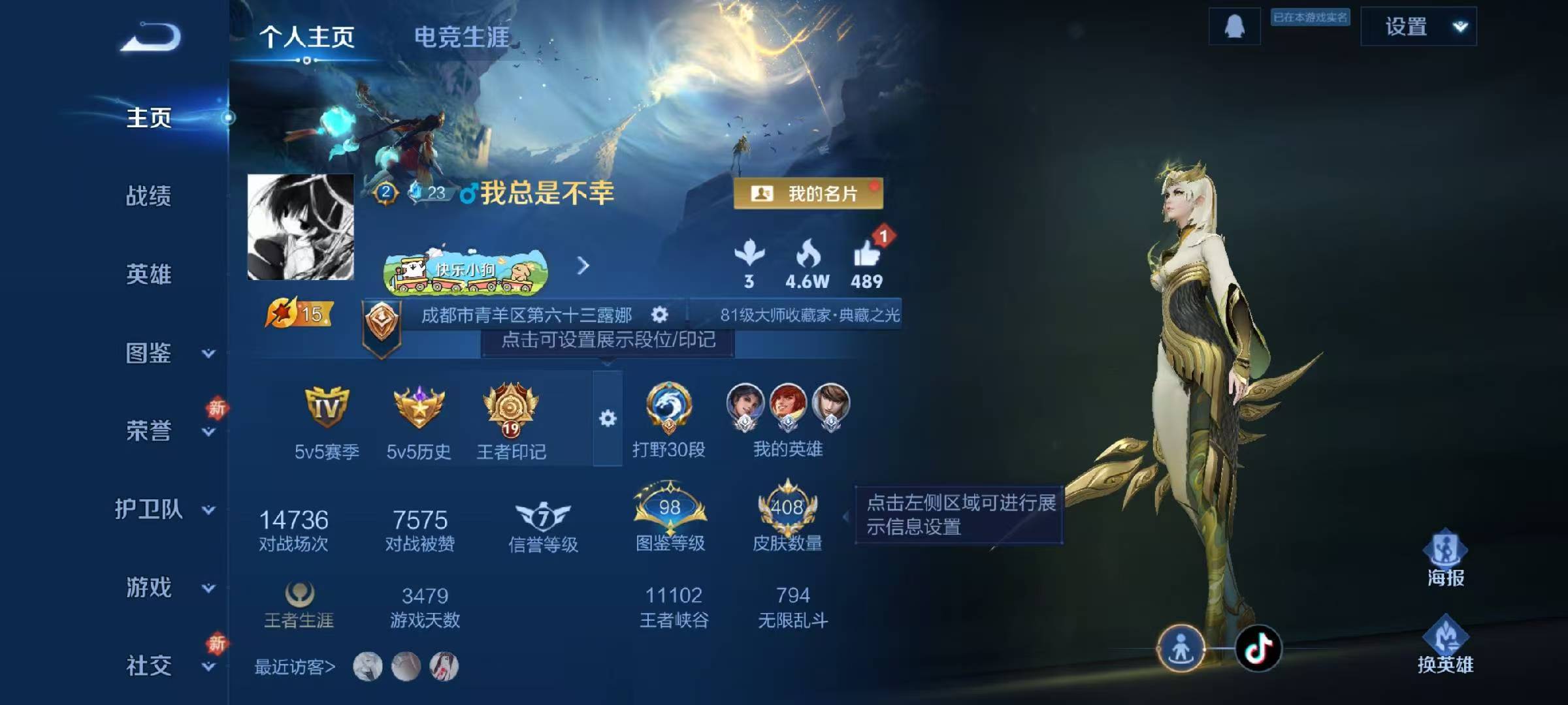 安卓QQ/至尊星耀/408皮肤/127英雄/3典藏/0珍品无双/0无双/1珍品传说/39传说/117