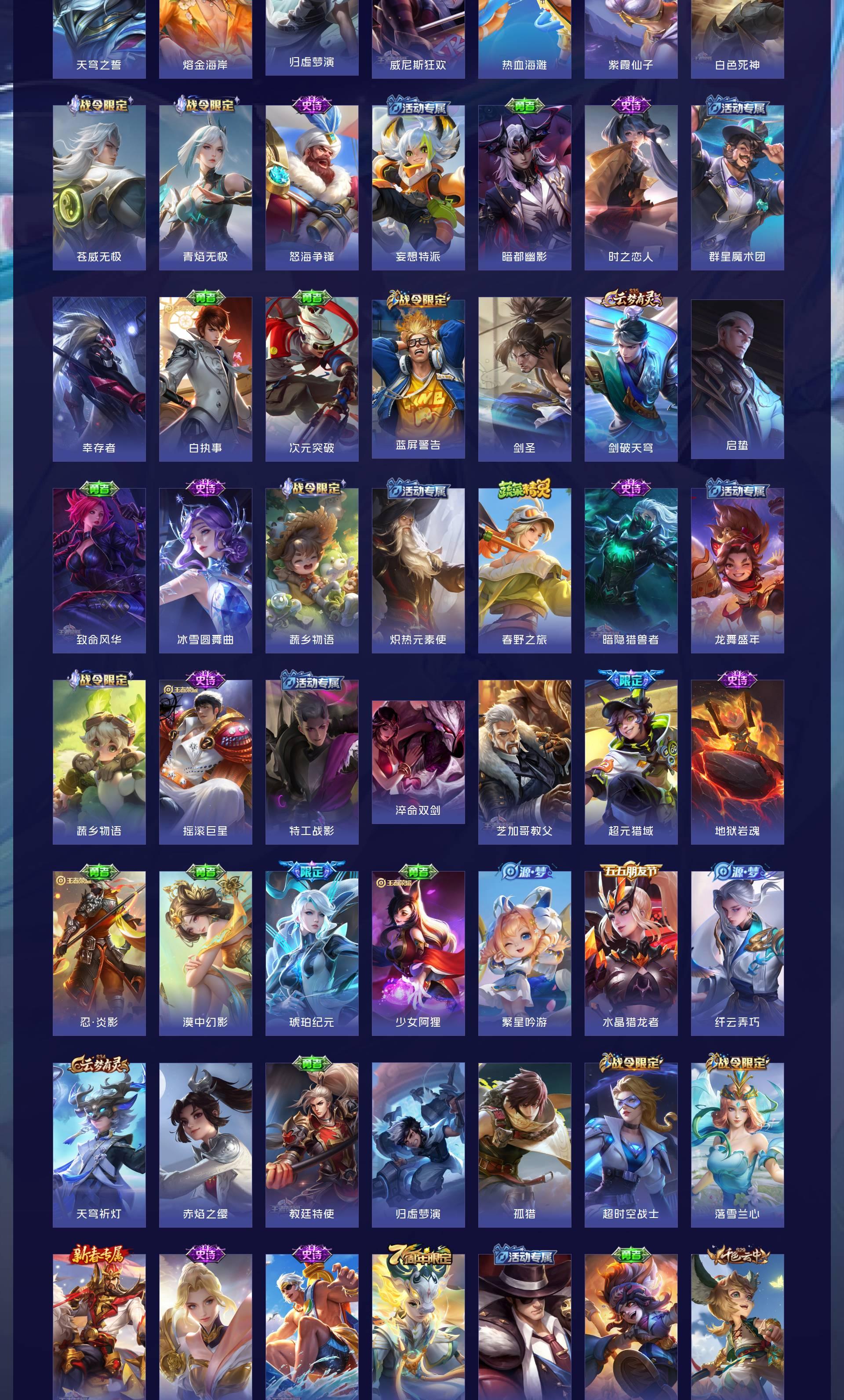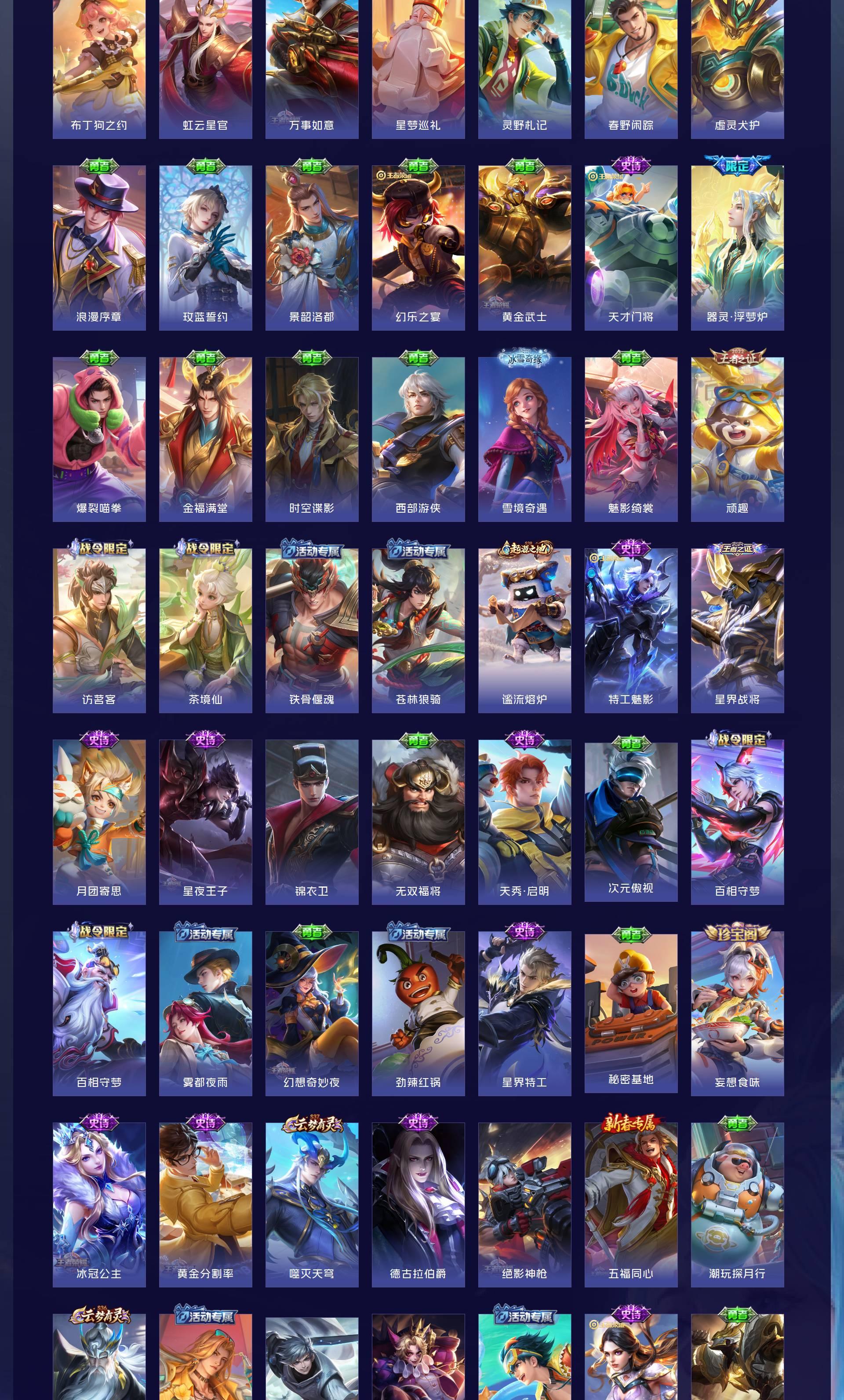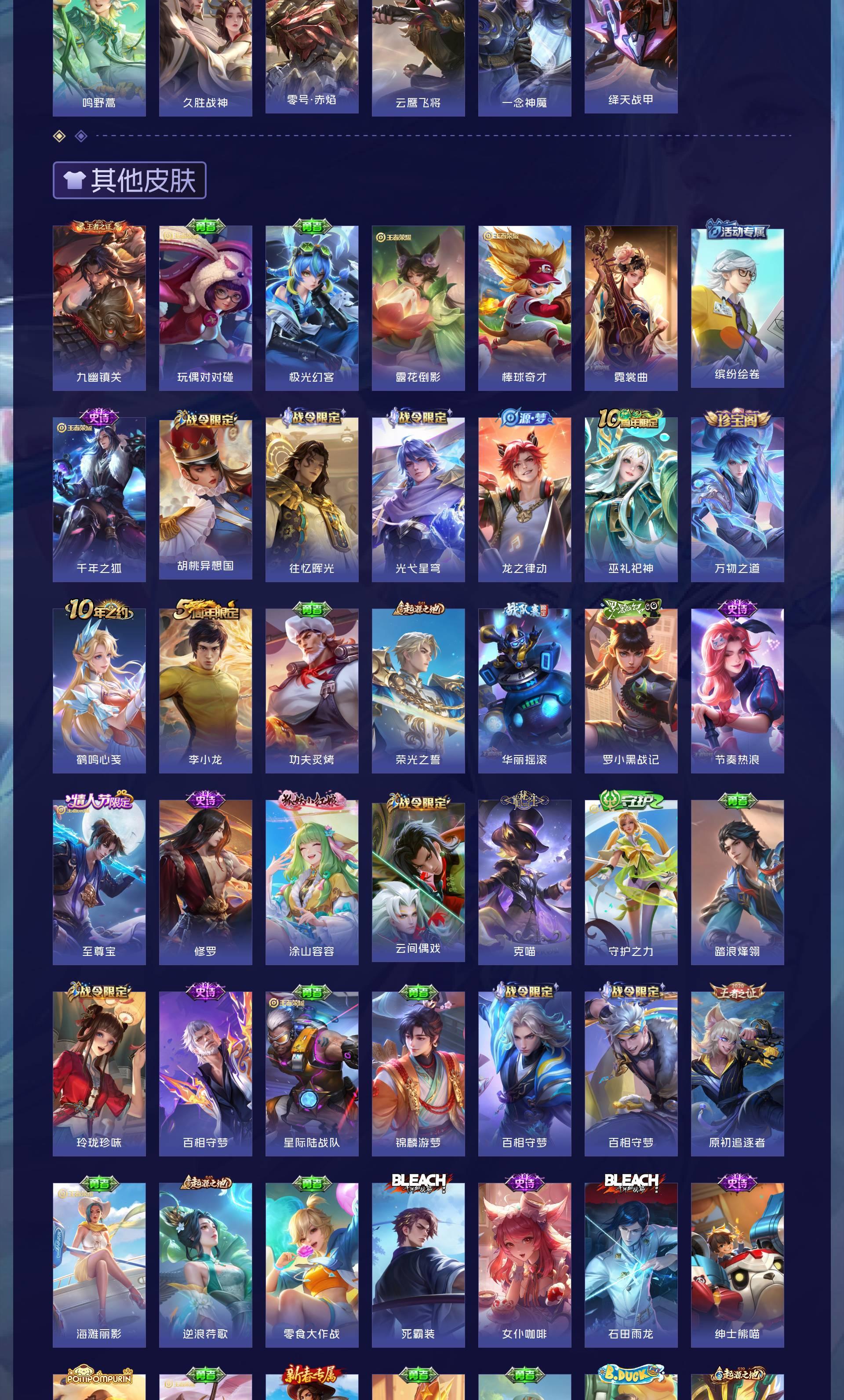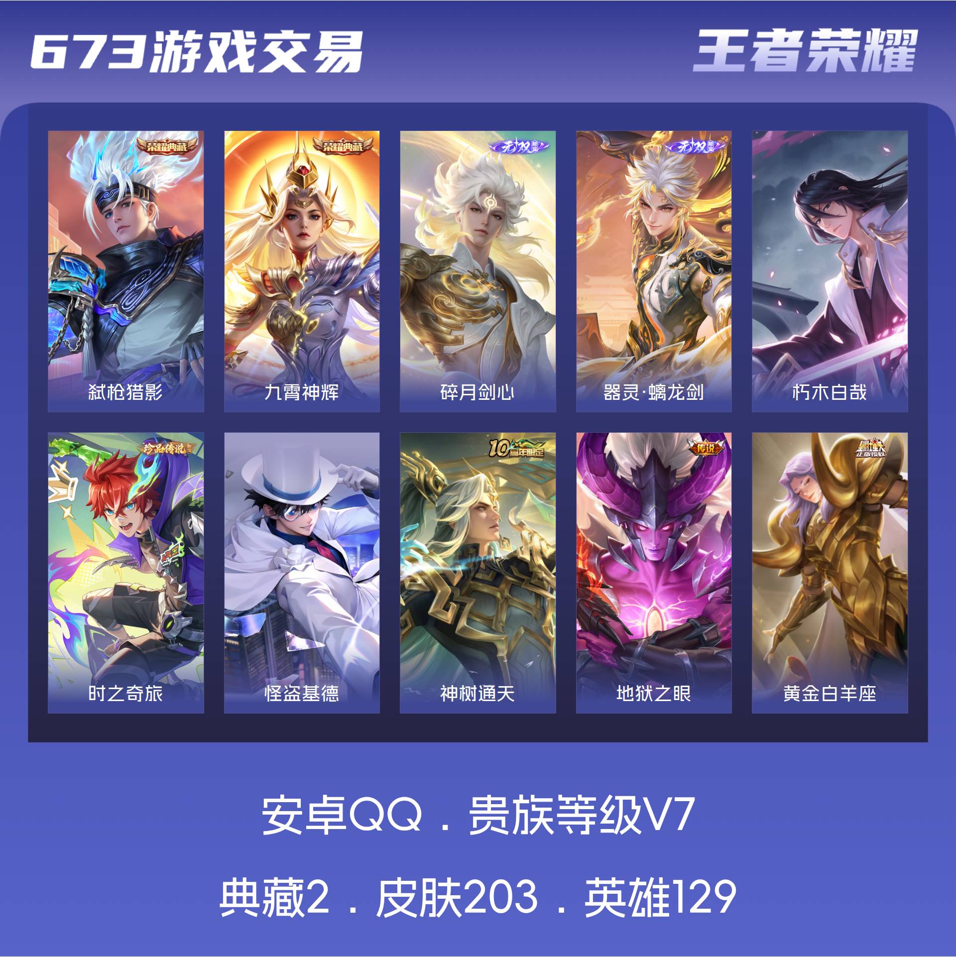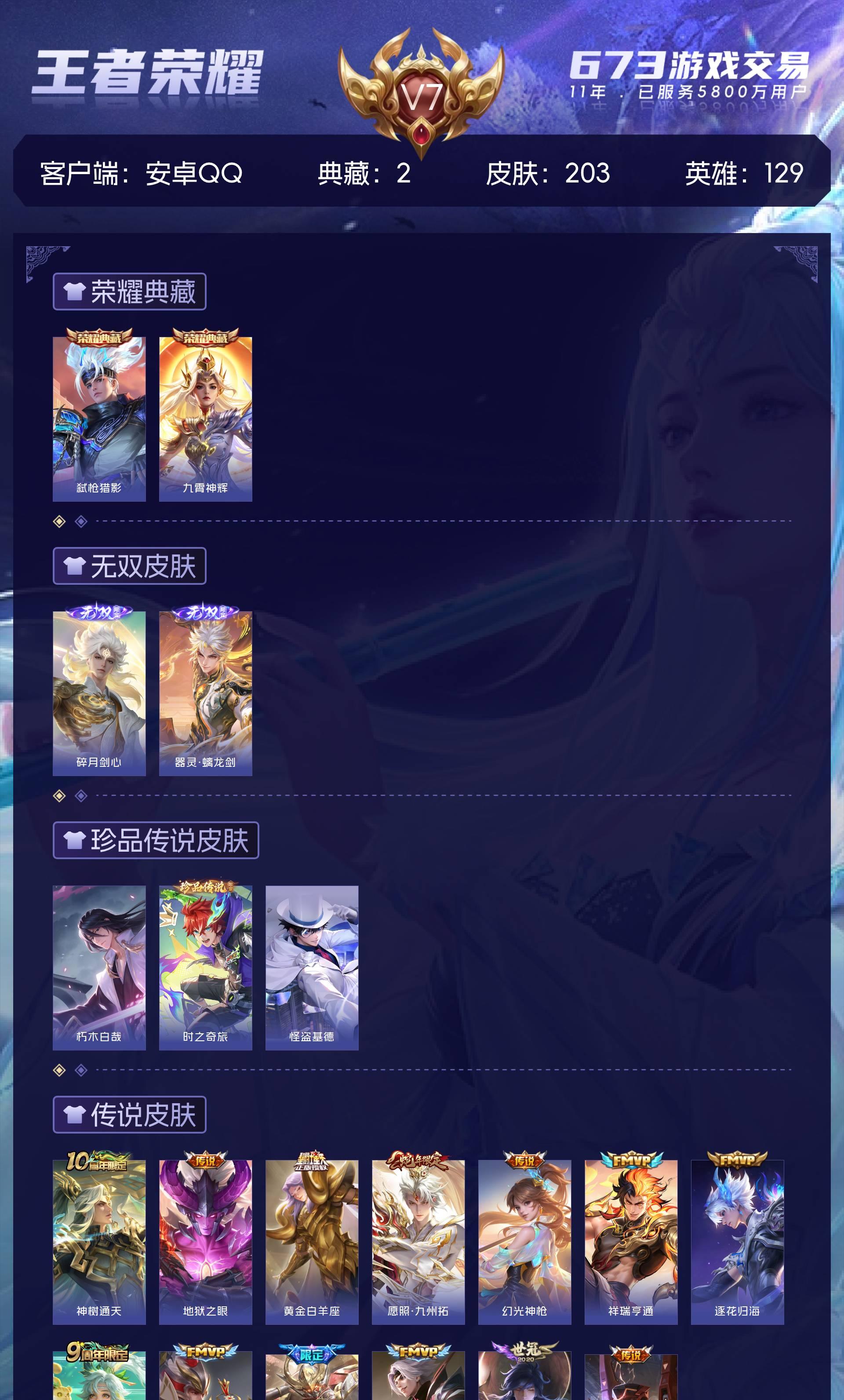 V7 皮肤203 英雄129 至尊星耀 荣耀典藏2 无双皮肤2 珍品传说3 传说13 其他皮肤189
