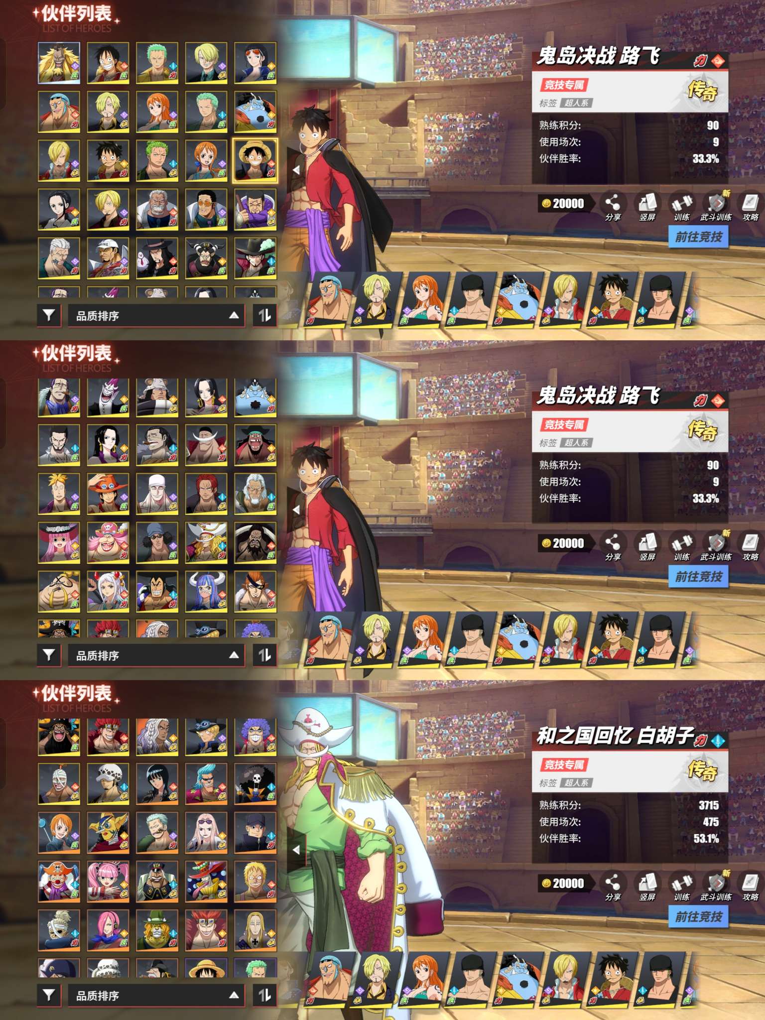 1000万竞技场57传奇9强者,青白,大和,和索和路,基德,魔神山治,四皇黑胡子,十字公会老沙,竞技