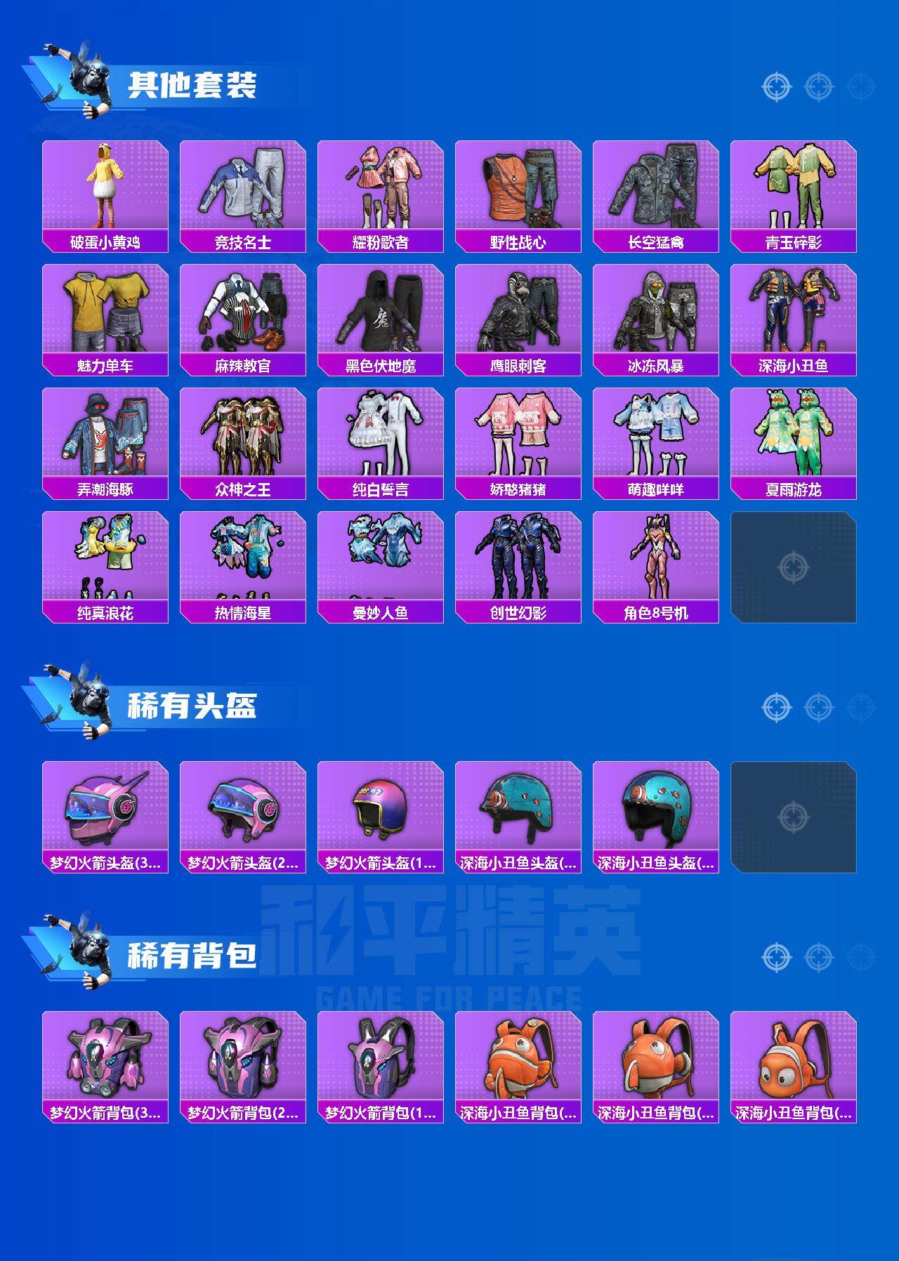 【热门品类】:粉装-梦幻火箭,套装-深海小丑鱼,角色-军刀雅典娜,套装-星河浪客,套装-暗影哥特,角色-8号机,熔岩游骑兵连帽夹克