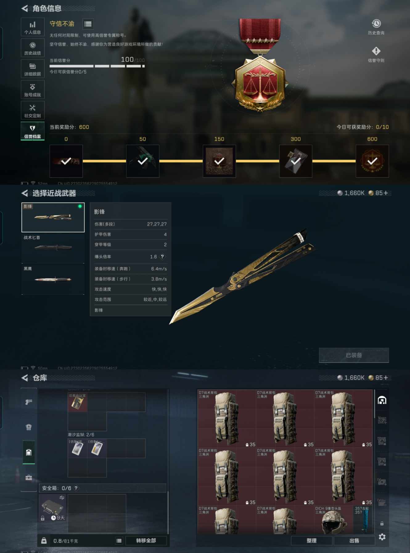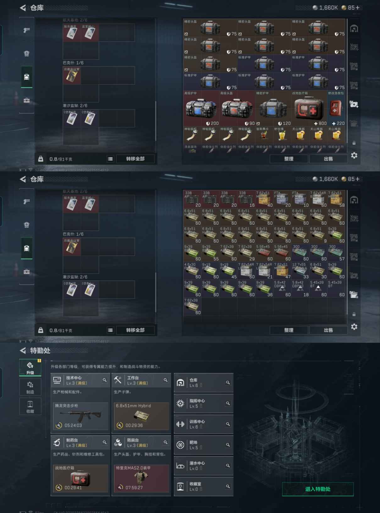 总价值86.3M-哈夫币1660k-烽火地带等级60-烽火地带段位黑