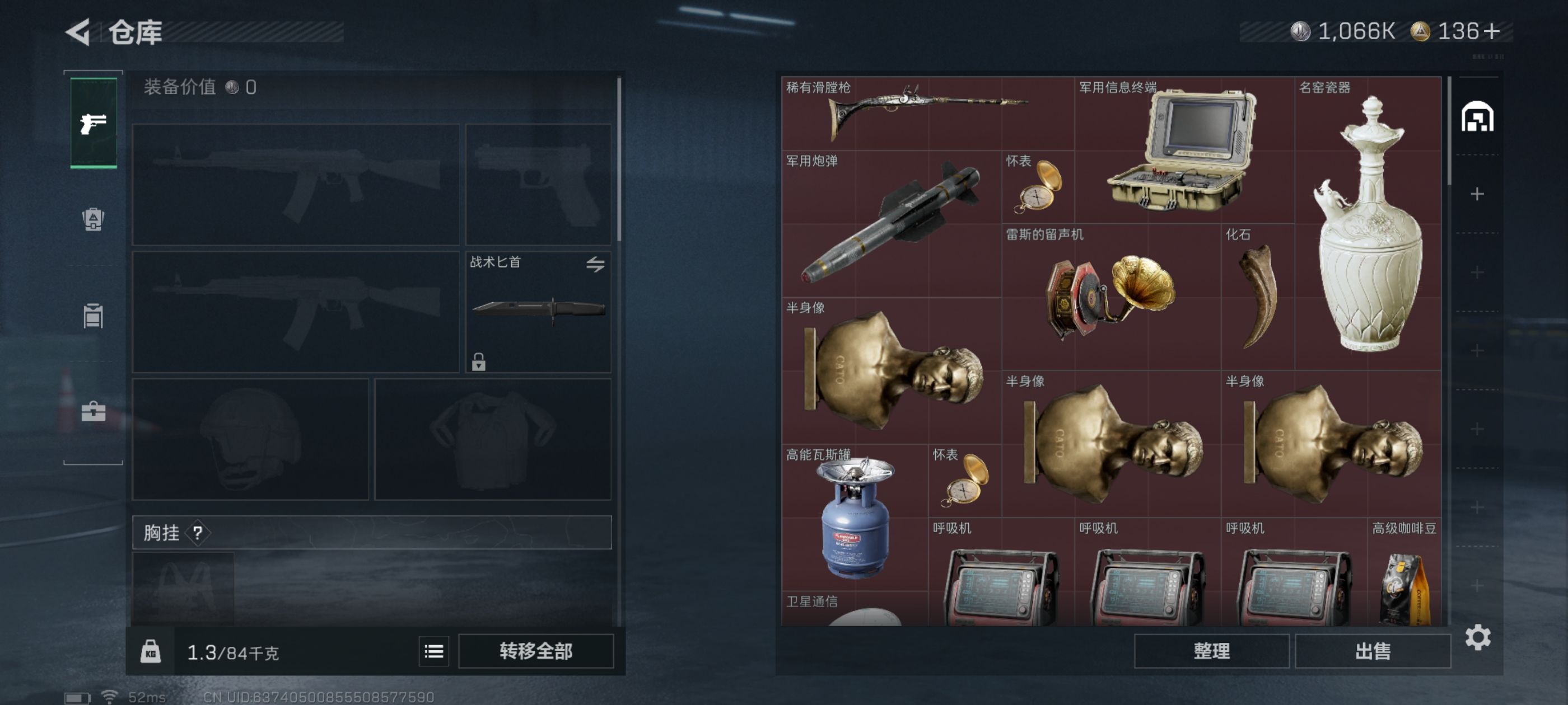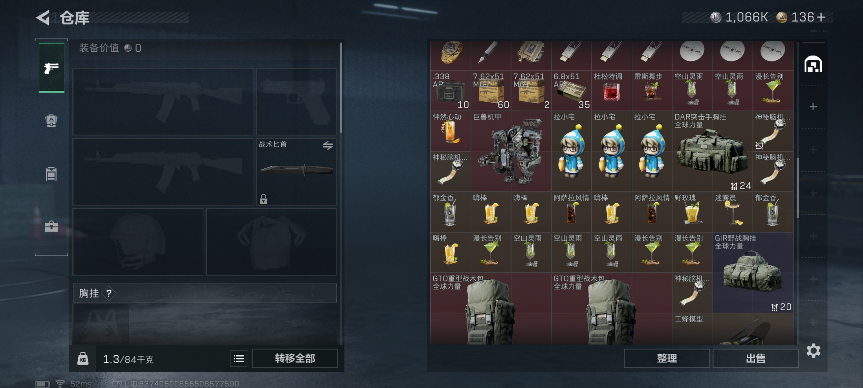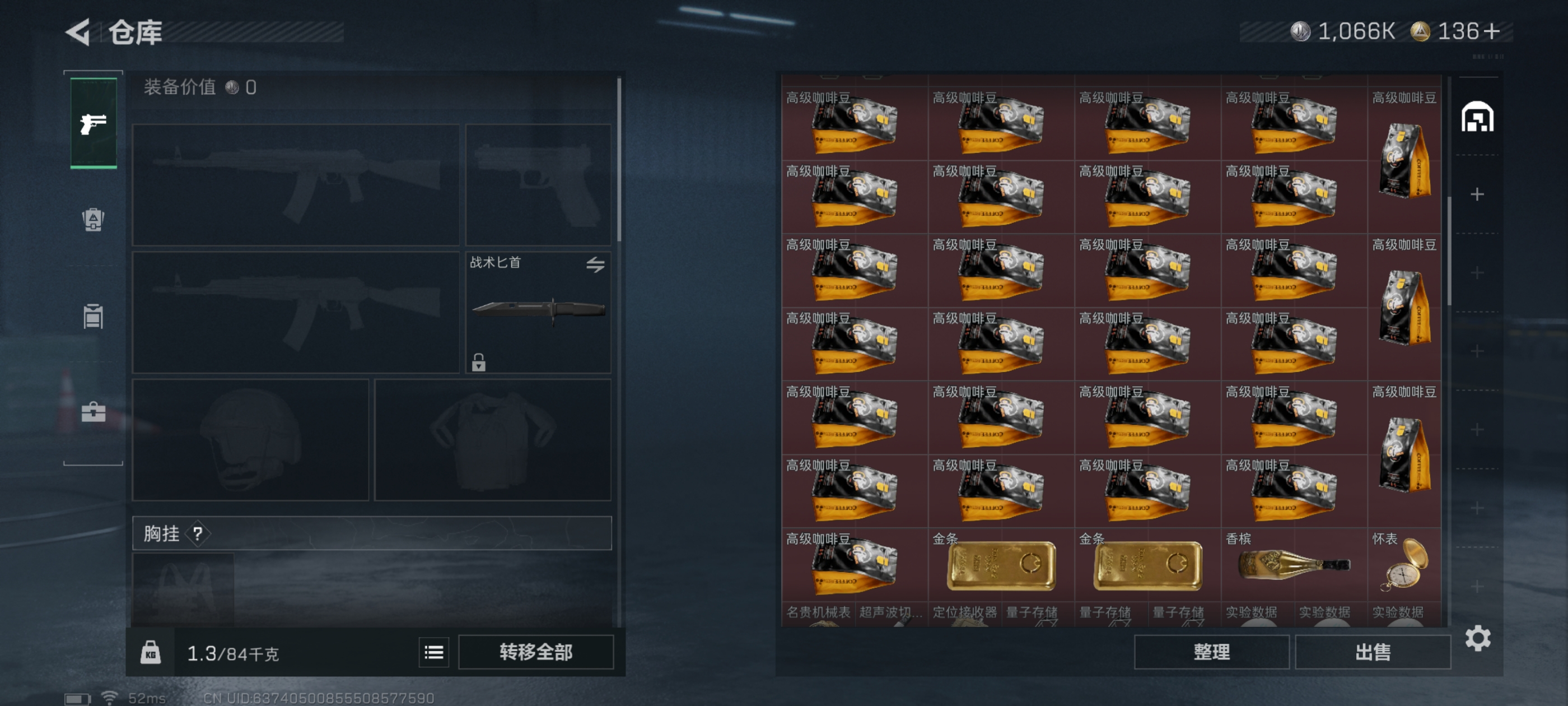 总价值61.5M-哈夫币1066k-烽火地带等级60-烽火地带段位黑