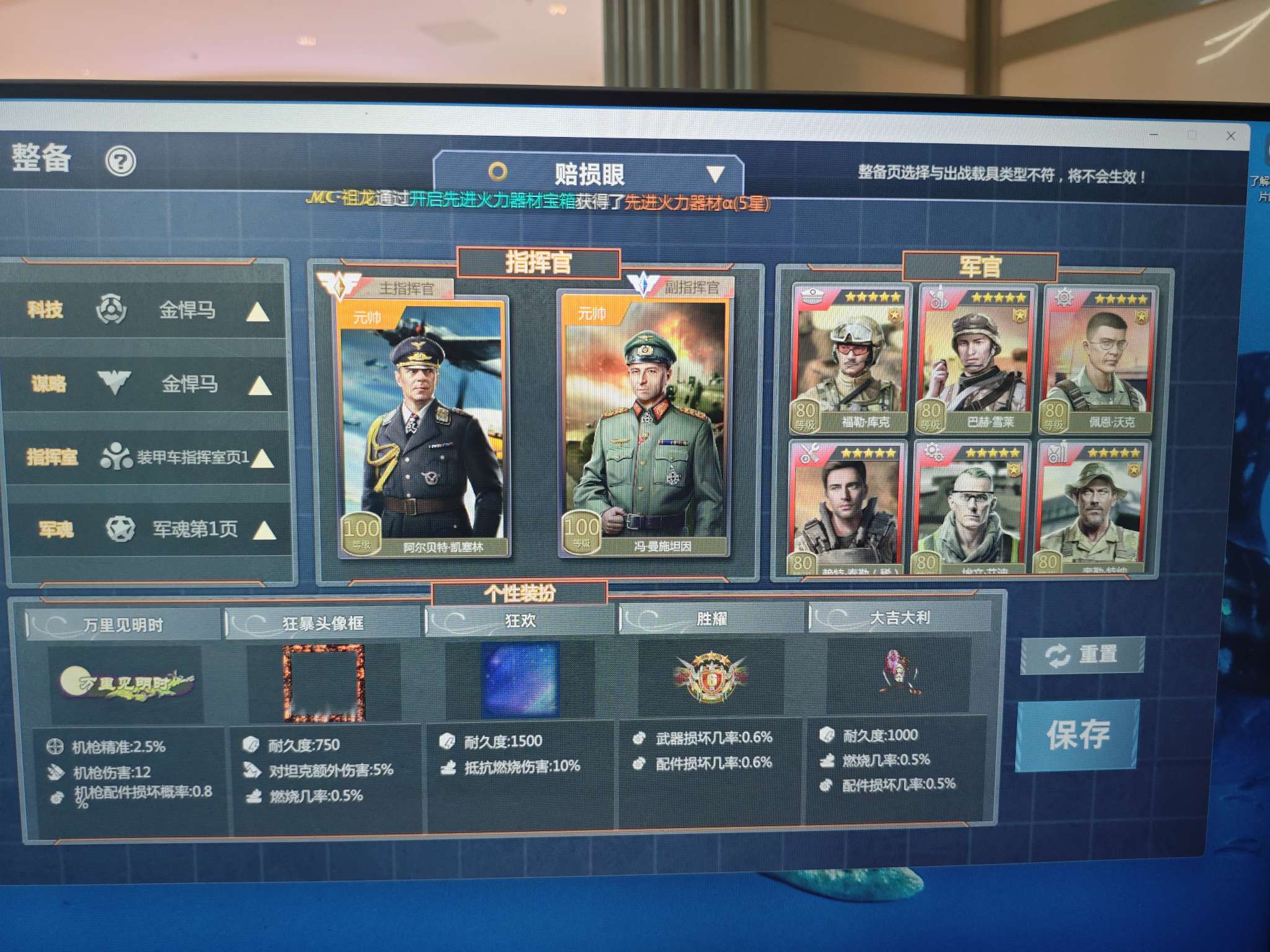 武器全红,部件全红,眼车机炮都有,军魂军官都是最好的,图片太多传不完。