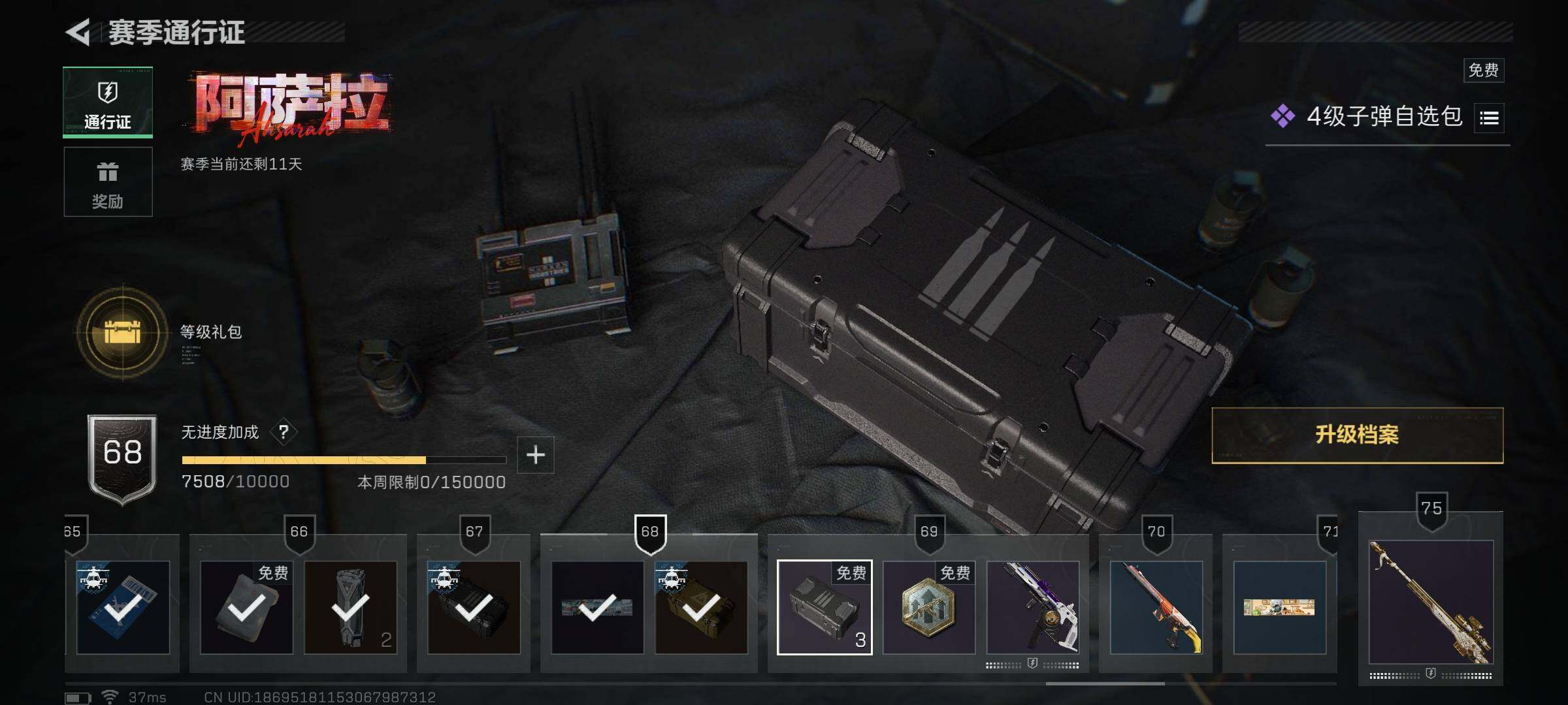 总资产(M):51M/哈夫币(K):87K/传说枪皮数:1/全面战场等级:1_段位:无段位/烽火地带等级:60_段位:钻石