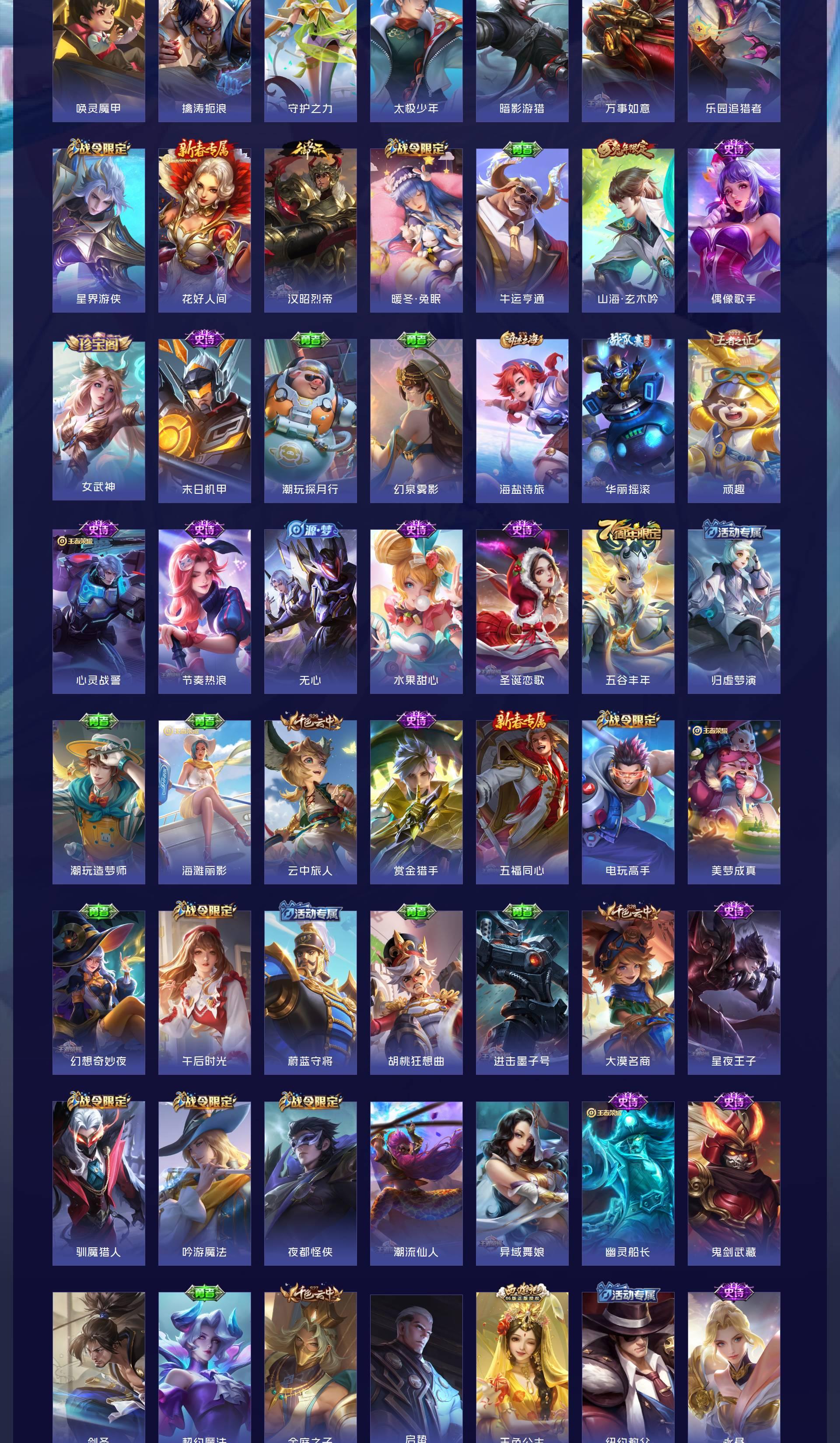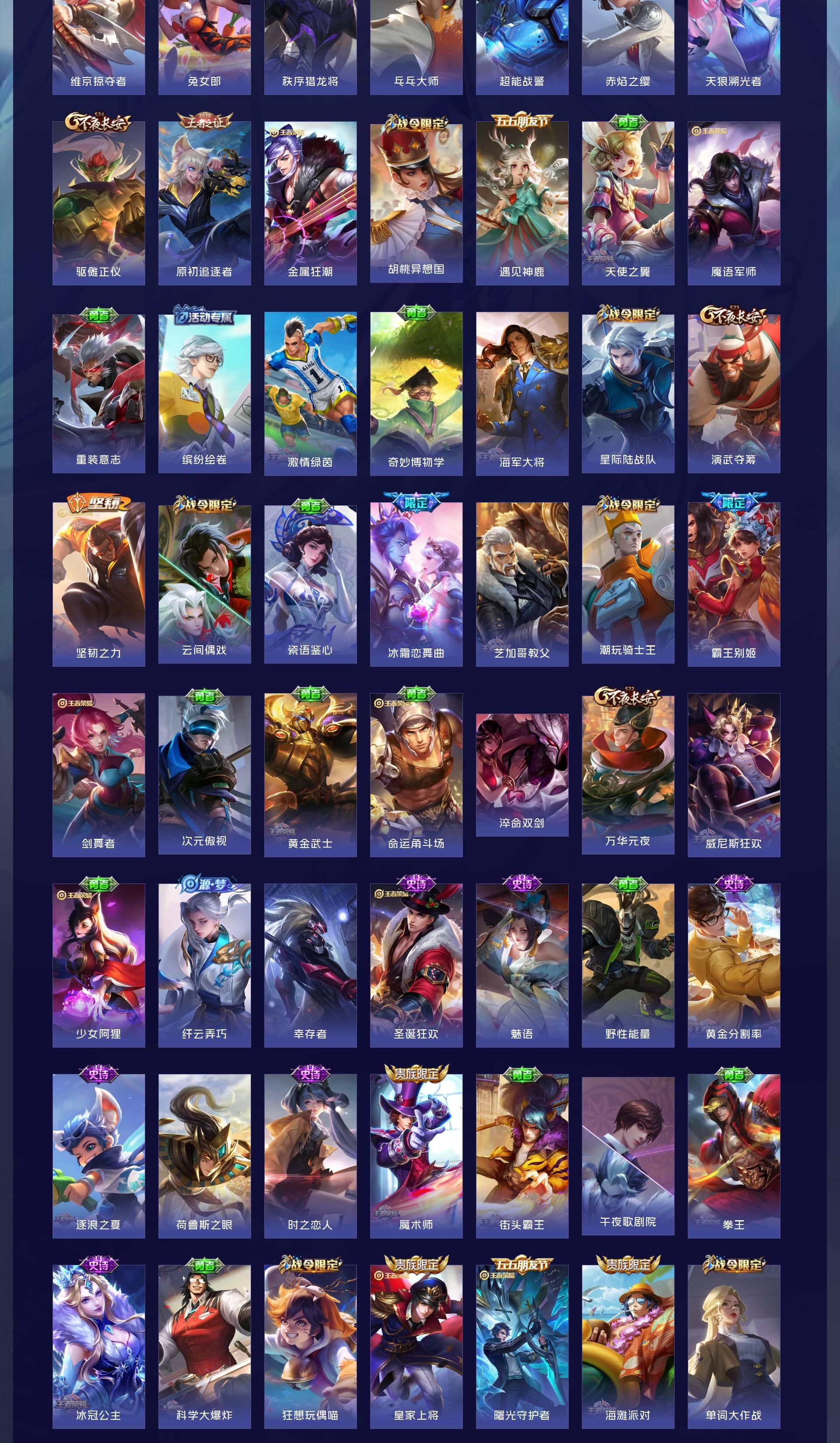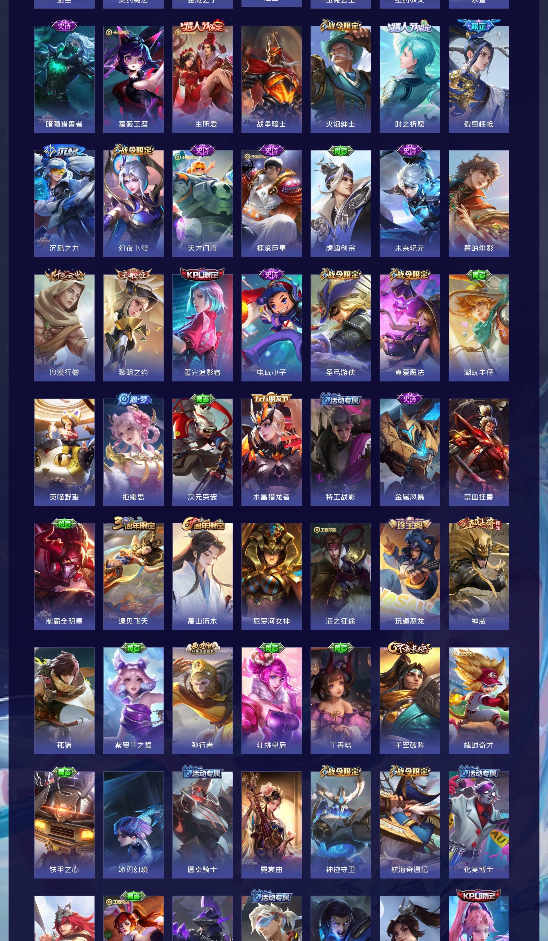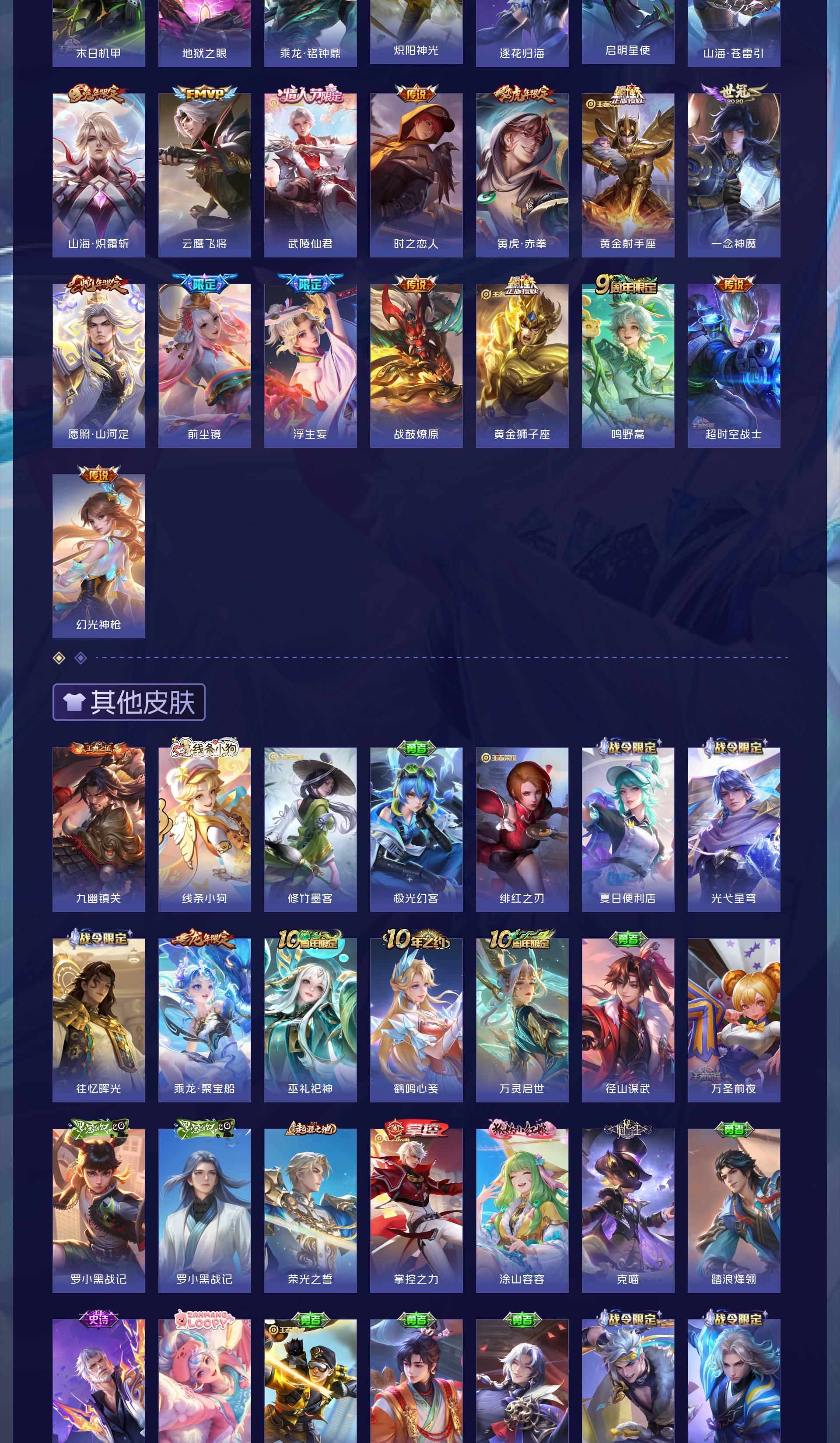V8 皮肤365 英雄128 永恒钻石 荣耀典藏2 无双皮肤2 珍品传说2 传说30 其他皮肤334