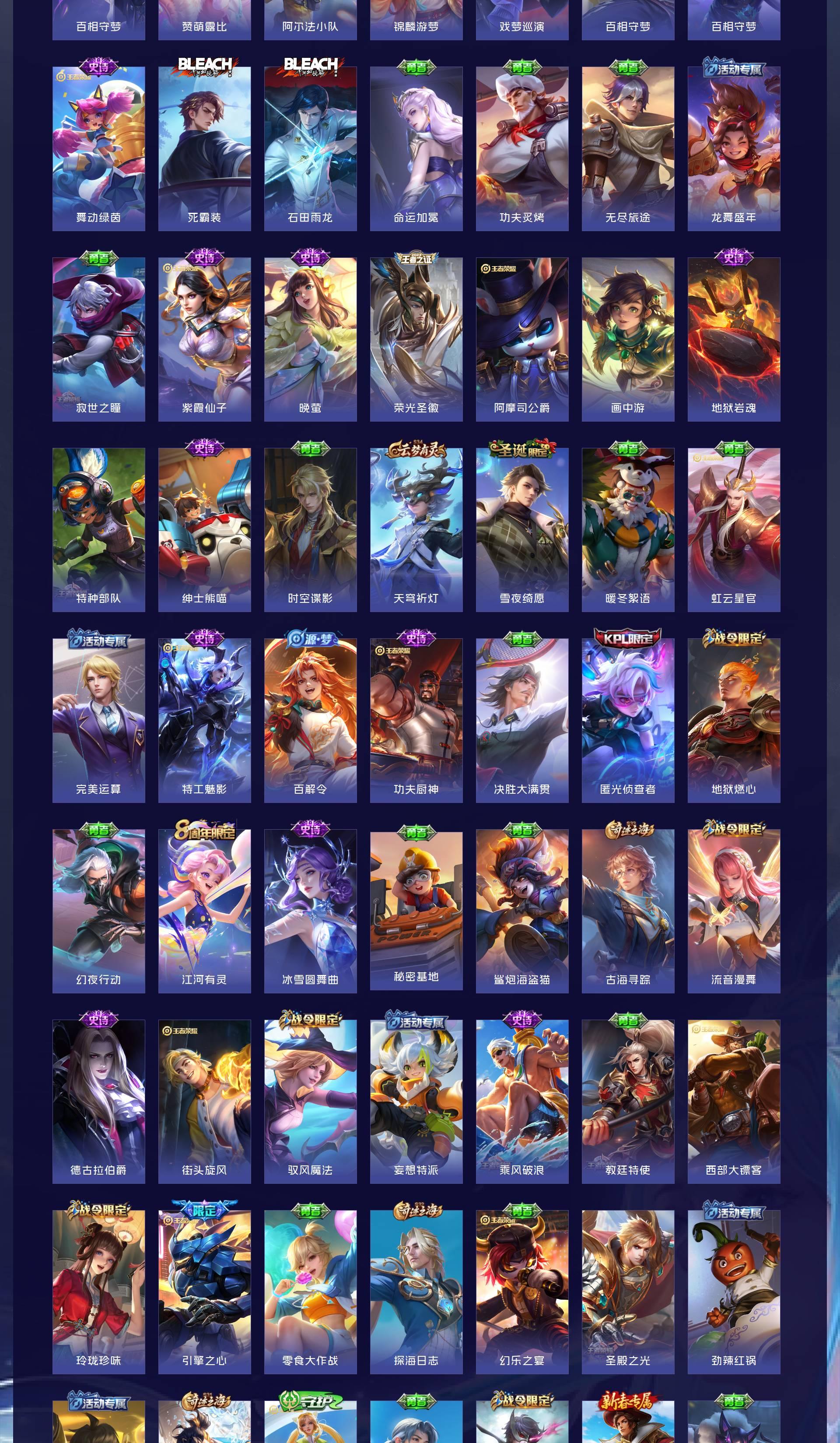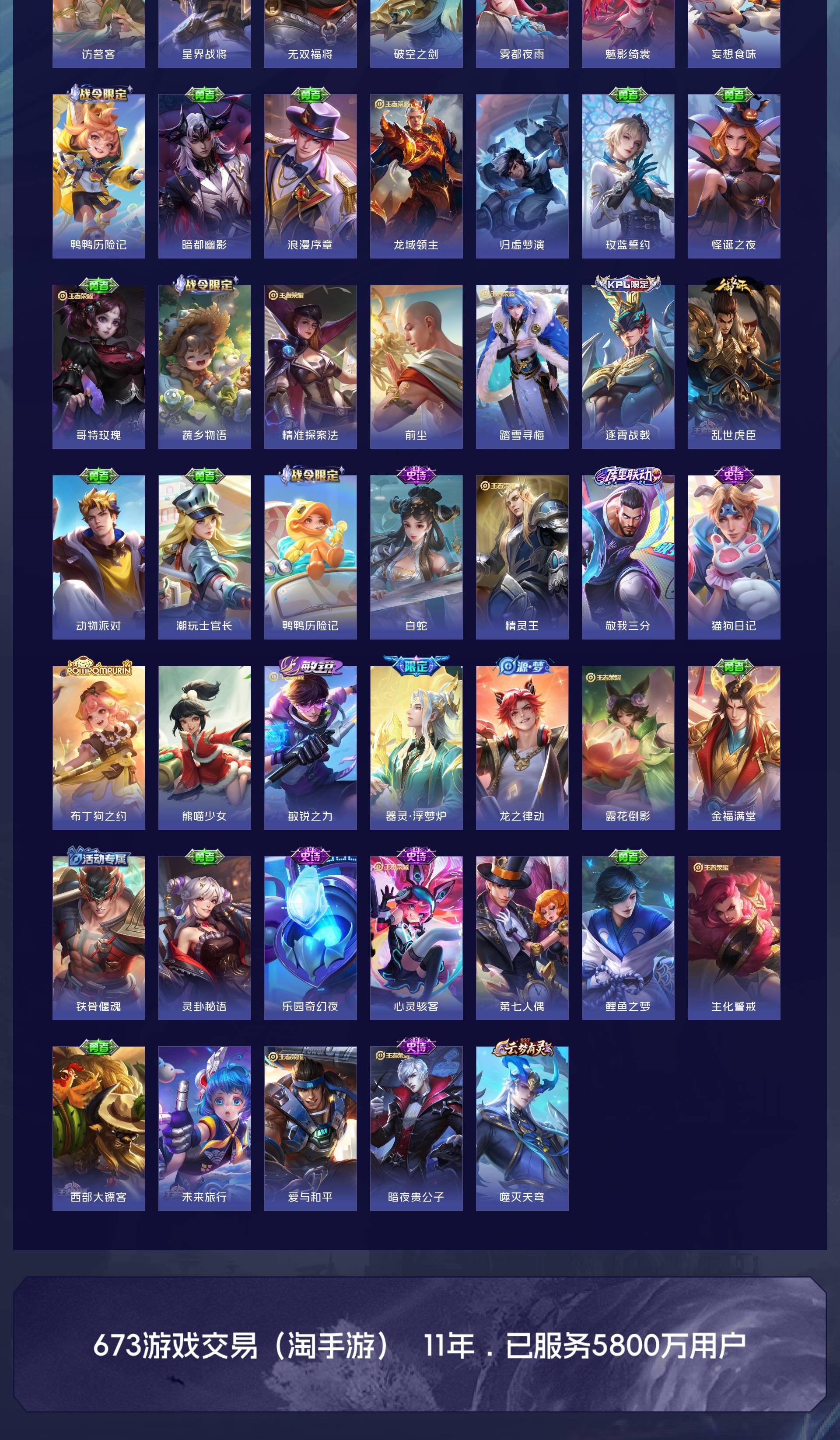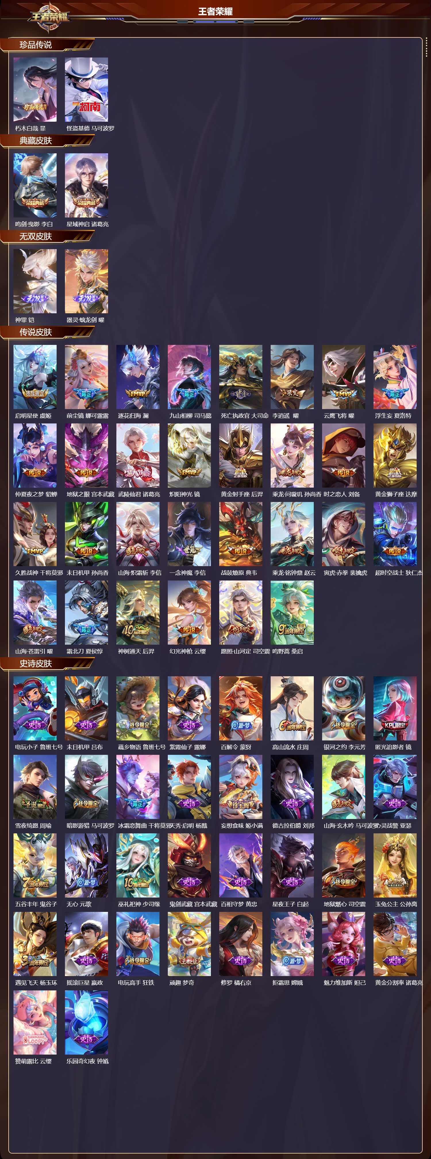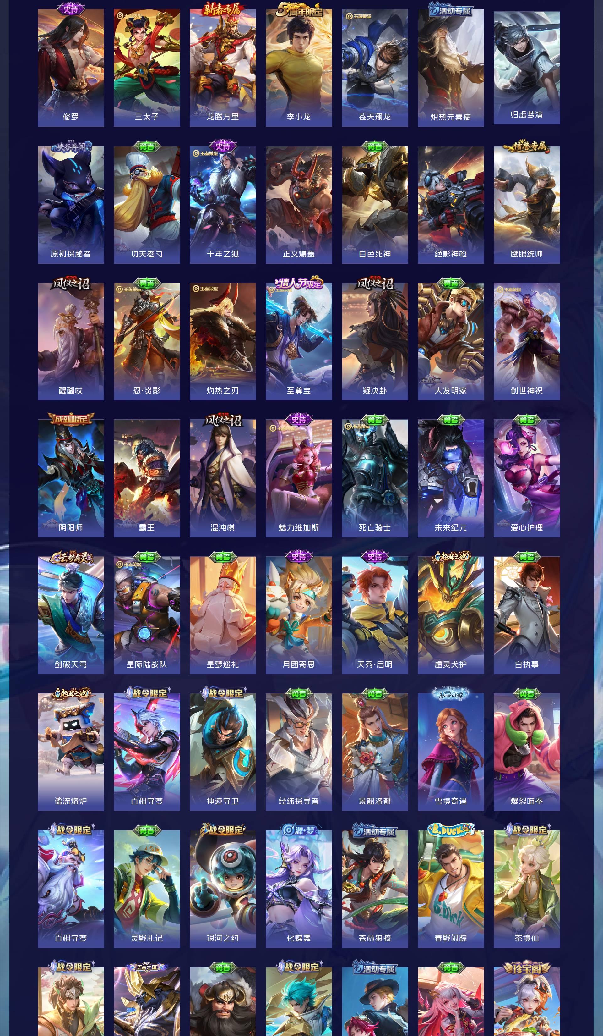 V8 皮肤365 英雄128 永恒钻石 荣耀典藏2 无双皮肤2 珍品传说2 传说30 其他皮肤334
