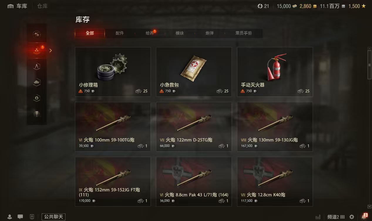银币1100万、债券15000、金币2850、6配件1辆9级特种车:幻影3辆10级银币车: