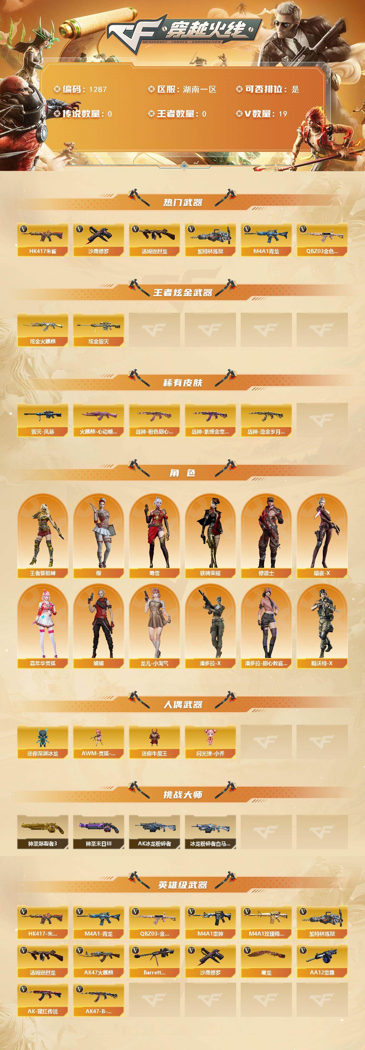 湖南一区-19V-0王者-2炫金【热门武器】:QBZ03-金色蔷薇,HK41