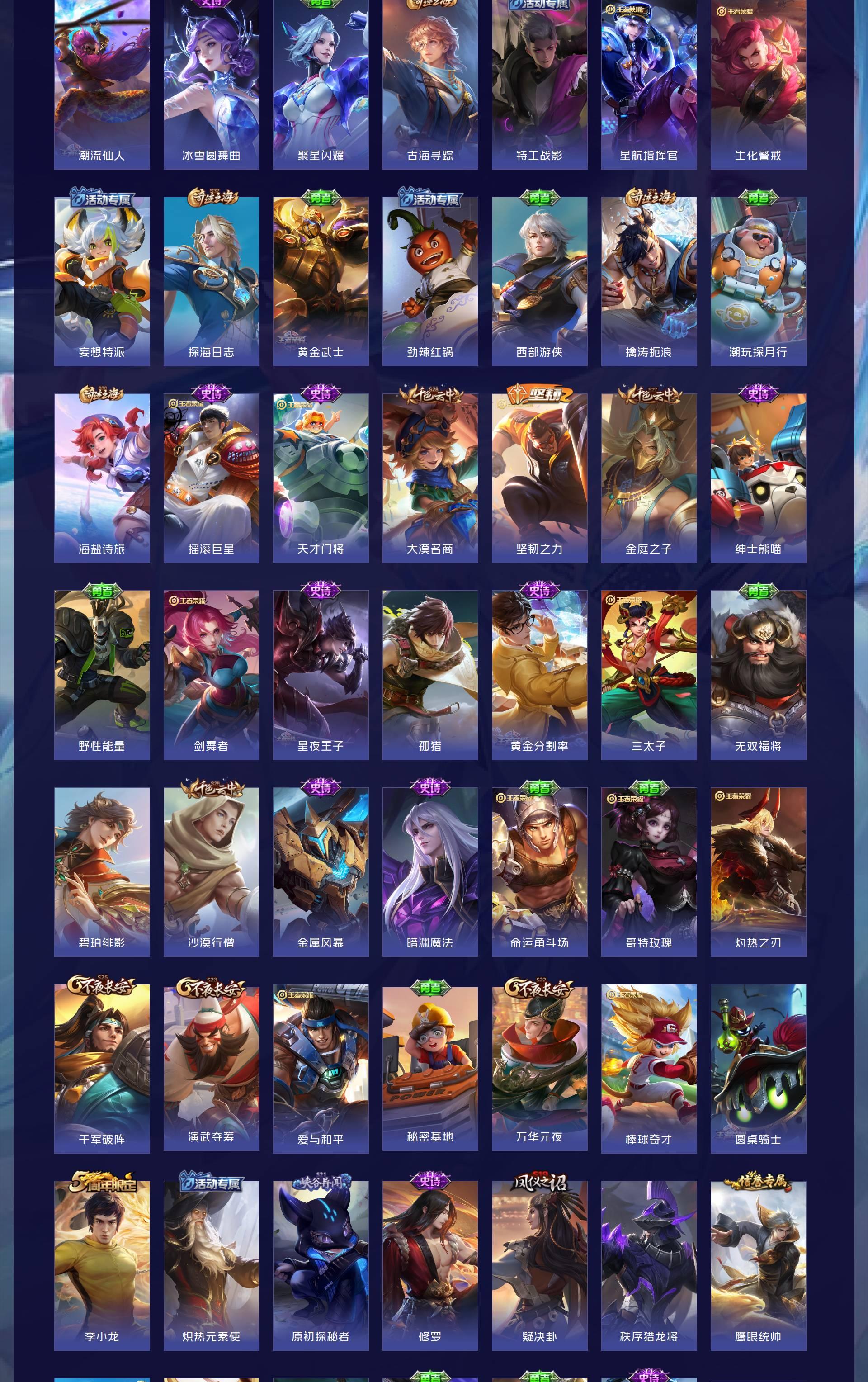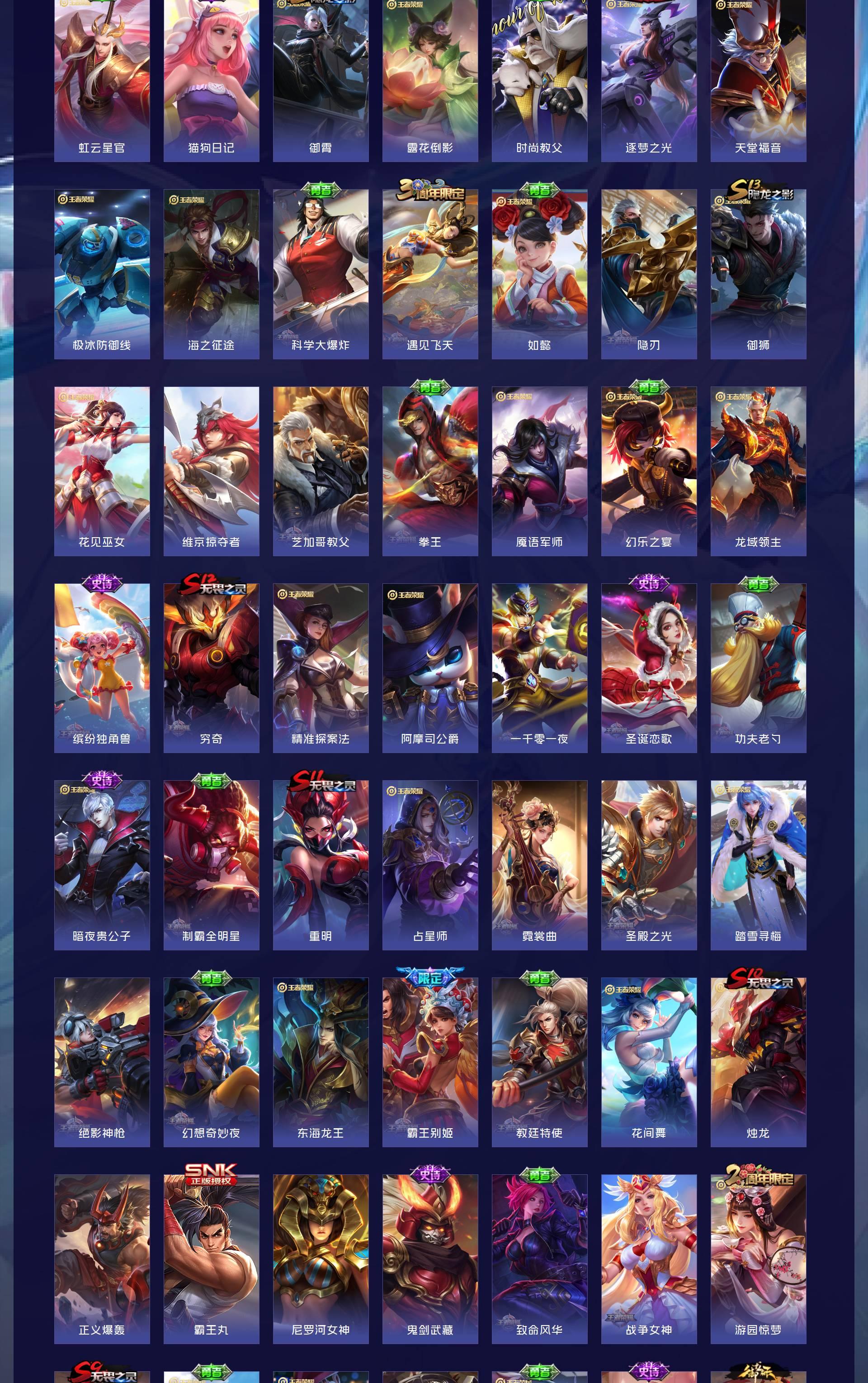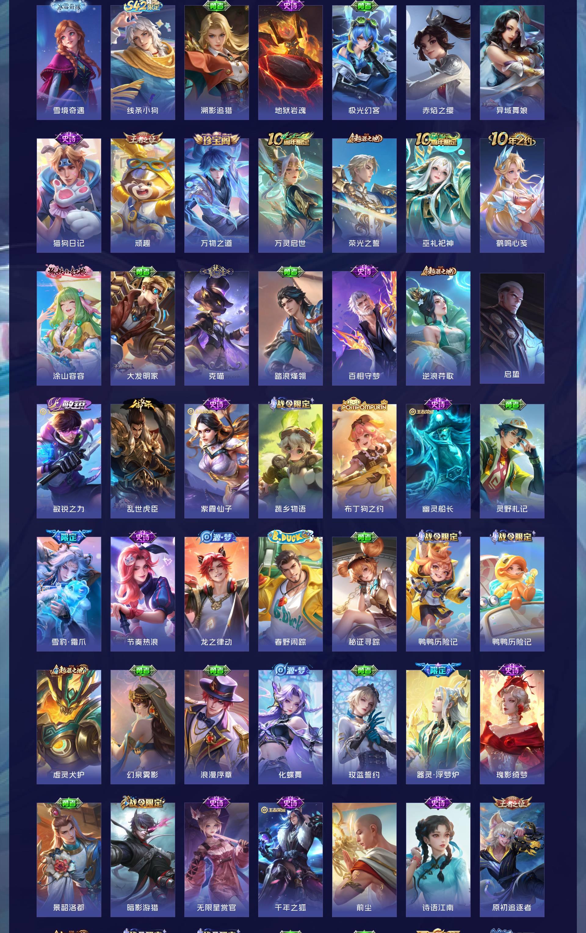 V8 皮肤296 英雄129 至尊星耀 荣耀典藏3 无双皮肤2 传说10 其他皮肤287
