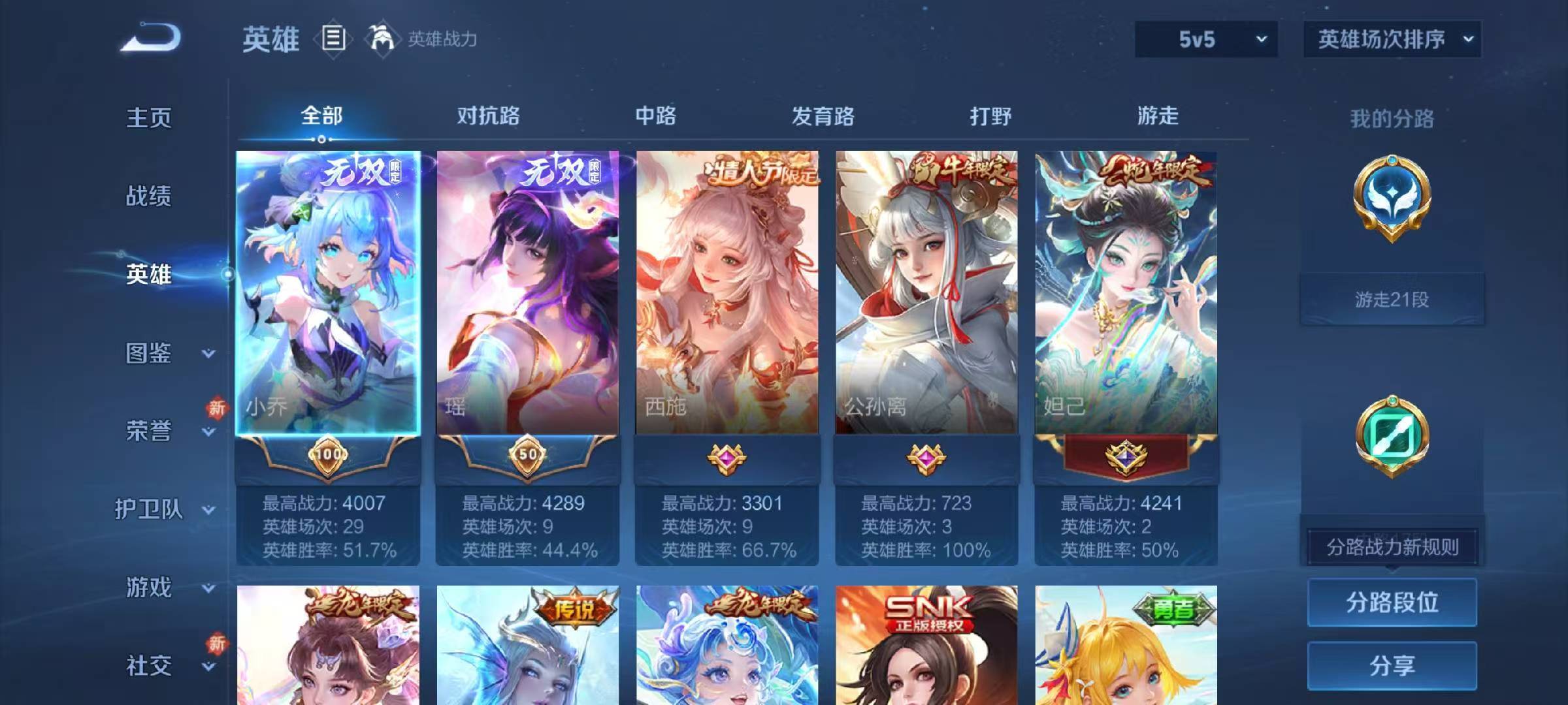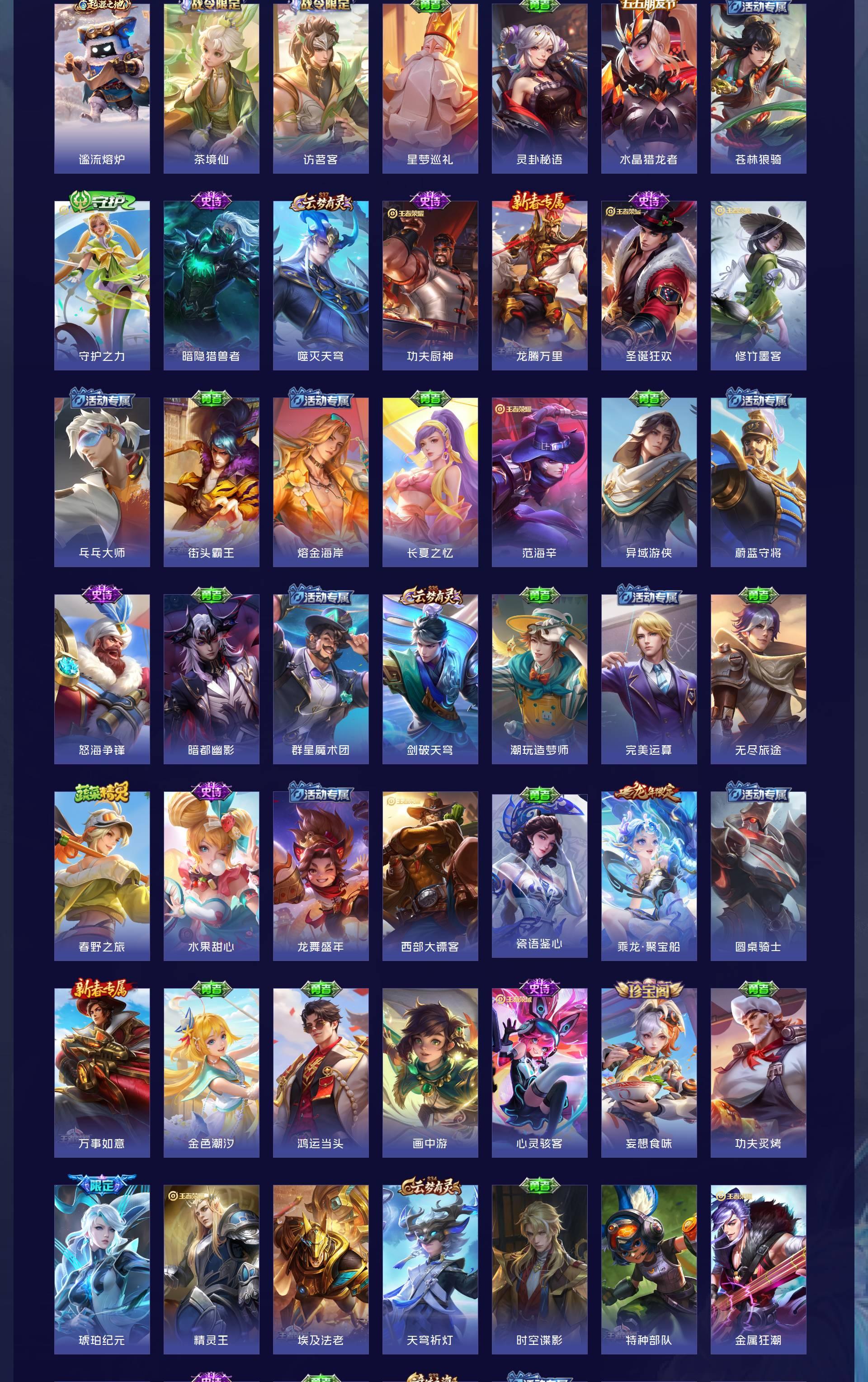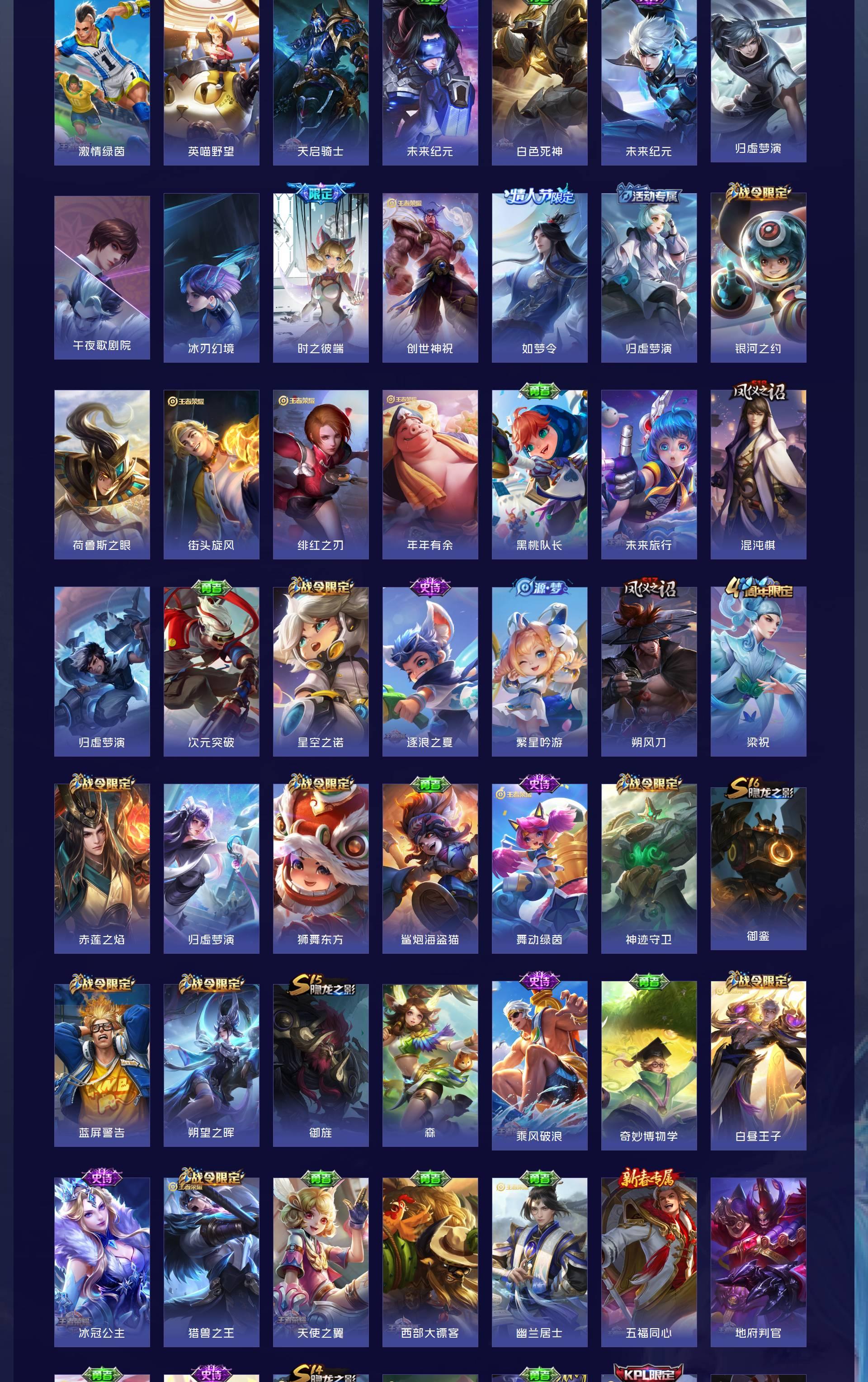 V8 皮肤296 英雄129 至尊星耀 荣耀典藏3 无双皮肤2 传说10 其他皮肤287