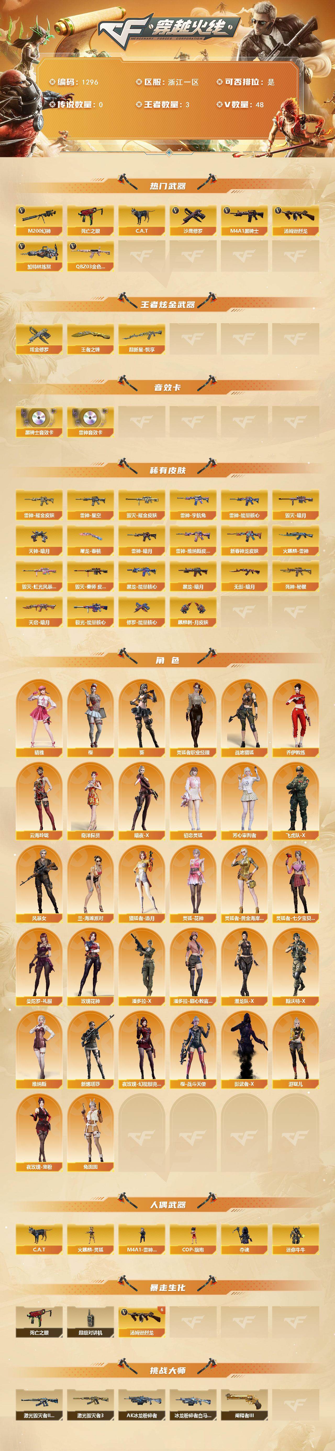 浙江一区-48V-3王者-2炫金【热门武器】:QBZ03-金色蔷薇,M200