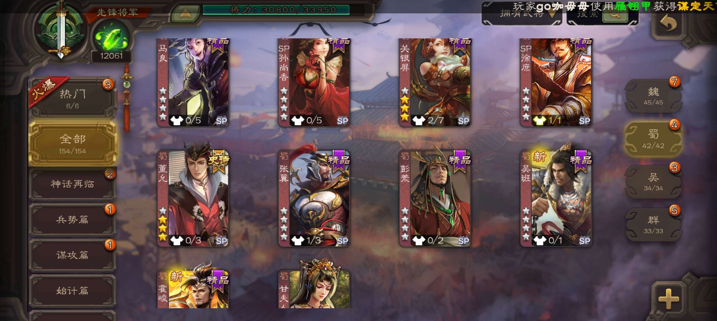 史诗武将数量: