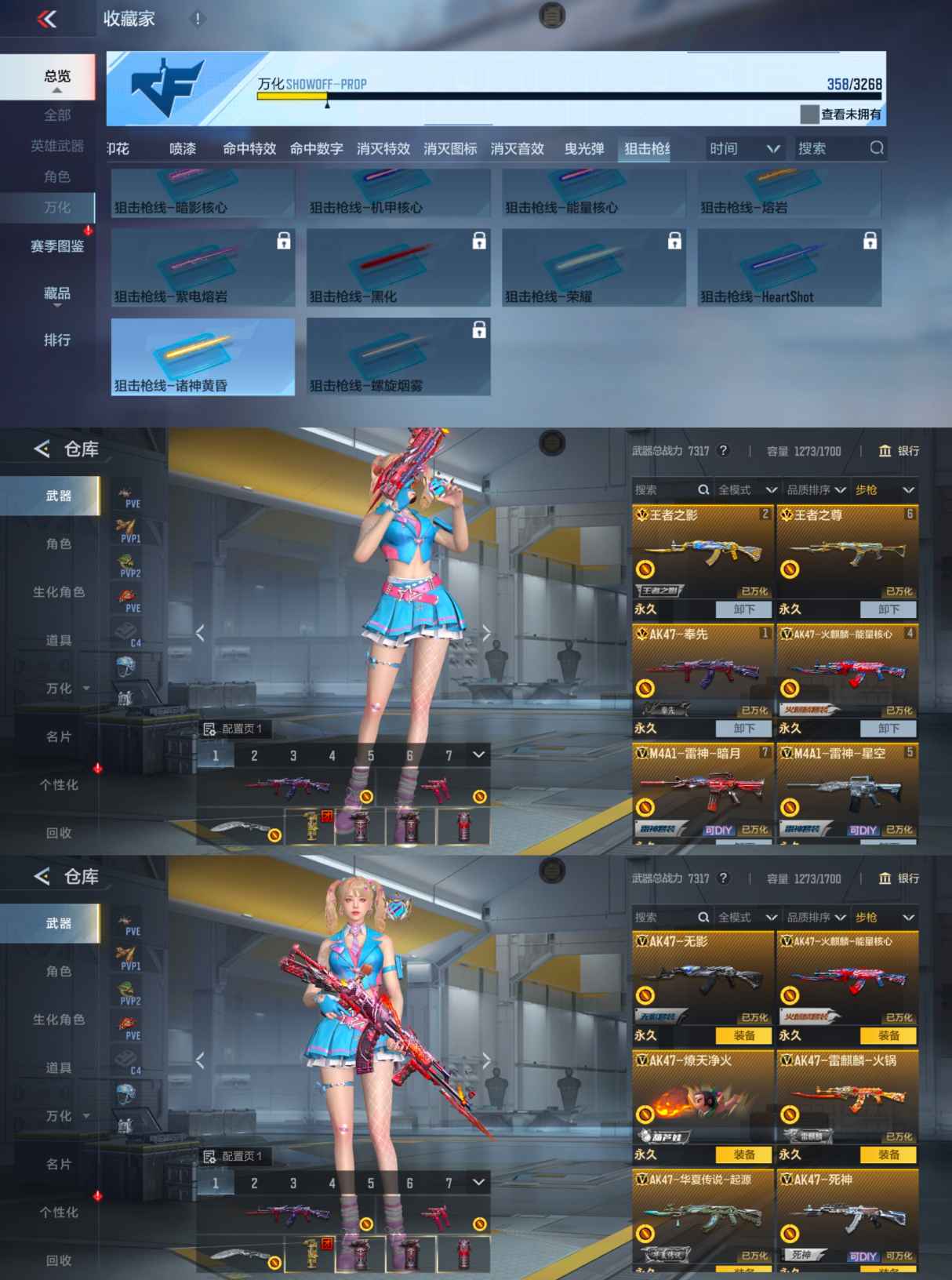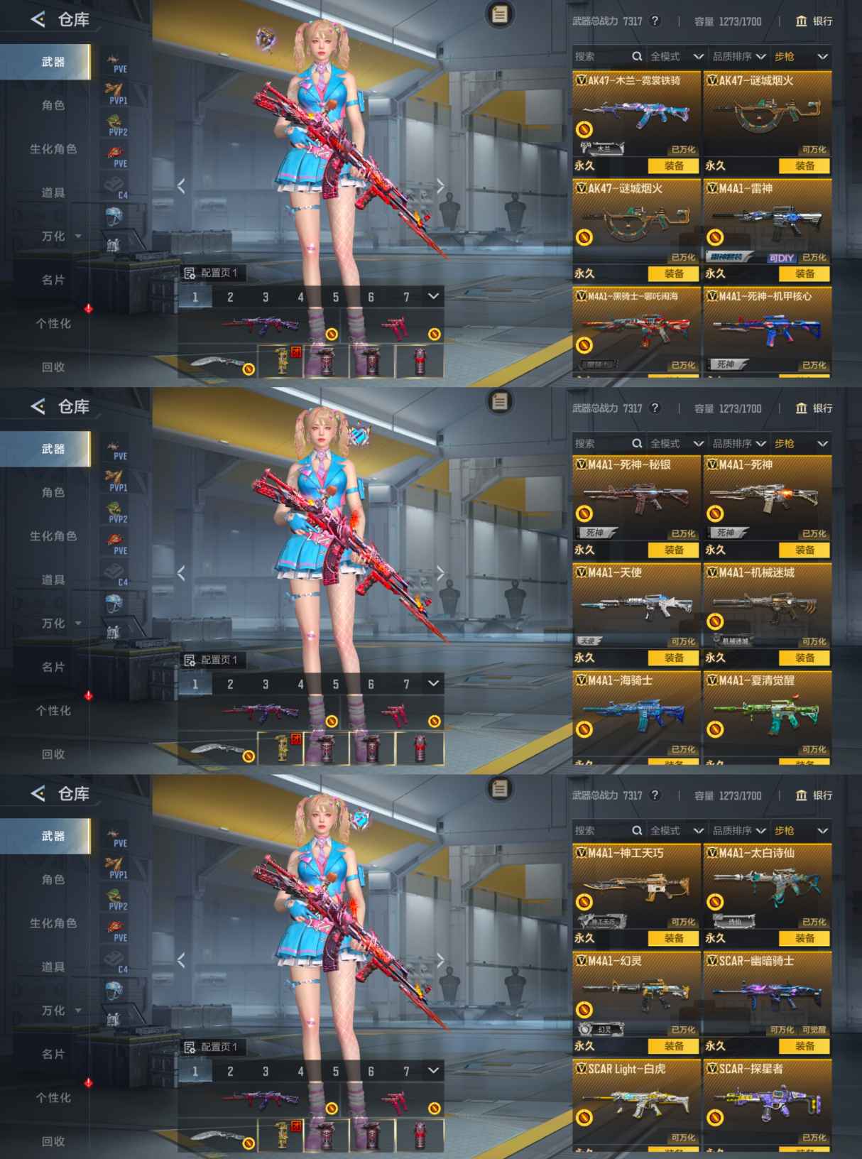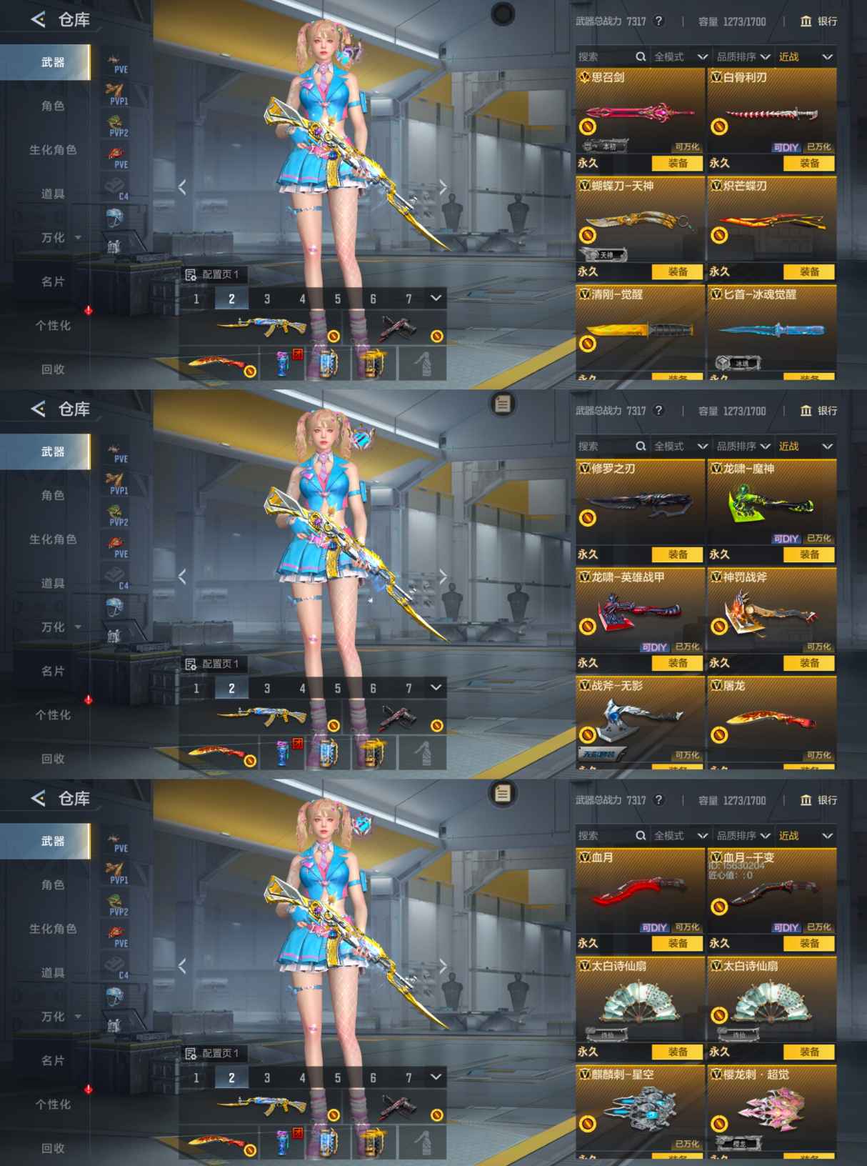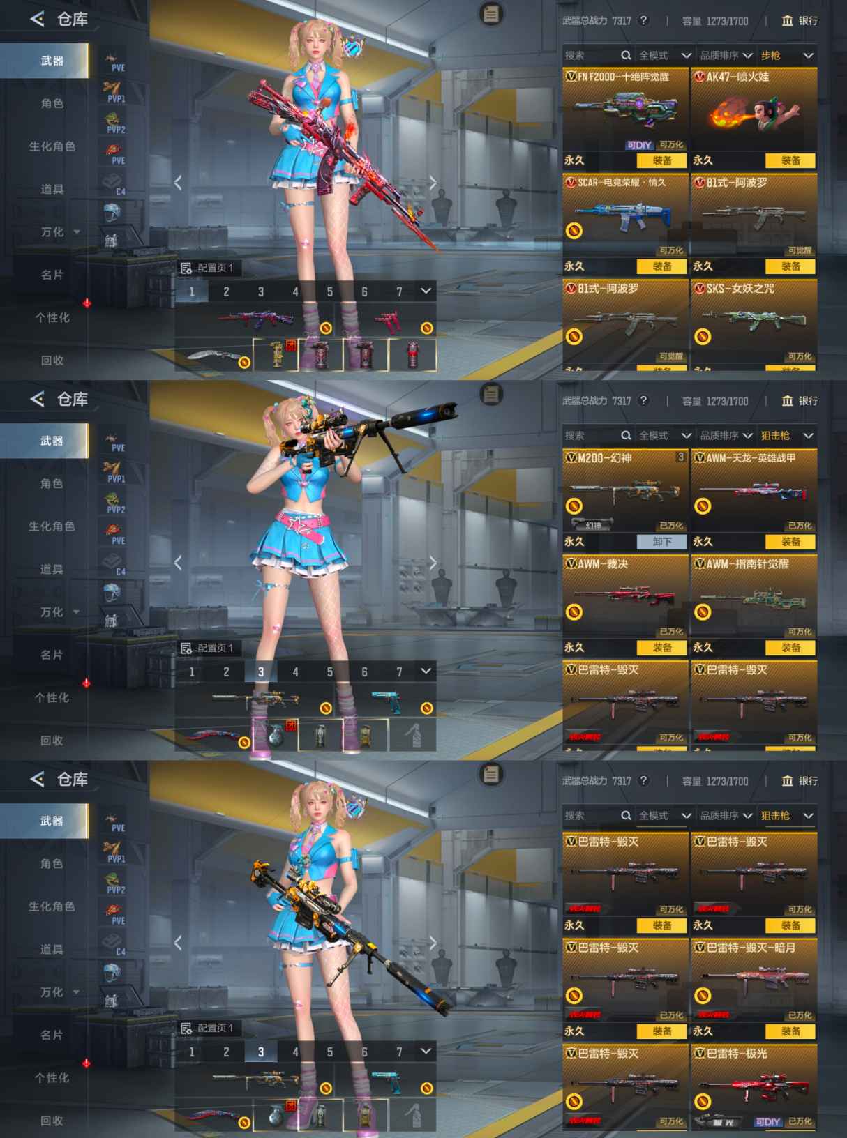 【金V角色】 萝拉 祝融夫人 祝融夫人 葵 【金V武器】 巴雷特-极光 M4A1-死神 巴雷特-极光 手雷-游骑兵 M4A1-死神 AK47-无影 沙鹰-宇航兔兔 龙啸 巴雷特-毁灭 M4A1-死神 KSG-钟馗觉醒 AK47-雷麒麟 烟雾弹-星际宇航 QCW05-变形金刚·大黄蜂 M4A1-雷神 M4A1-