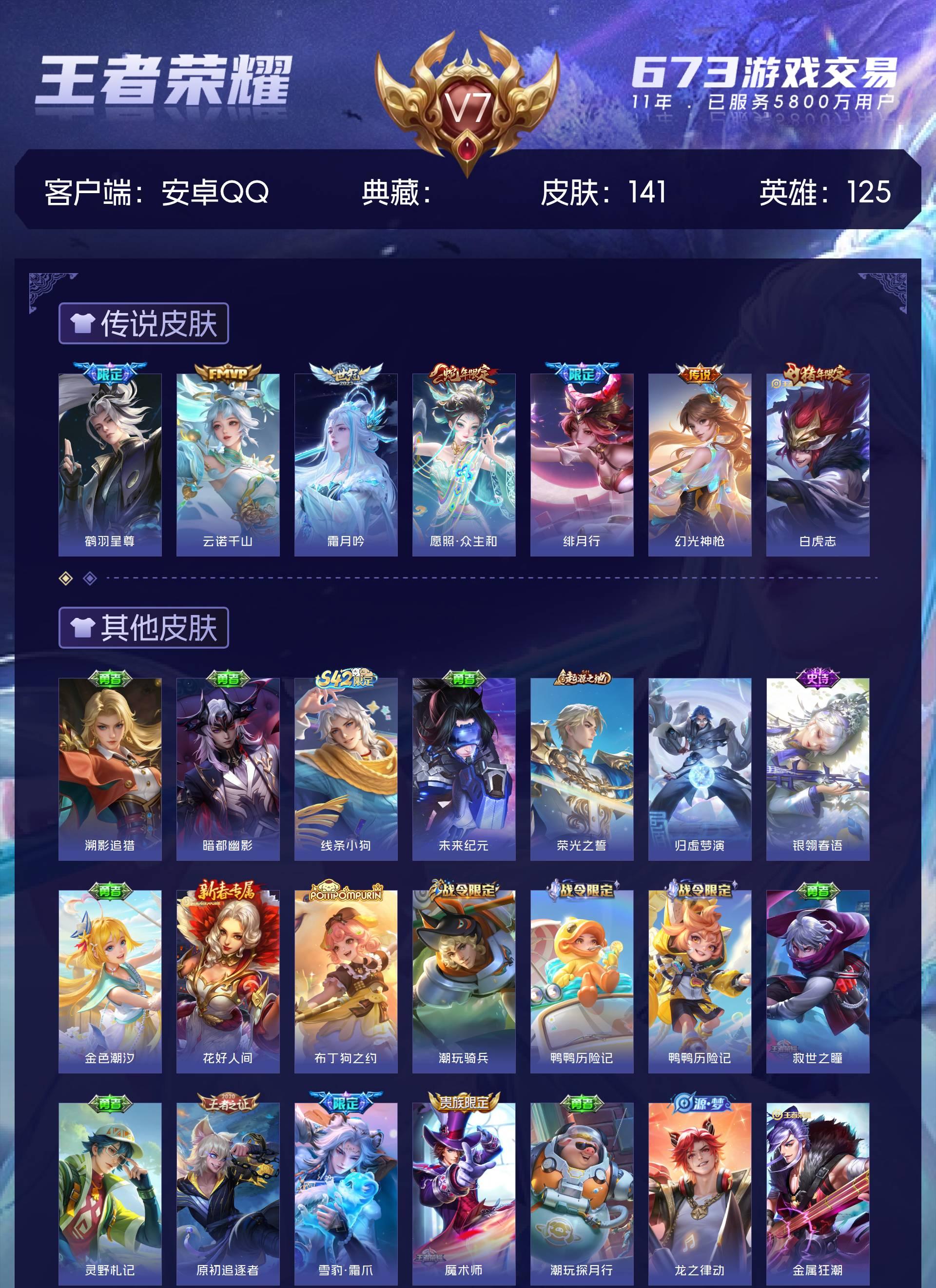 V7 皮肤141 英雄125 至尊星耀 传说7 其他皮肤139