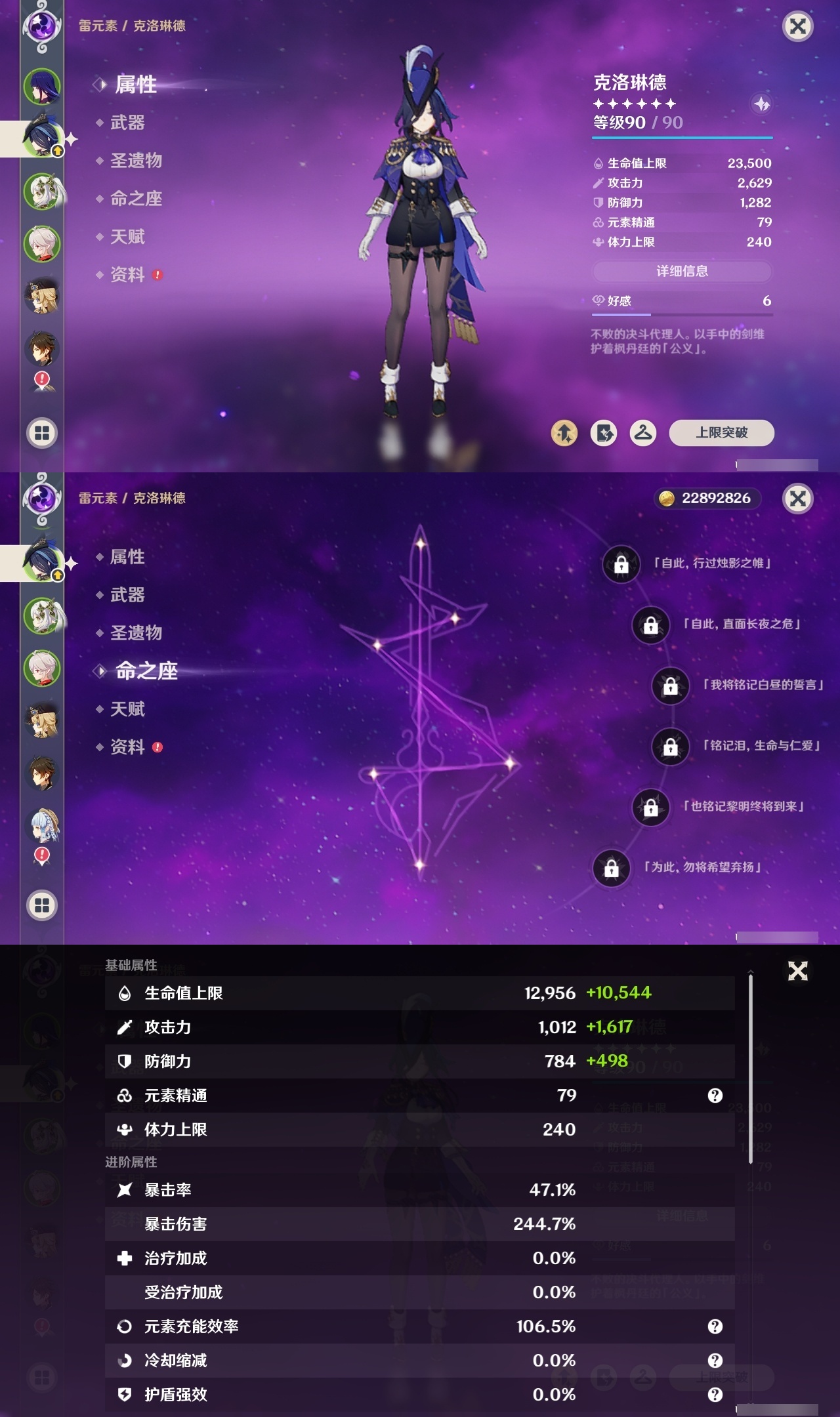 37黄夜兰克洛琳德2命雷神带专武等 19332 邮箱: 未绑定 总黄数: 37 冒险等级: 59 4命金色角色: 四命迪卢克 2命金色角色: 二命刻晴,二命雷电将军 1命金色角色: 一命琴,一命妮露 0命金色角色: 枫原万叶,神里绫华,七七,钟离,珊瑚宫心海,夜兰,提纳里,纳西妲,迪希雅,娜维娅,闲云,阿蕾奇诺,克洛琳德 拥有武器: 天空之翼,四风原典,磐岩结绿,薙草之稻光,若水,圣显之钥,裁叶萃
