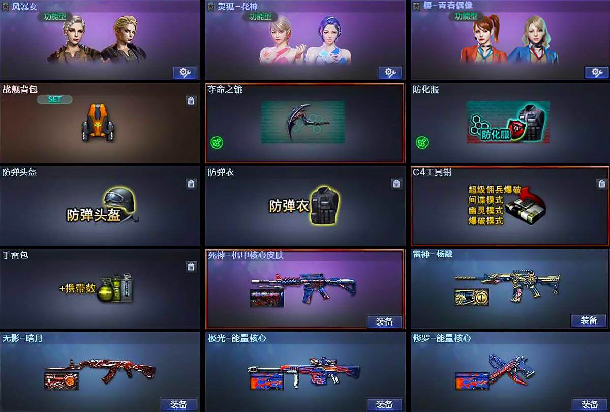 【皮肤】:雷神-杨戬,无影-暗月,死神-机甲核心皮肤,极光-能量核心,修罗-能量核心