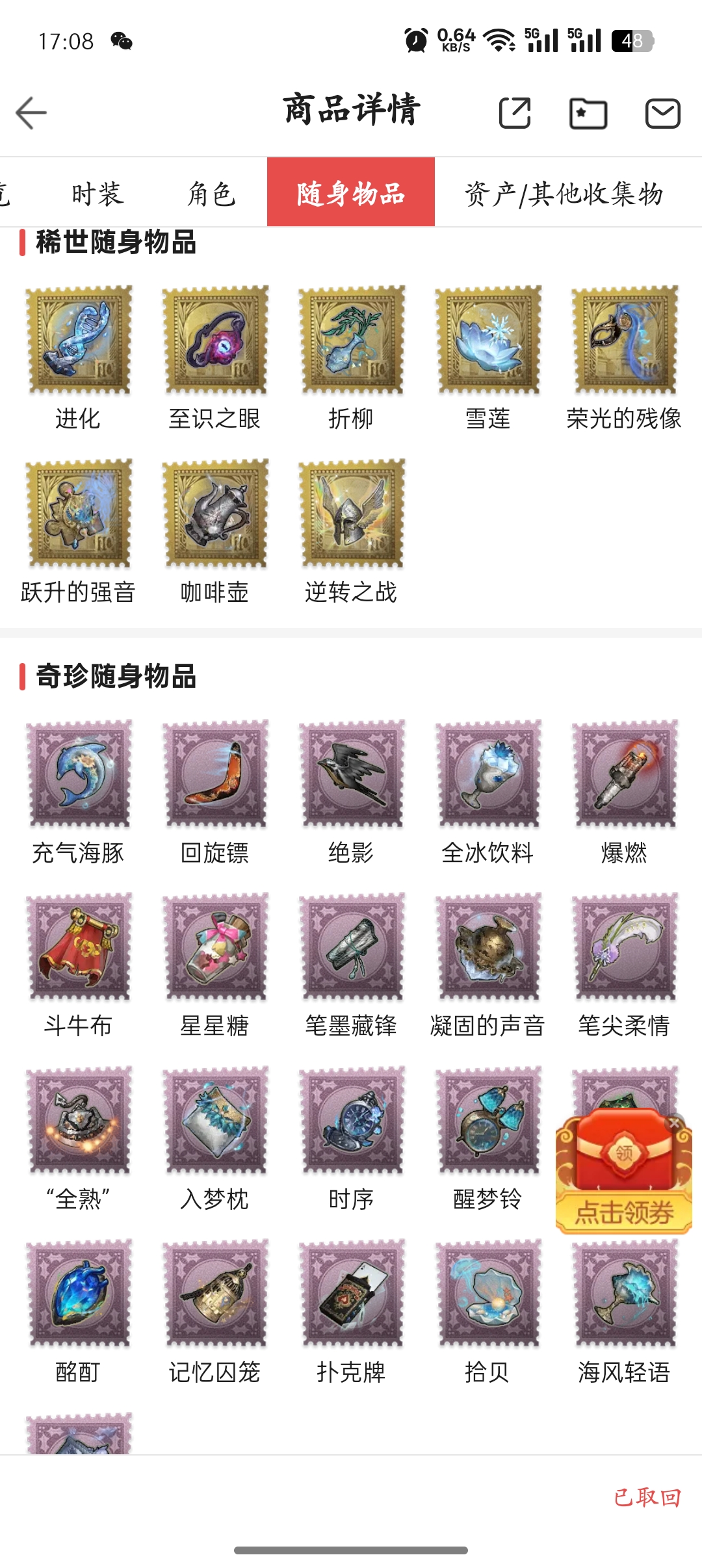 随身物品: