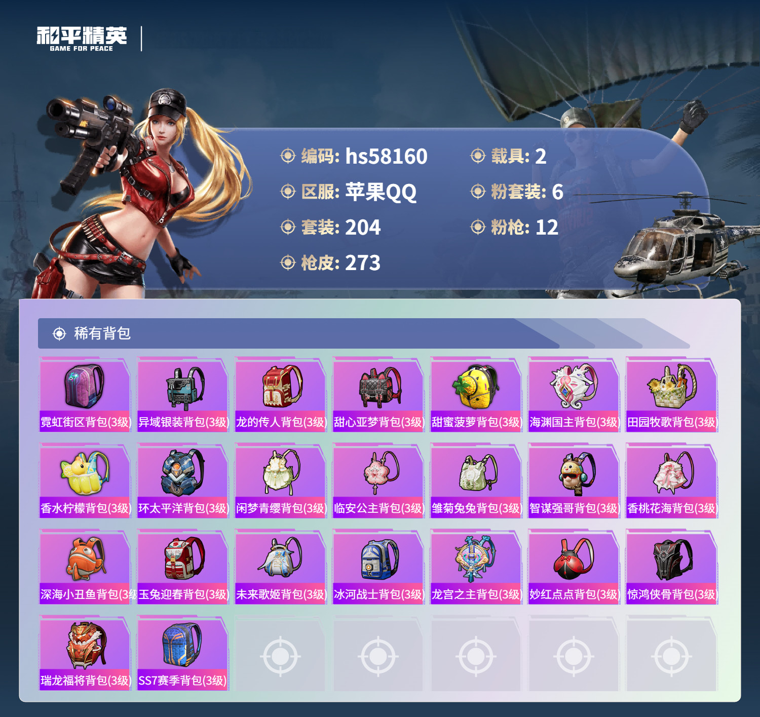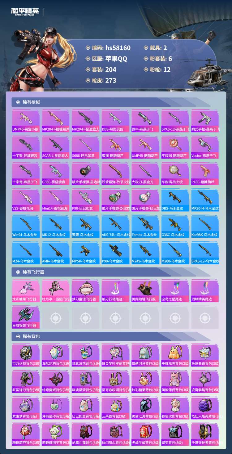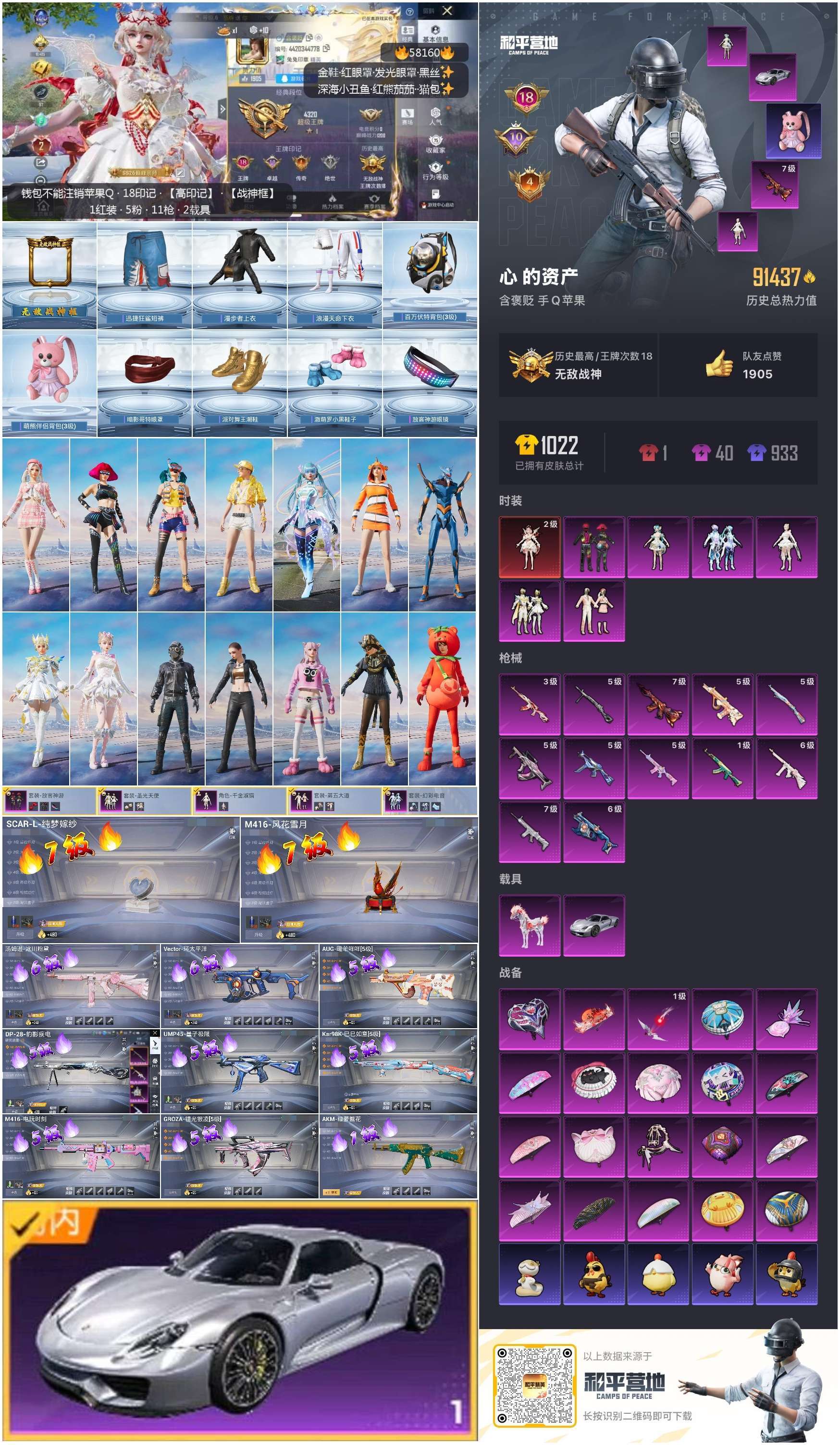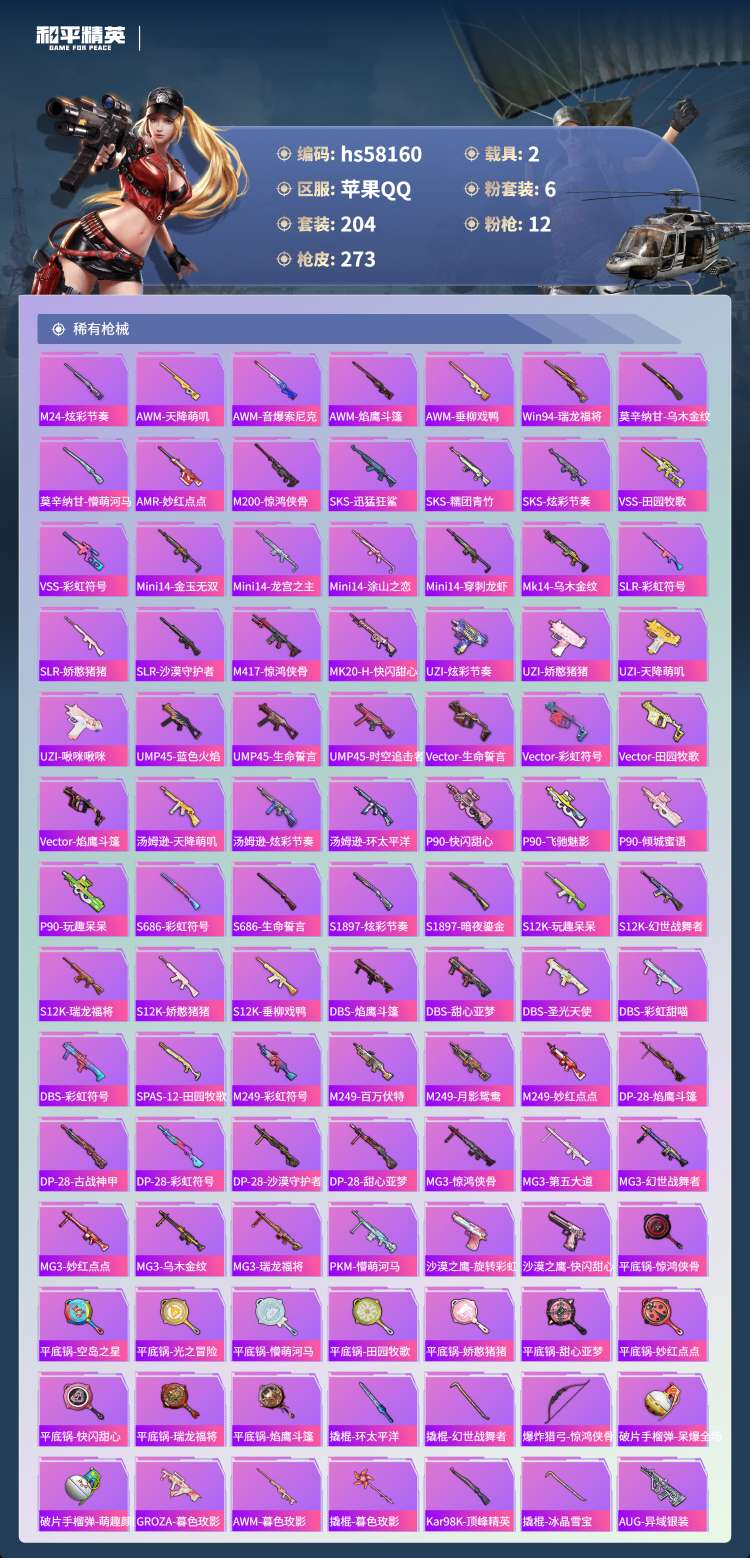 hs58160 苹果手Q-18王牌印记-有战神框-1红装-6粉装-12特效枪-2载具-91437热力