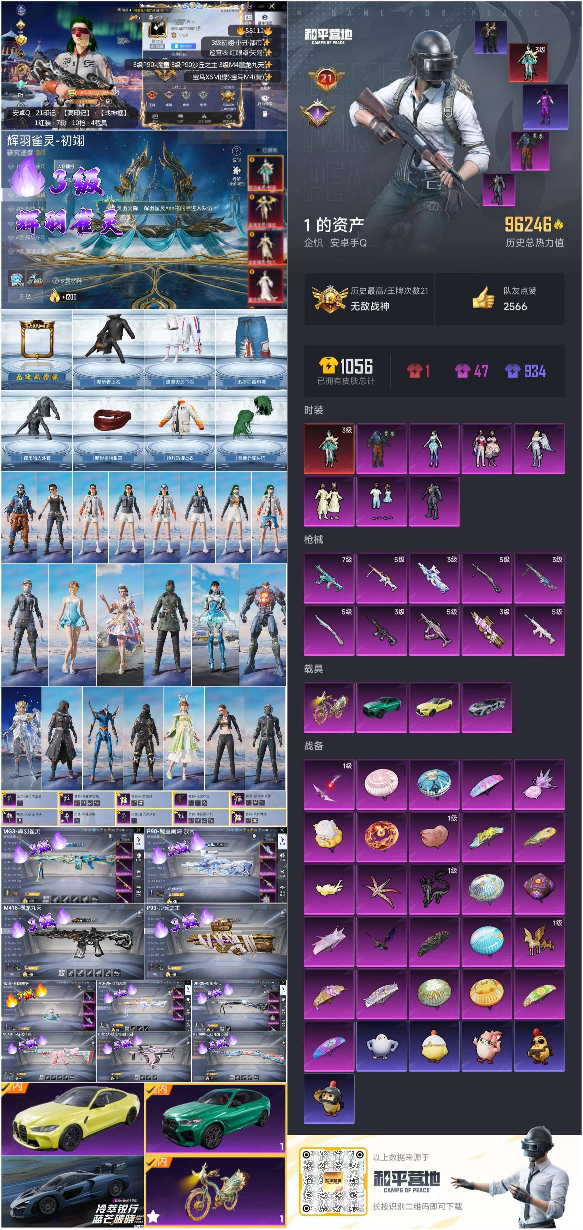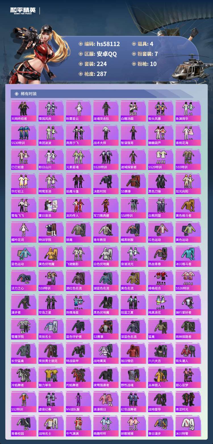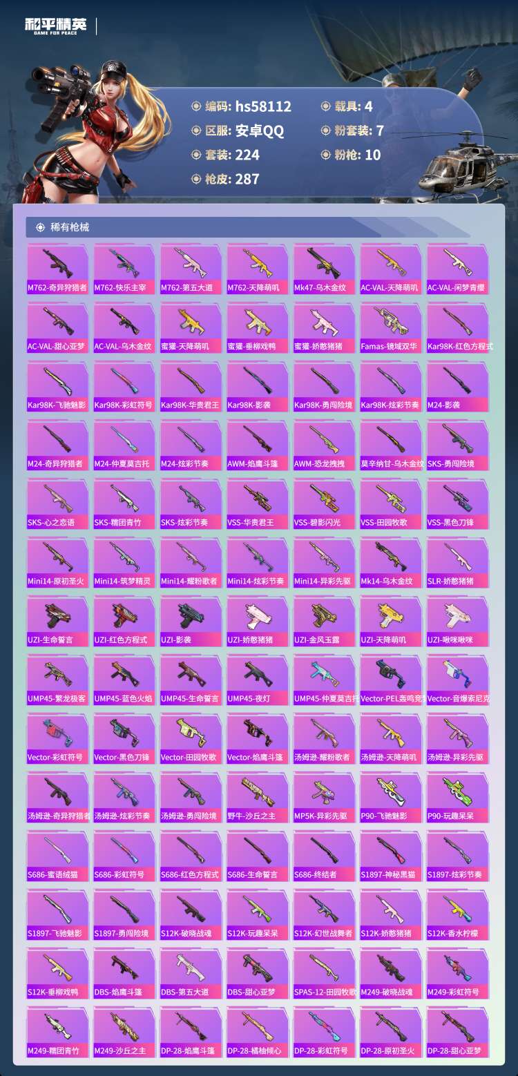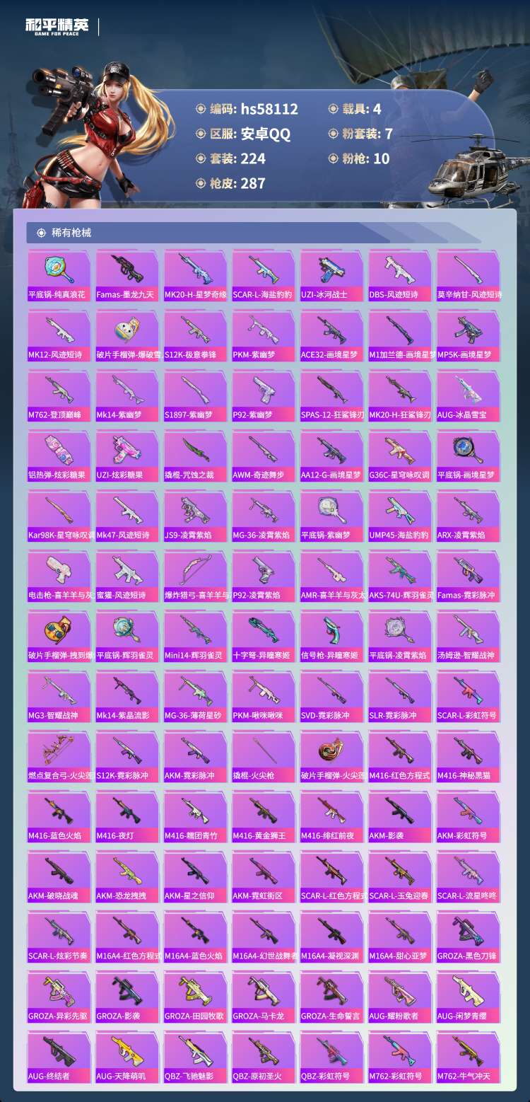 hs58112 安卓手Q-21王牌印记-有战神框-1红装-7粉装-10特效枪-4载具-96246热力