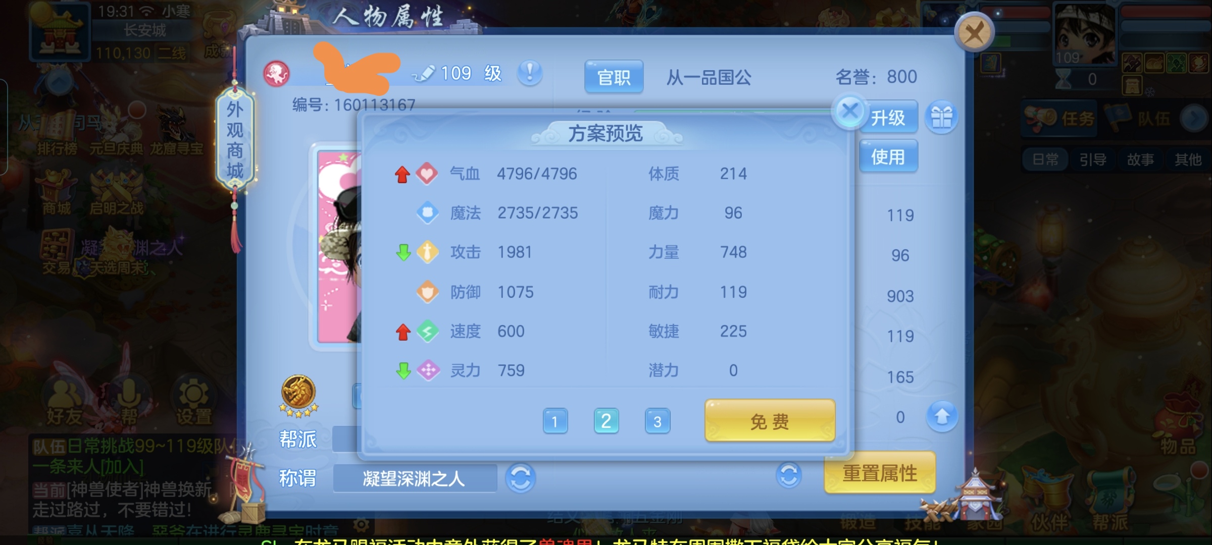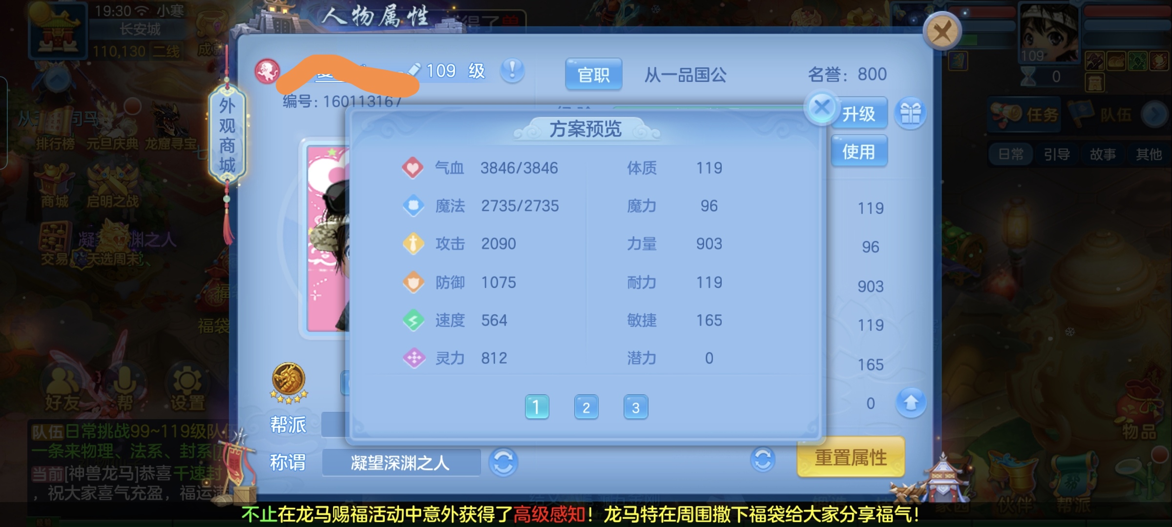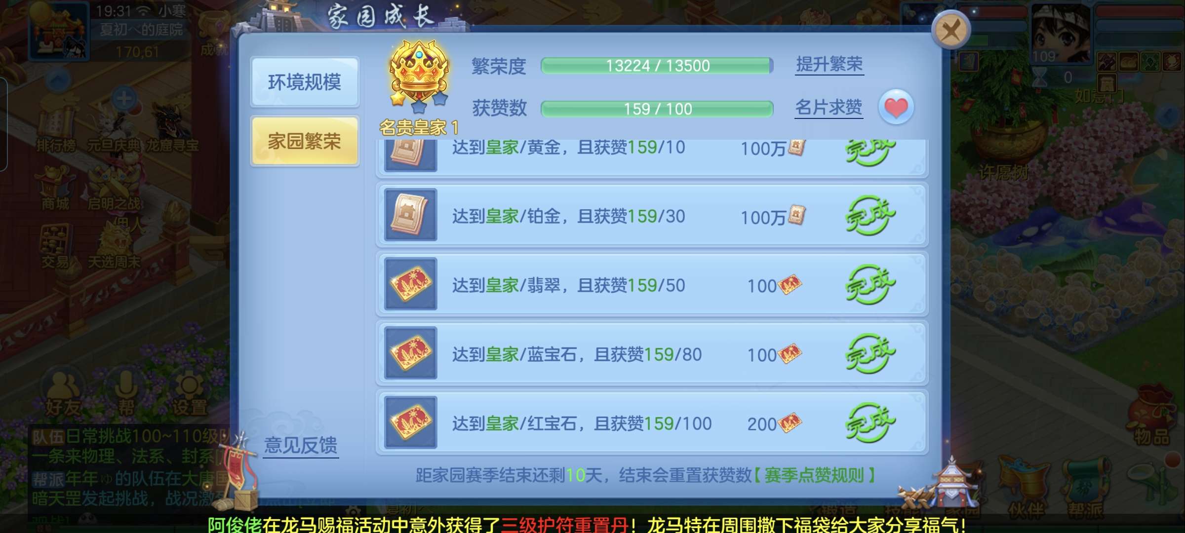 4神兽,3套人物属性,2套坐骑属性,2孩子(天策,辅助),12段,皇家庄园。