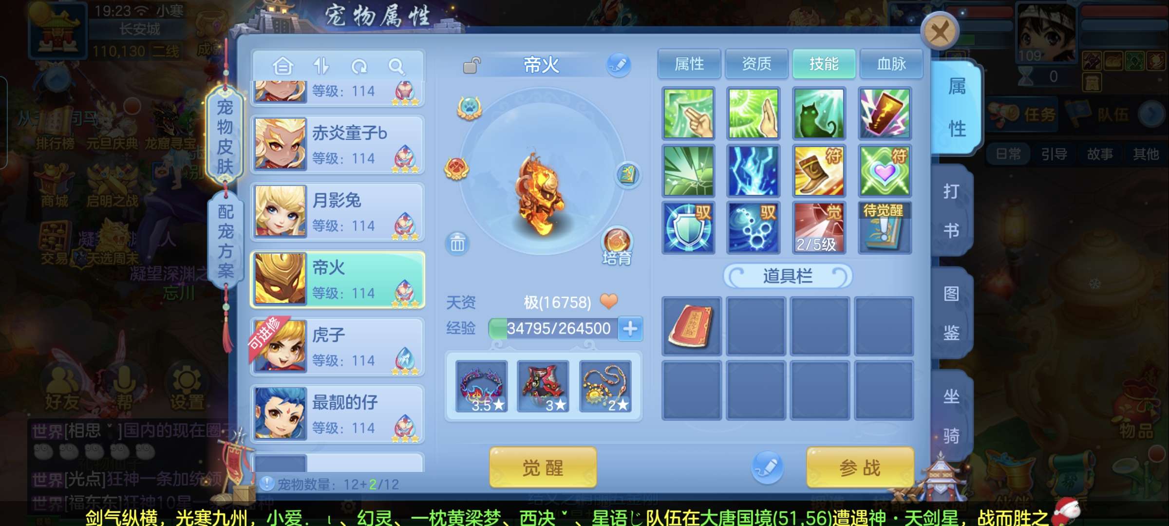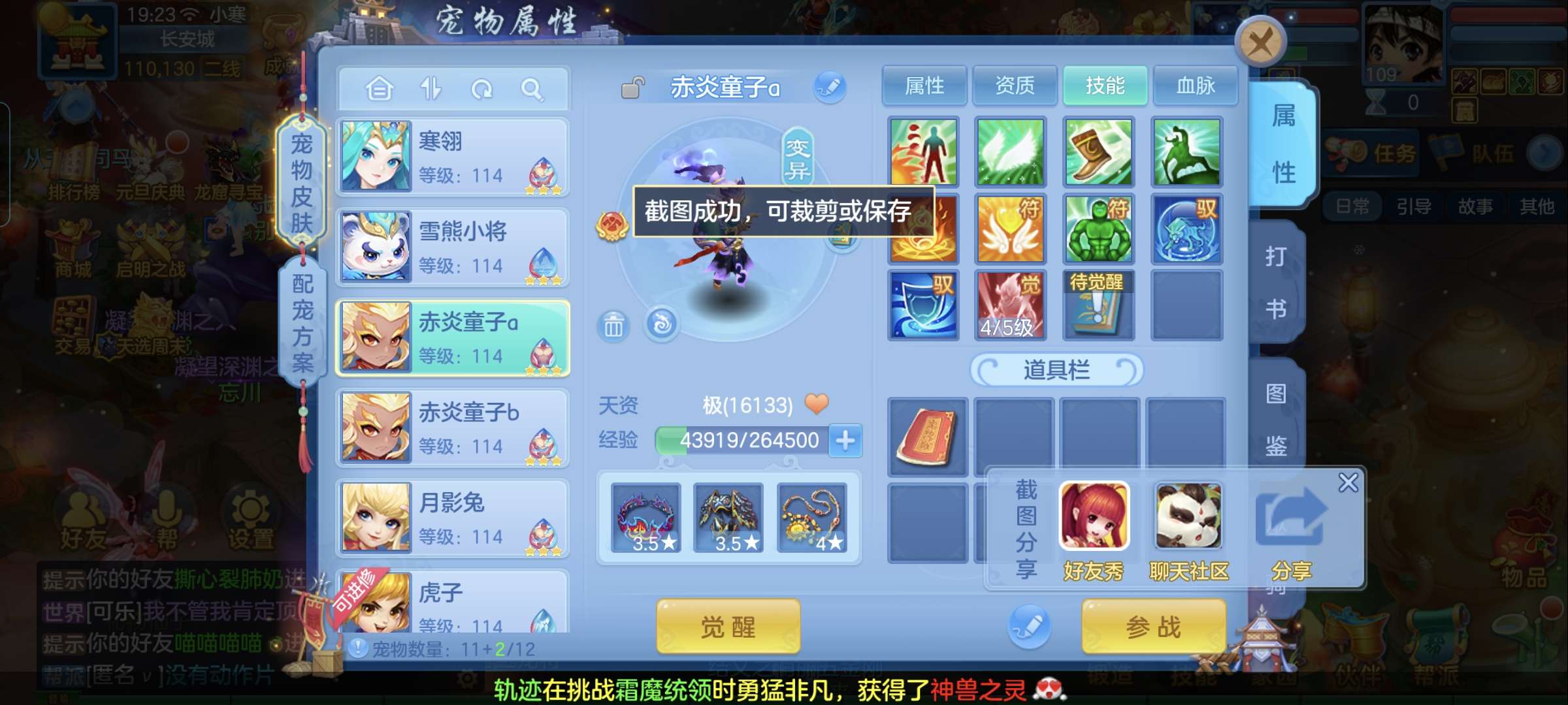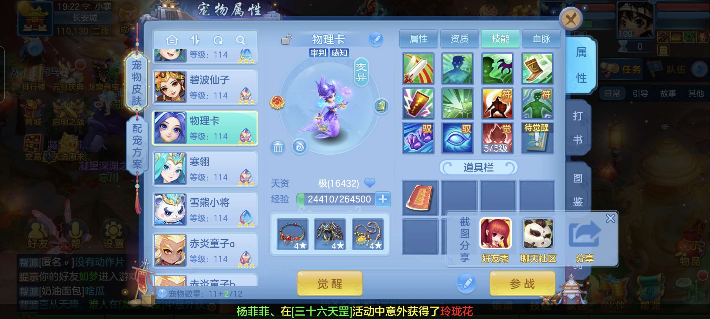 4神兽,3套人物属性,2套坐骑属性,2孩子(天策,辅助),12段,皇家庄园。