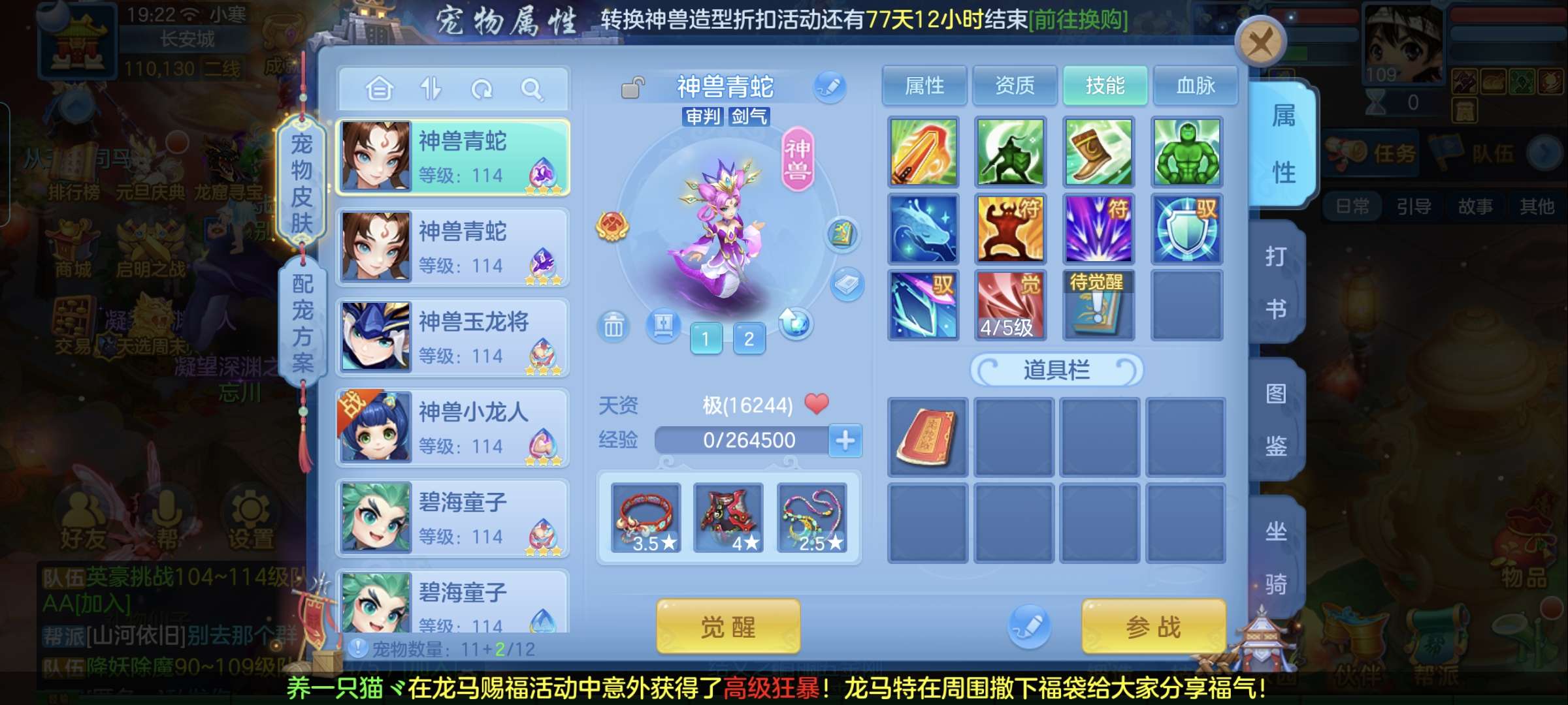 09万兽,4神兽(3蛇1龙),7天换绑