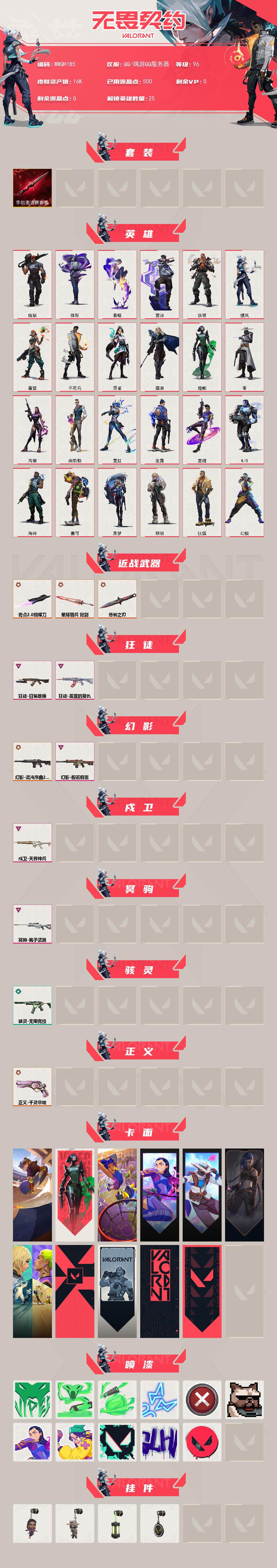 【WWQH185】终极*6/卓越*5/皮肤*42/等级*96/段位:黄金/无畏契约季前邀请赛套装/幻棱/炼狱/维斯/暮蝶/钛狐/壹决/铁臂/捷风/雷兹/不死鸟/贤者/猎枭/蝰蛇/零/芮娜/尚勃勒/霓虹/夜露/星礈/K/O/海神/盖可/黑梦/钢锁/近战武器-无畏契约季前邀请赛 悲悯之刃/近战武器-奇点//2.0 蝴蝶刀/近战武器-星际猎兵 短剑/狂徒-盖亚的复仇/狂徒-日冕雄师/幻影-混沌序曲//2.0/幻影-般若假面/戍卫-天界神兵/冥驹-离子武器/骇灵-无限竞技/正义-千灵华绽/Clutch