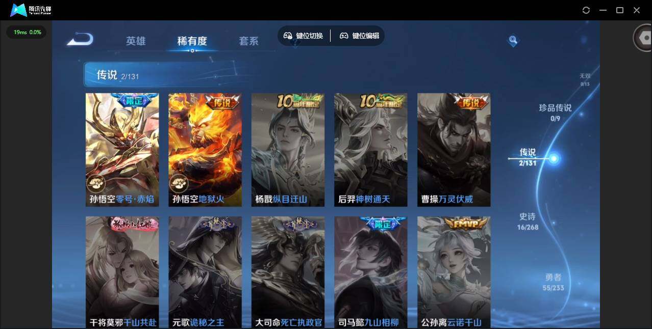 实名: 可修改 贵族等级: V5 英雄数: 123 皮肤数: 89 传说皮: