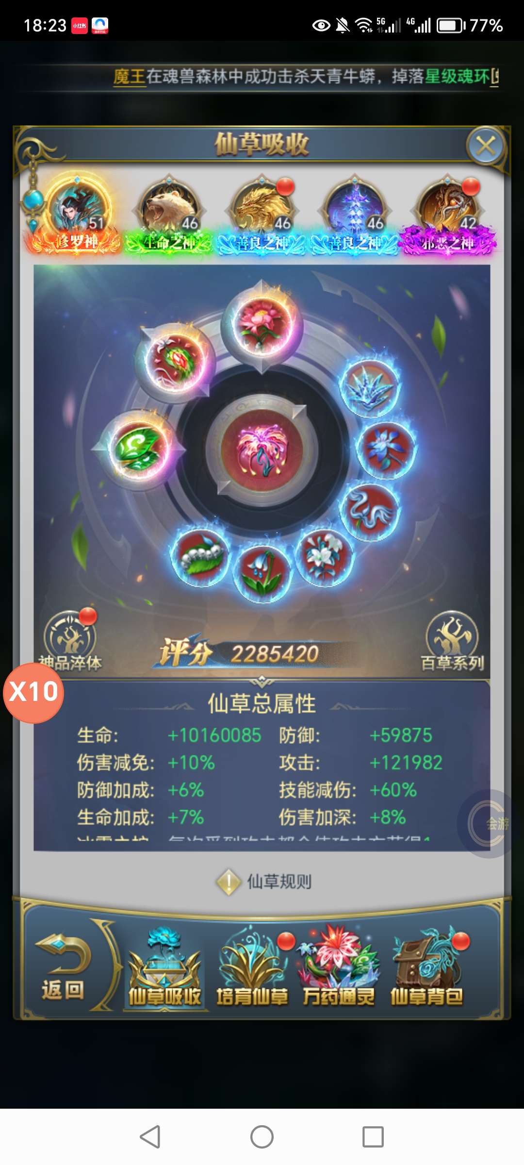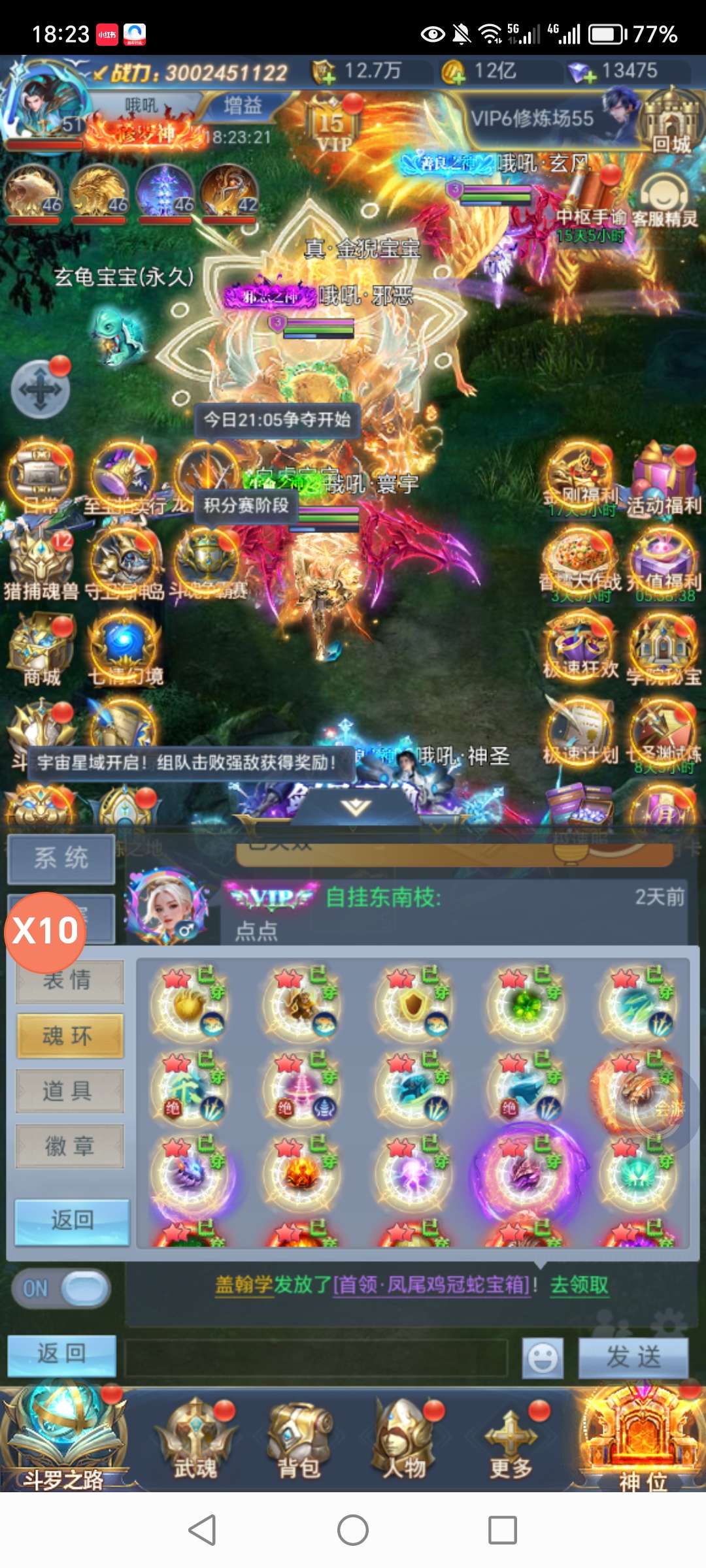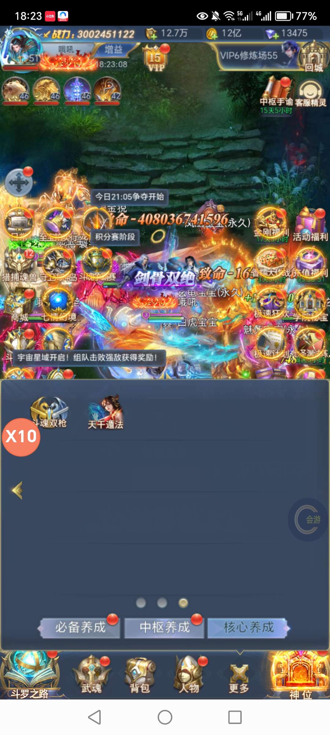 续充自助26折,该有的都有,中枢吃半图,凶兽没断过,真声龙魂魂灵草皇五套,法环圣融术两套。三十亿