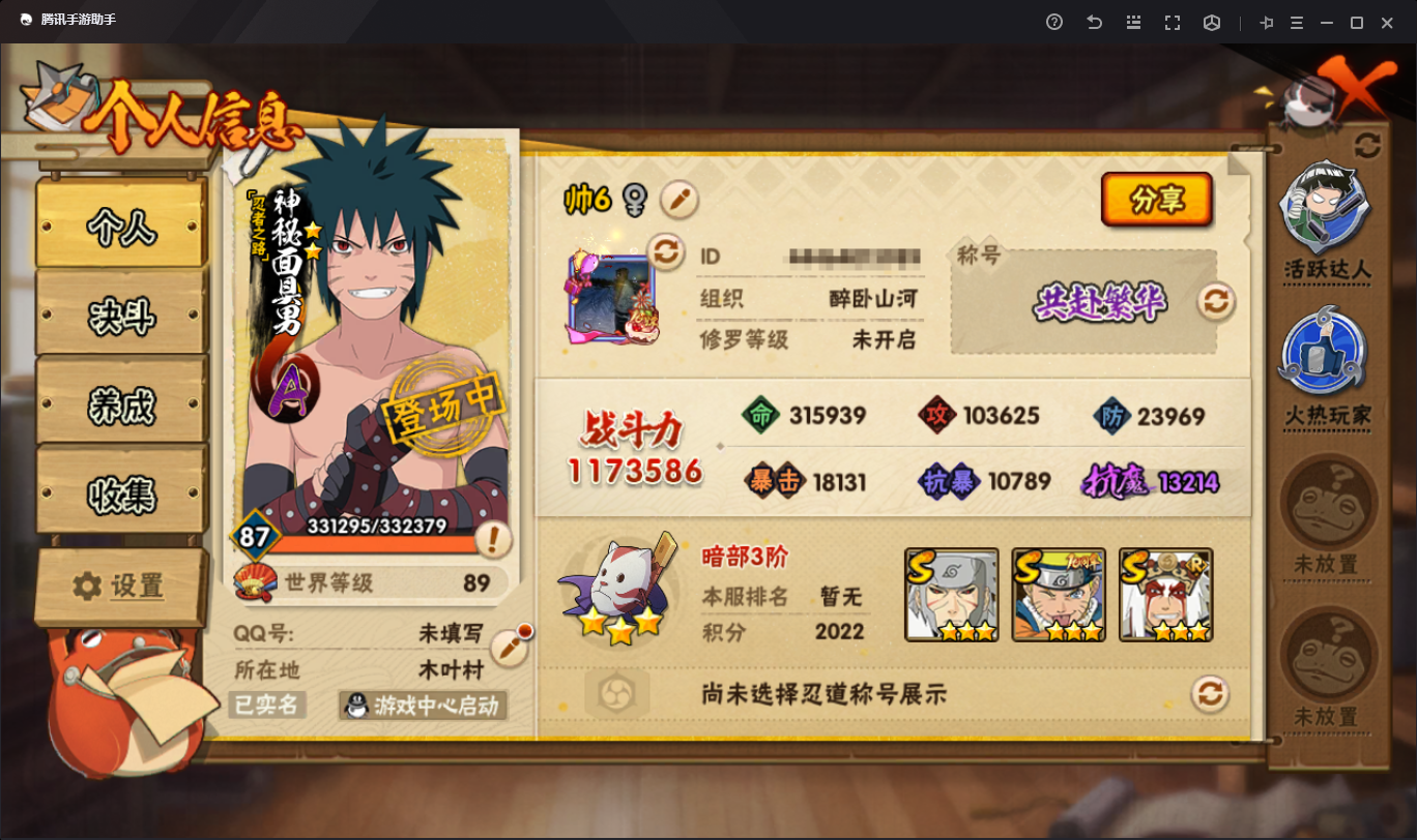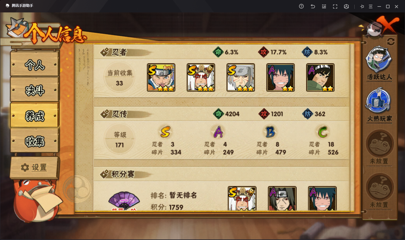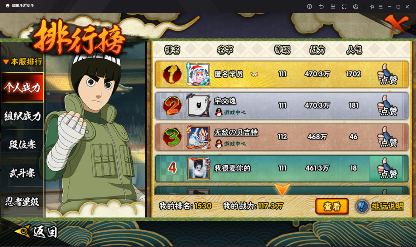 117W战力死扉3S+1个198直购A/4A战力117忍者总