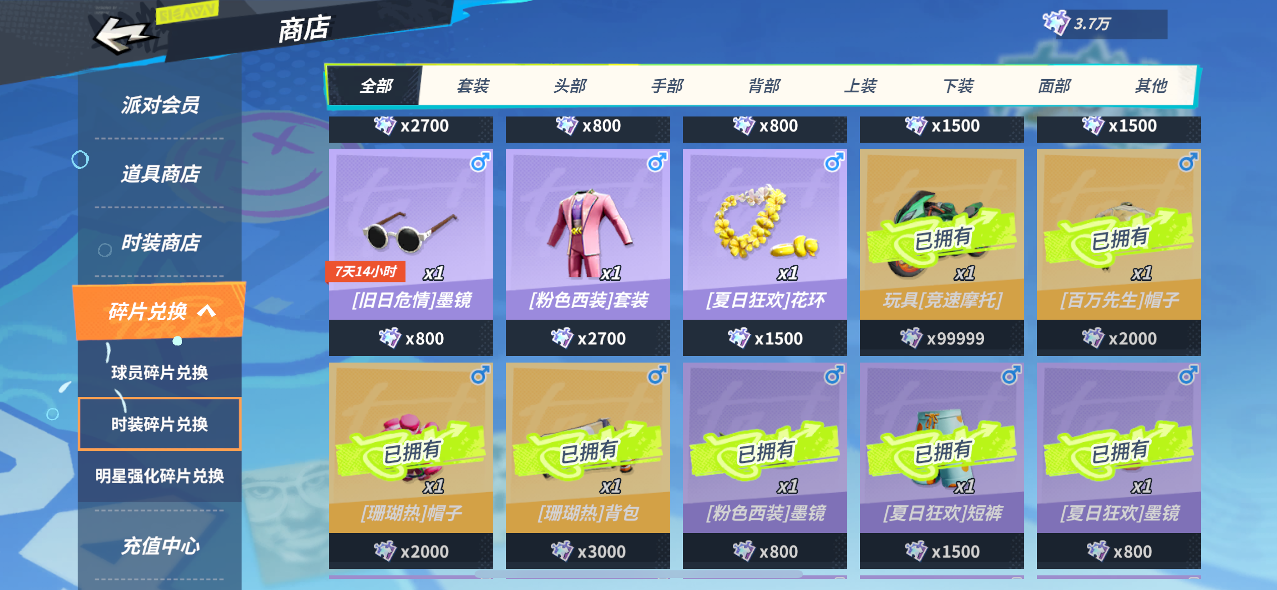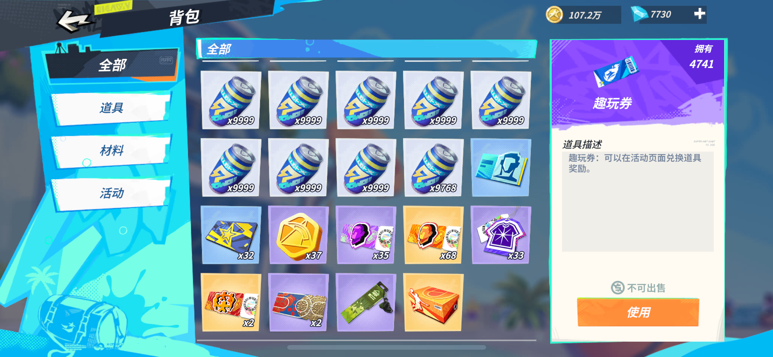 毕业号(全人物+满熟练度、全藏品、全玩具),双鞋(三分觉醒+一杯不差10%)、6满突+16万橙碎片+3W7紫碎片、4专属球服+老鹰队服+31张黑卡+森林狼典藏卡,摩托车。自选箱+百万金币+7000钻石