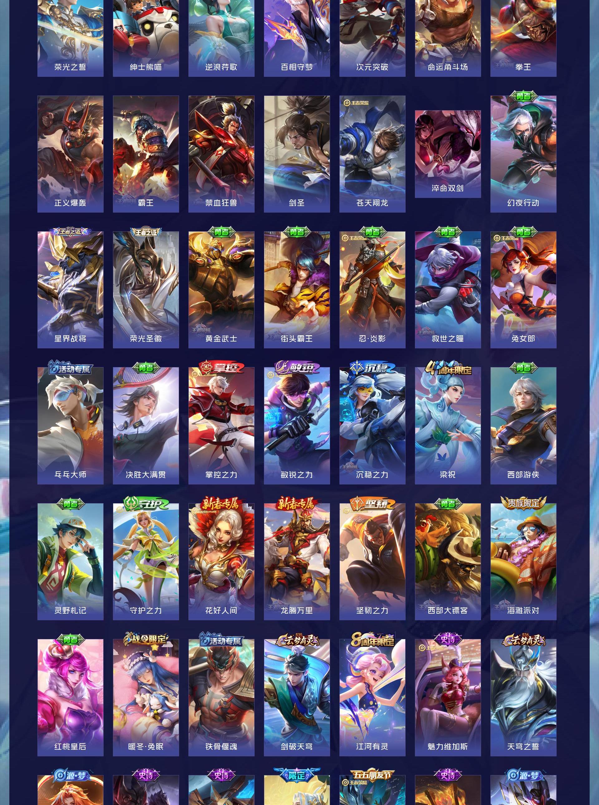 V5 皮肤126 英雄125 永恒钻石 珍品传说1 传说4 其他皮肤126