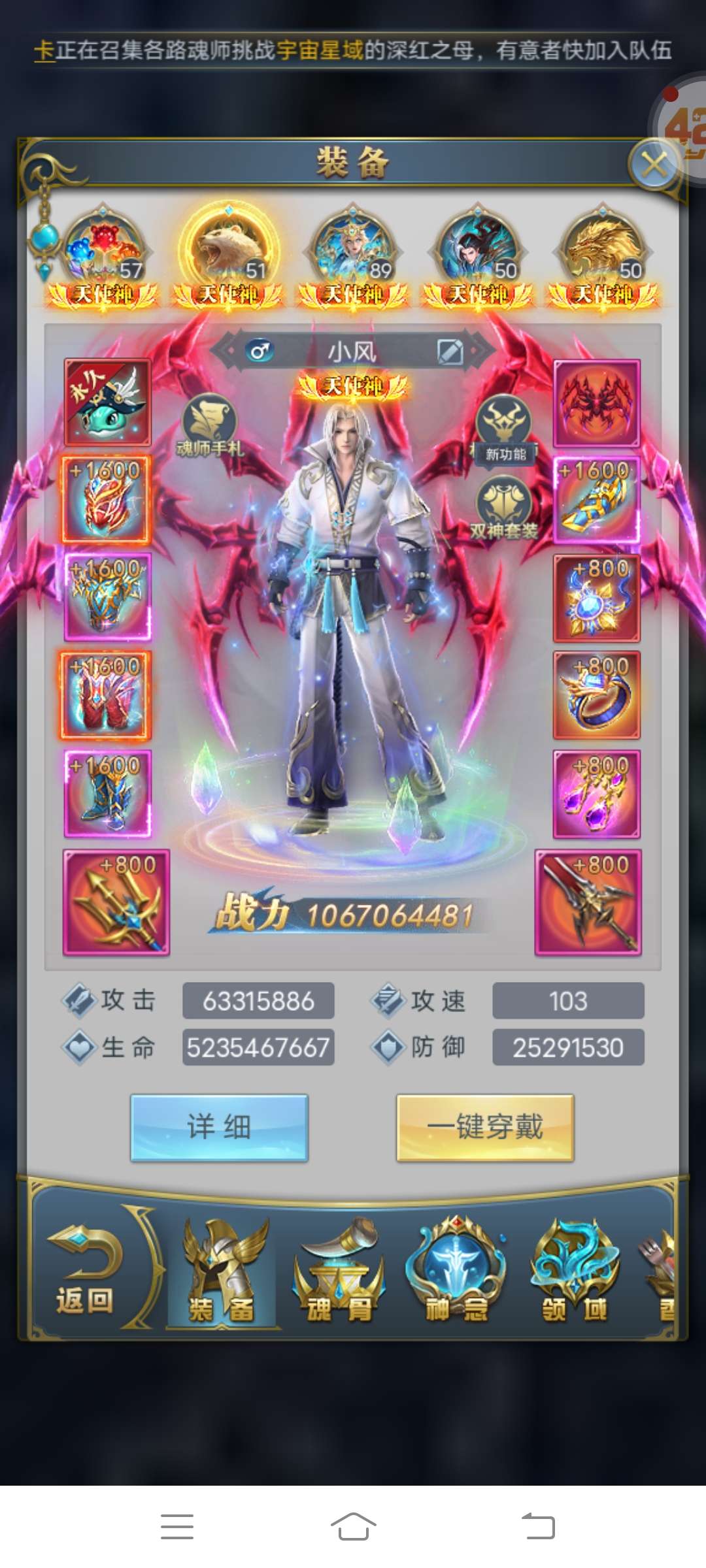 425昊天5763可换绑,五套骨,52百万,20红凶兽,有永久月卡邪神虎六套斗铠四套秘法四套圣物