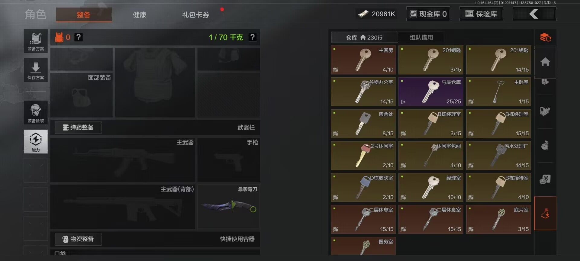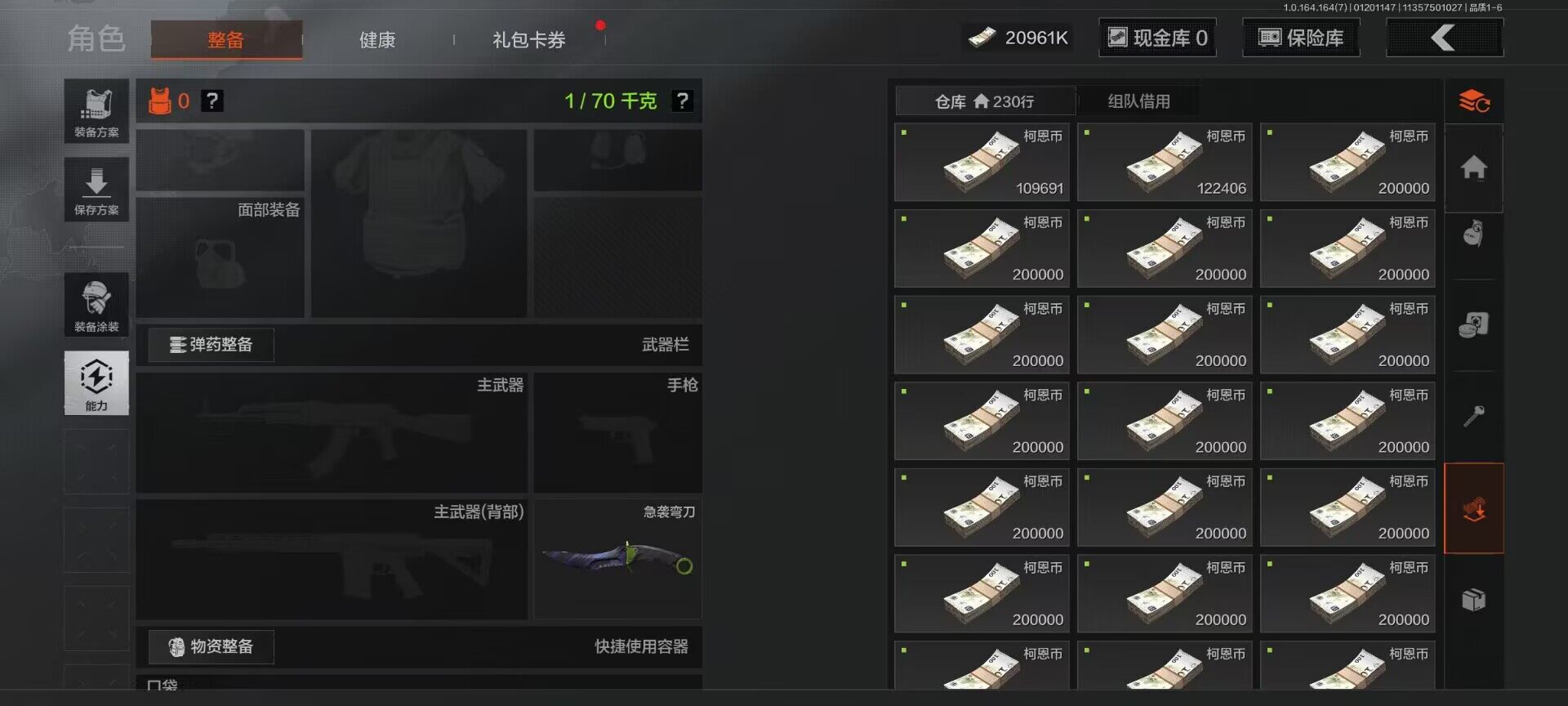 仓库价值(百万):42.6/柯恩币:20961000/苍白之触手套/急袭弯刀/热能武器补牢/白蔷薇斯黛拉