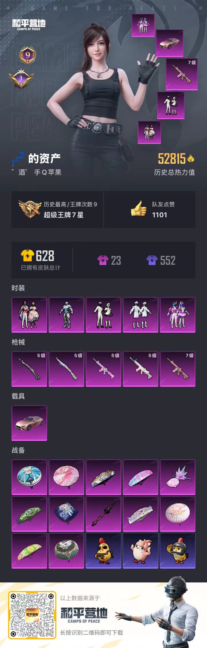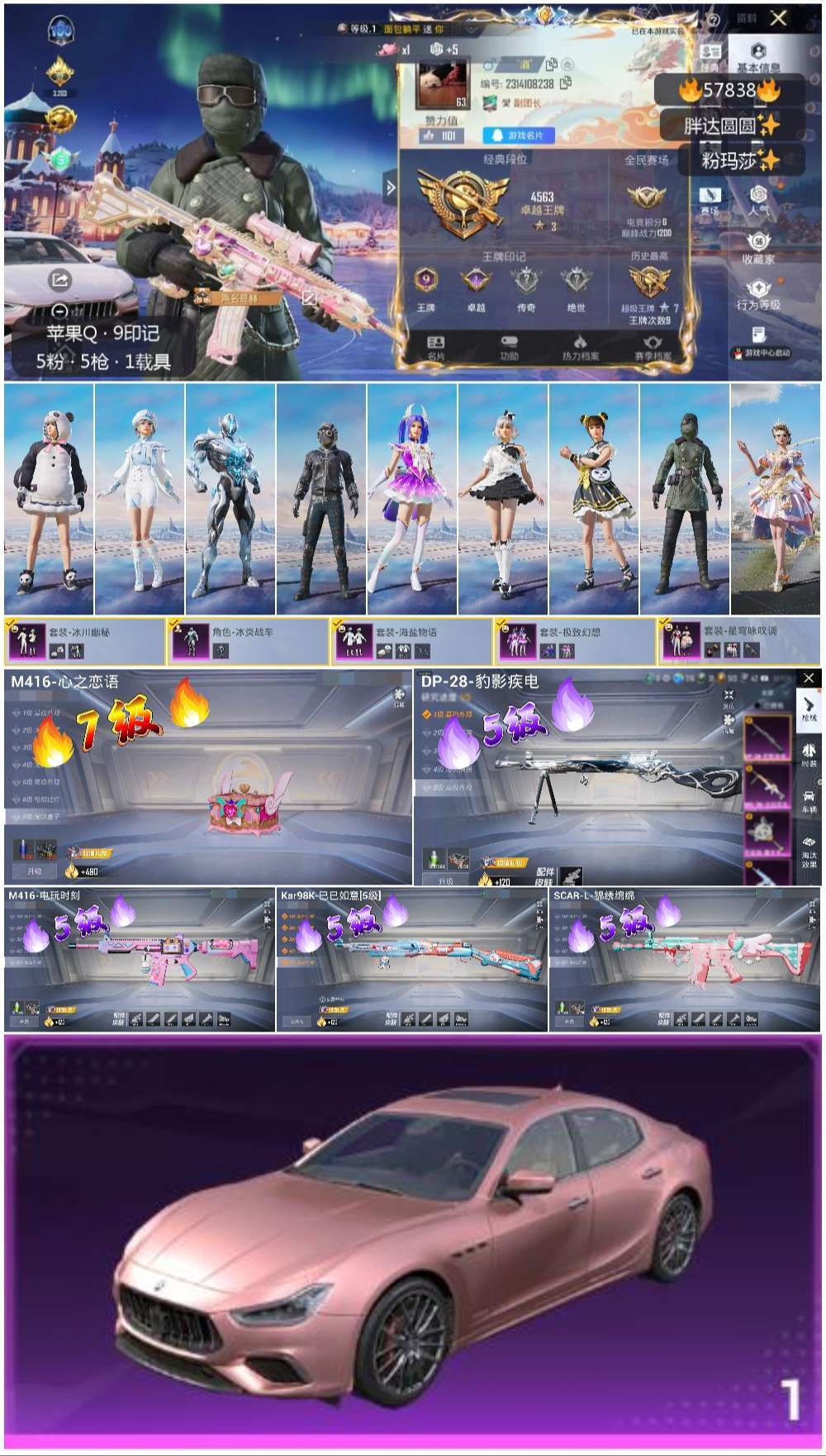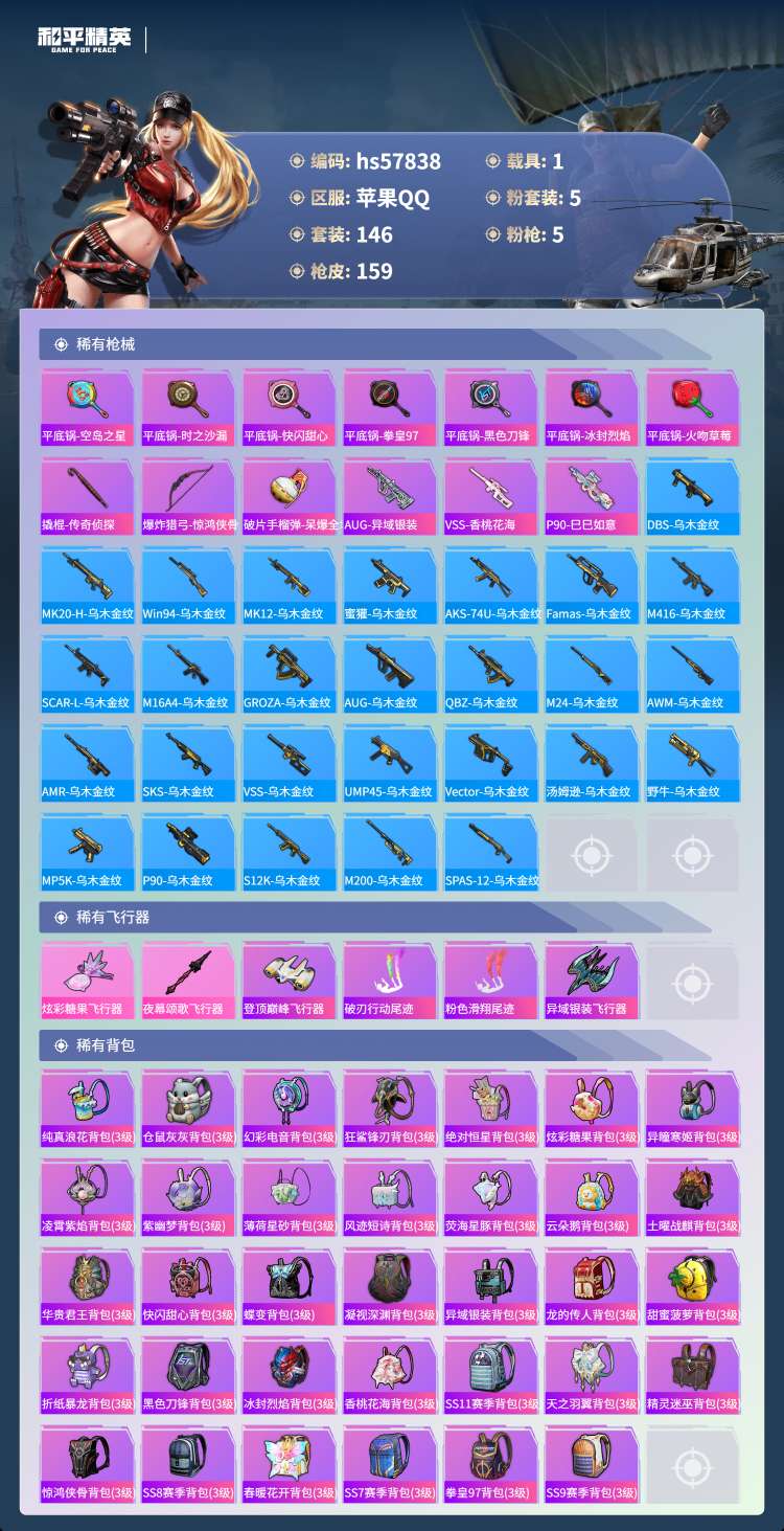 hs57838 苹果手Q-9王牌印记-5粉装-5特效枪-1载具-52815热力值-146套装-159
