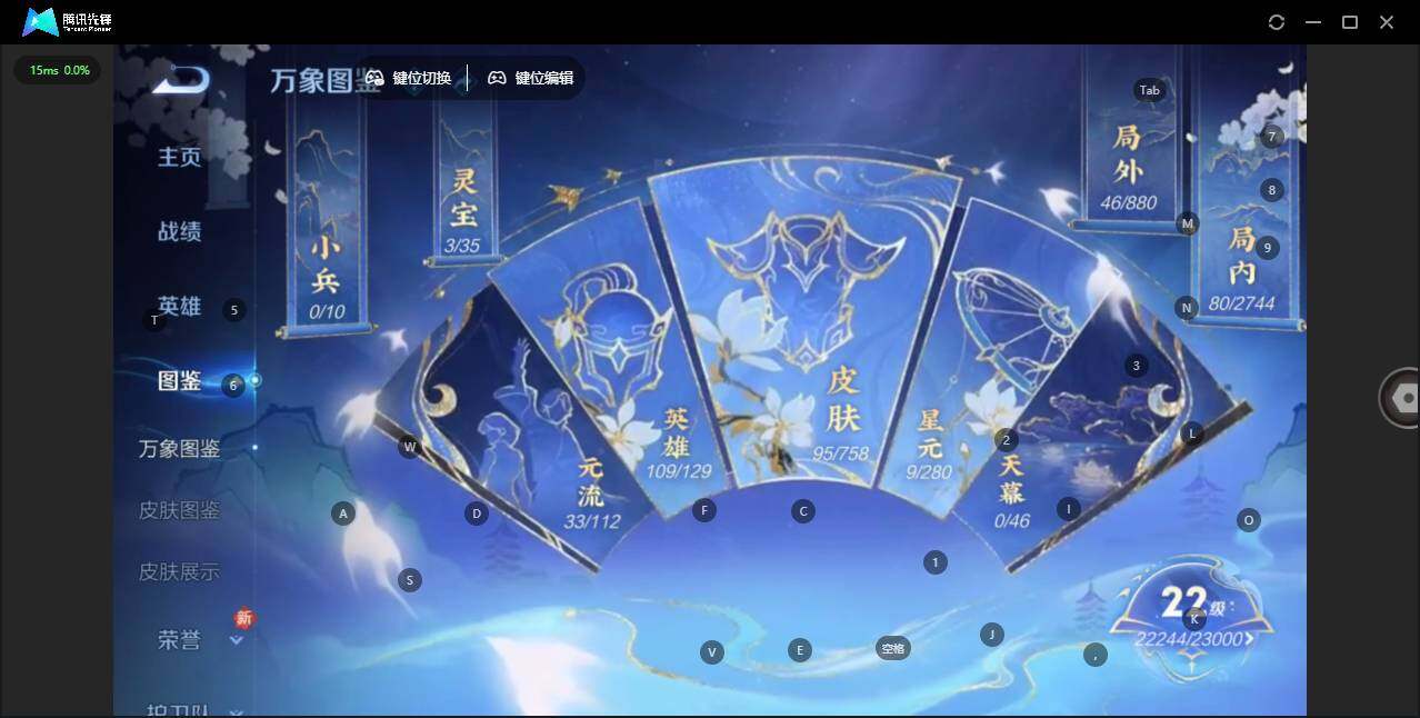/贵族等级: V7 英雄数: 109 皮肤数: 95 传说皮: 炽阳神光,游龙清影 限定皮: 梁祝,朱雀志,武陵仙君,百木心枪,玉兔公主,启示之音,无尽星芒,五谷丰年,山海·碧波行